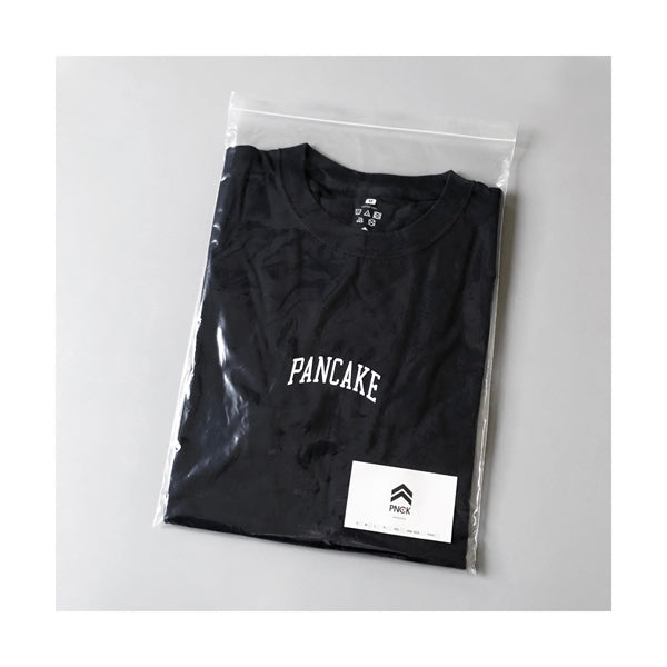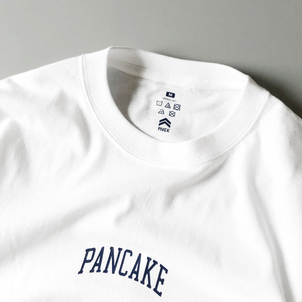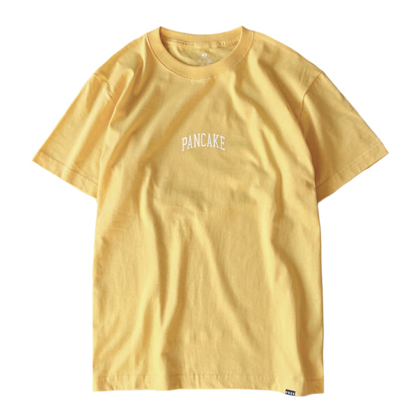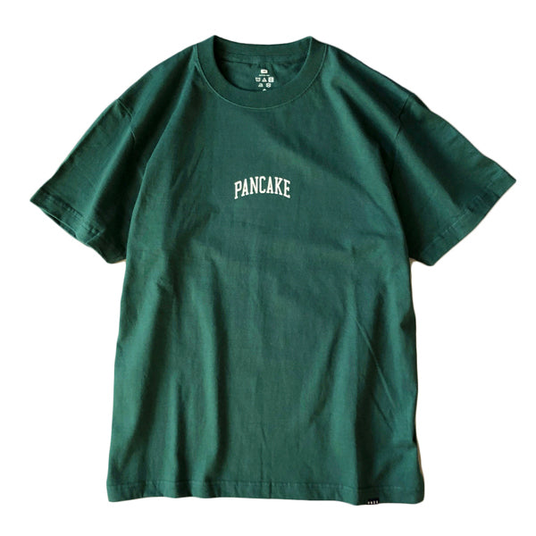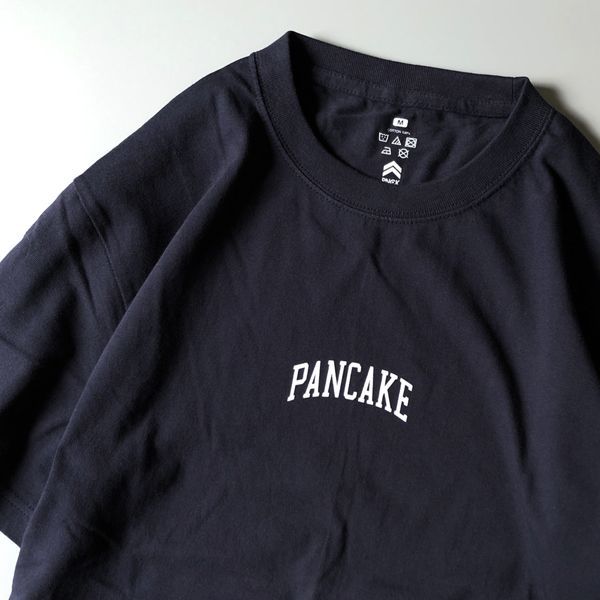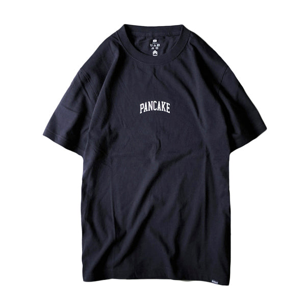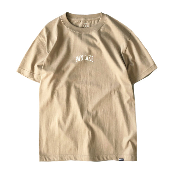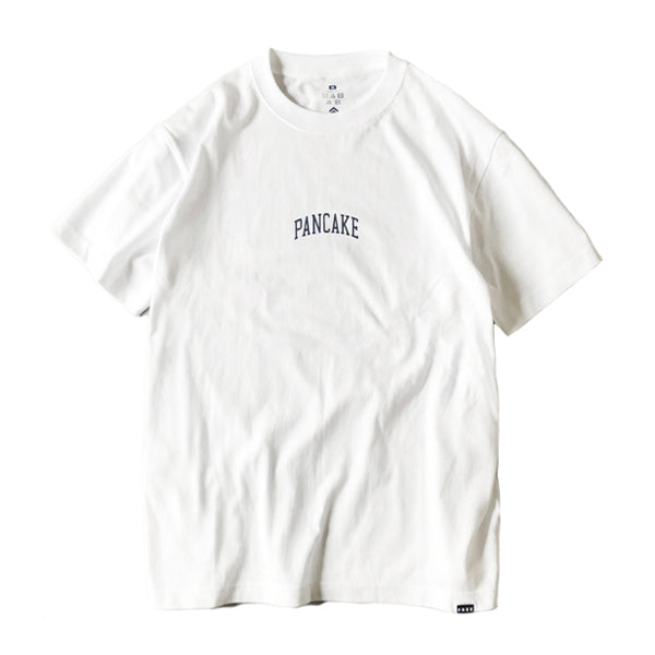 フロントに〈PANCAKE〉のアーチロゴがシルクスクリーンプリントでプリントされたショートスリーブTシャツです。