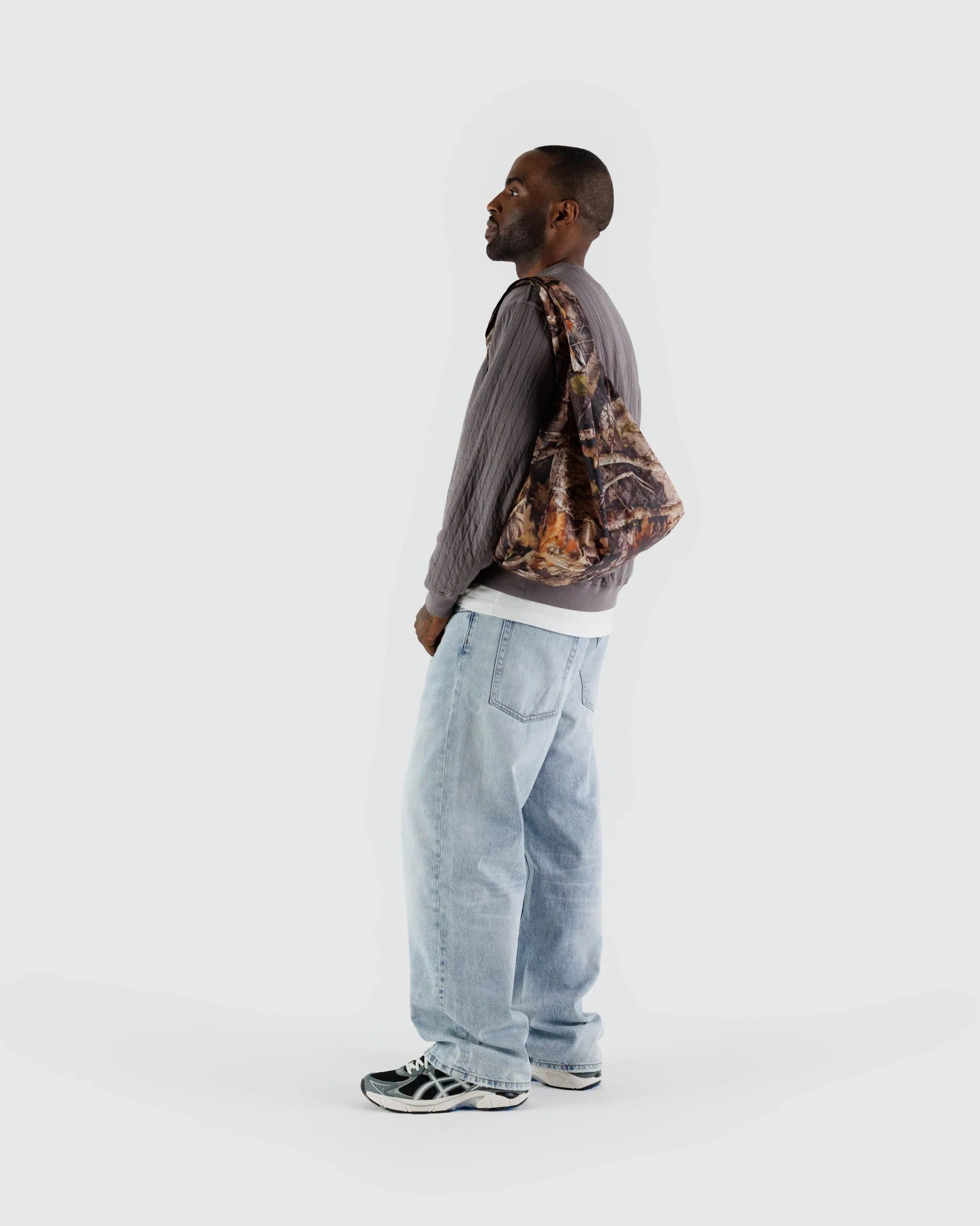 手に持っても、肩にかけても使いやすいデザインが特徴的な、リップストップポリエステル製(100%リサイクル)バッグ。