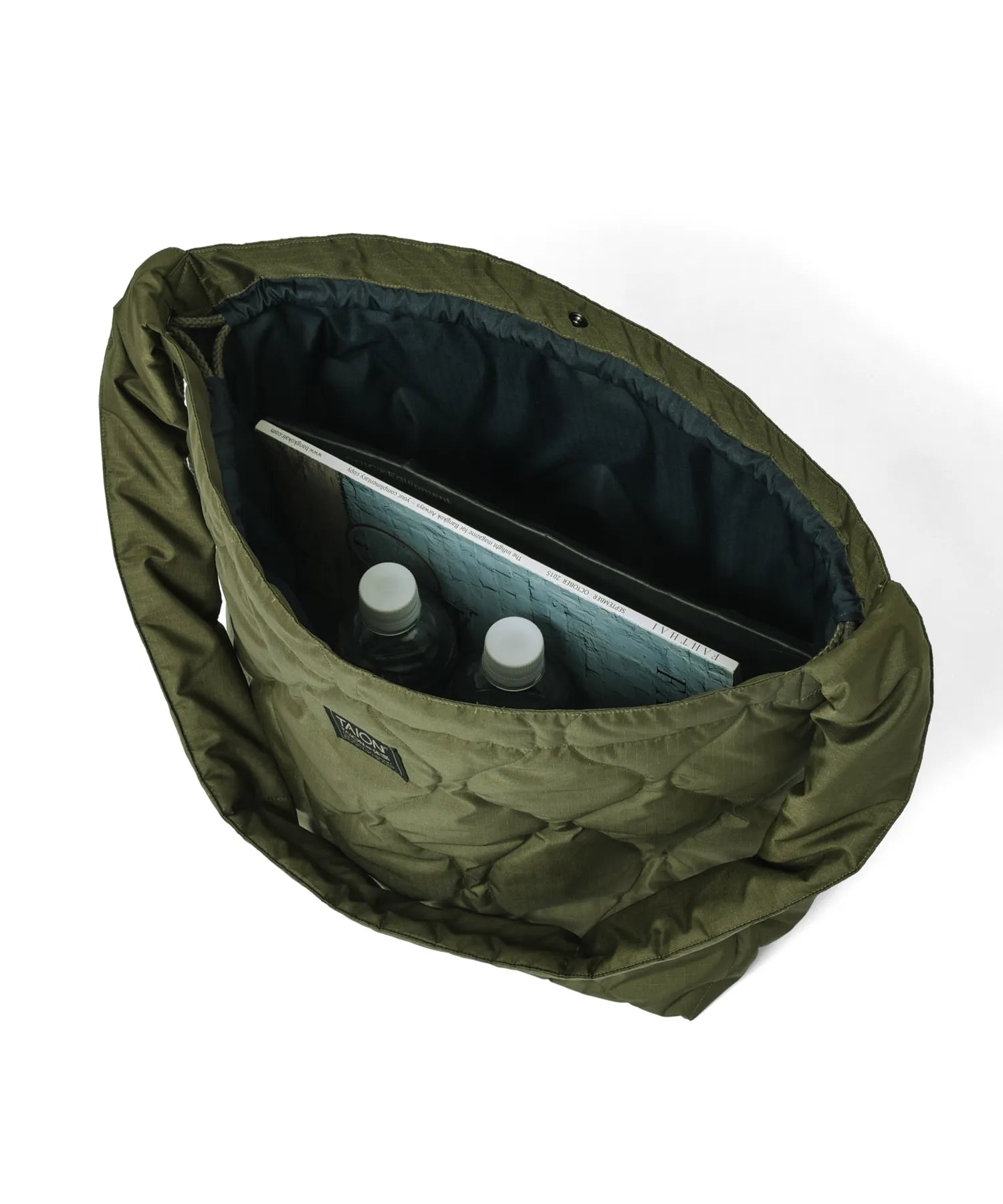〈TAION〉MILITARY LINEより、見た目の良さと実用性を兼ね備えた、2WAYで使えるミリタリーストリングショルダーバッグです。バッグ口を絞ることでストリングバッグに変わり、バッグの中身が落ちない仕様になっています。