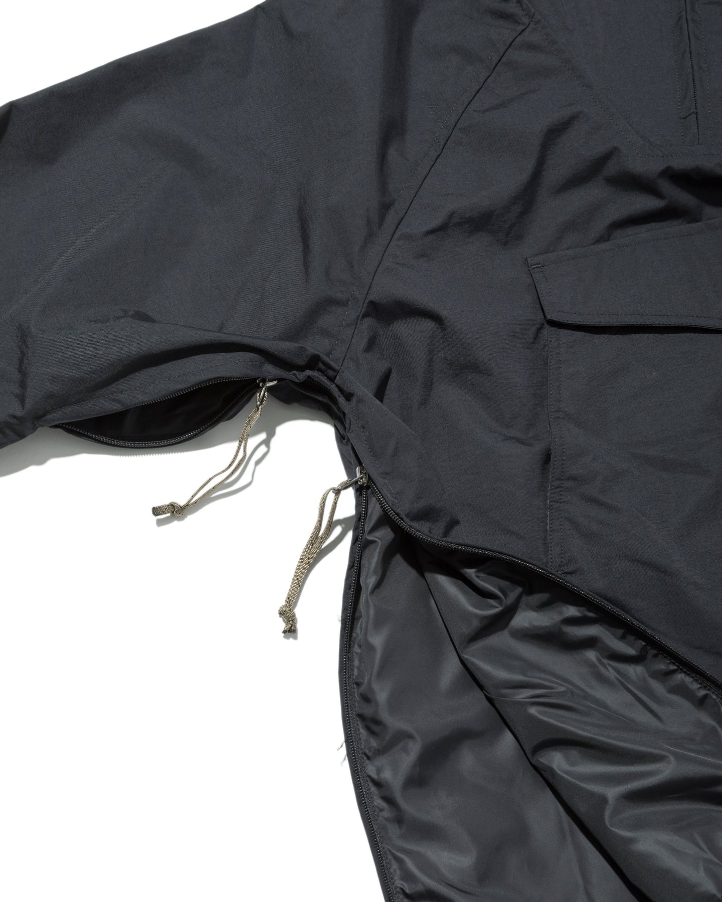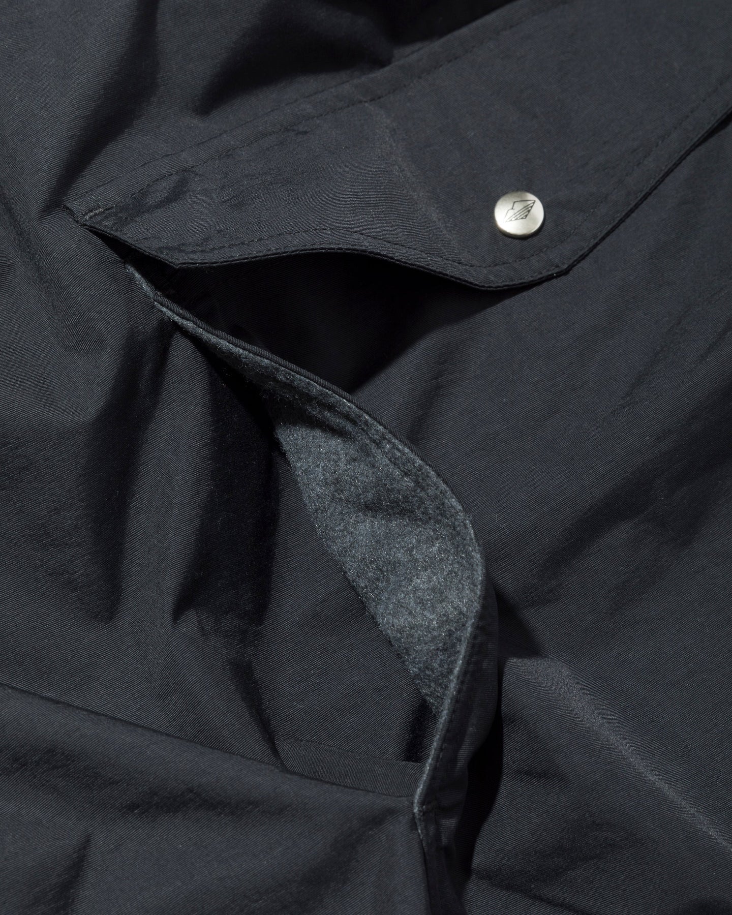 フロントには複数の収納ポケットを備え、サイドには深めのダブルジップを採用し、脱ぎ着しやすく通気性も確保できるよう考慮されています。また、トップレイヤーとして使用できるように、ゆとりをもったシルエットに仕上げています。