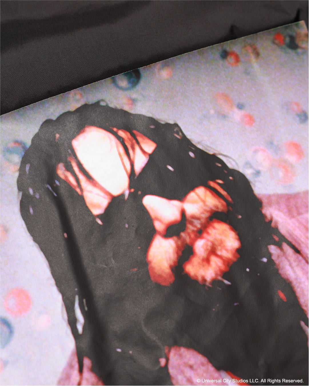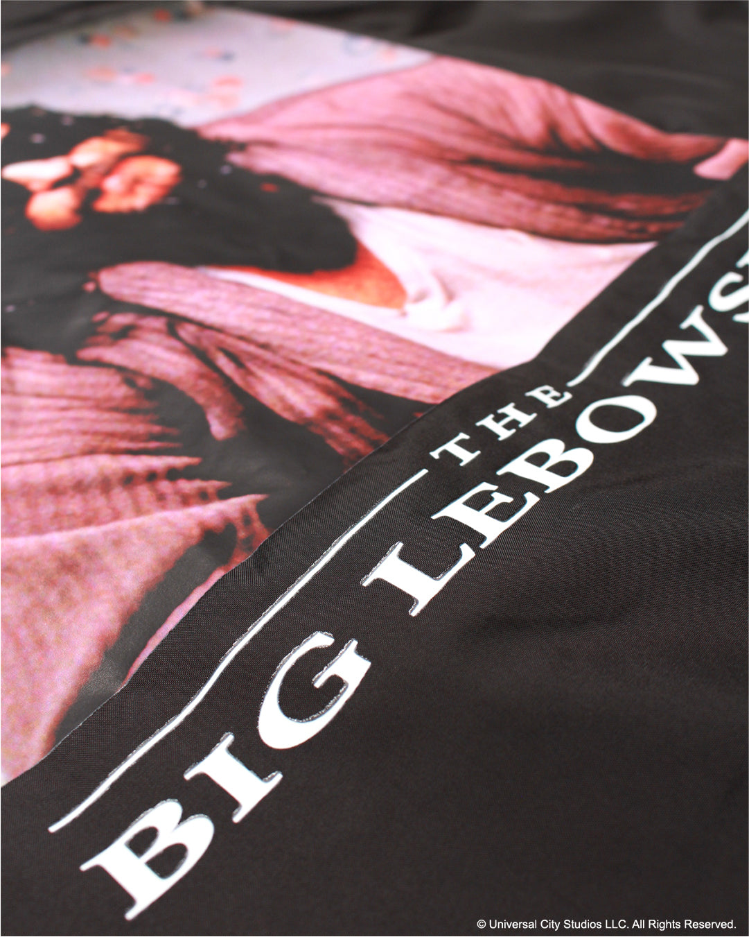 フロントのタイトルロゴと、一部の熱狂的なファンから絶大な支持を得ているこの映画の主役、ジェフ・ブリッジス演じる"デュード"のバックプリントが印象的なデザインとなっています。