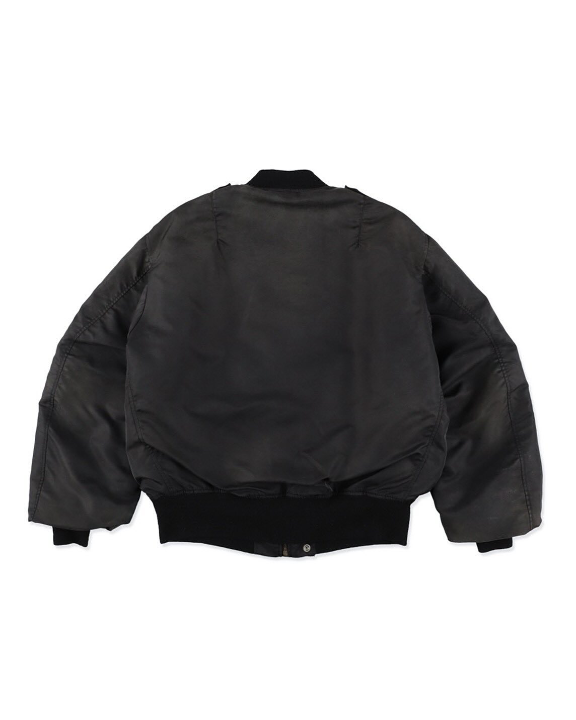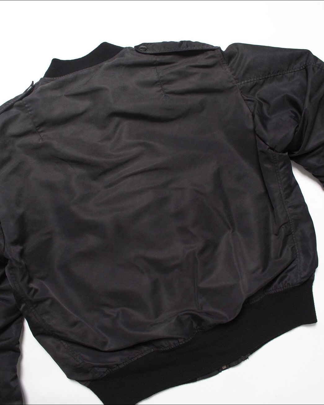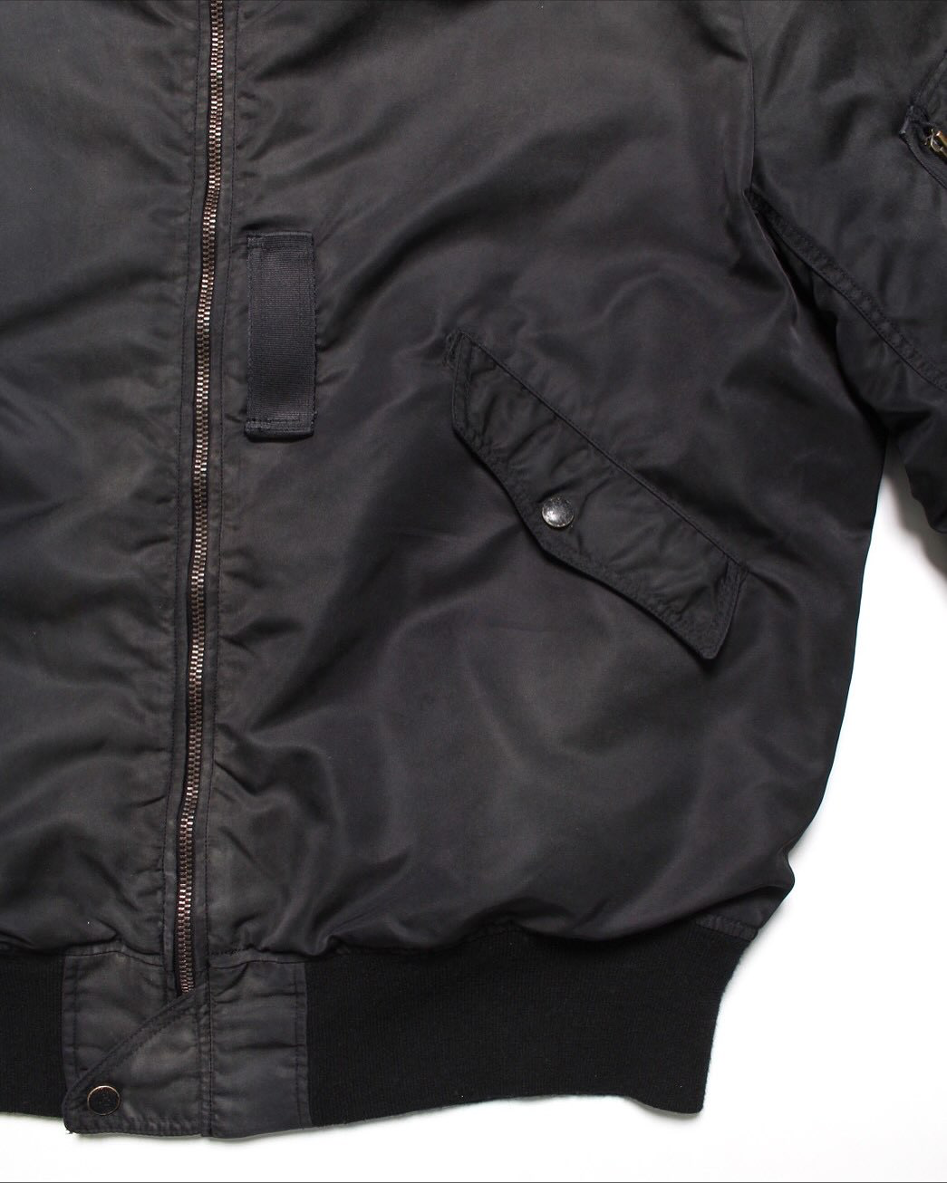 1950年代から1960年代にかけて活躍した、U.S. Air Forceのライトゾーン用フライトジャケットを代表する L-2B FLIGHT JACKET。中綿を持たない構造は現代のストリートにも最適。本作のライニングは、初期型仕様を再現し、レスキューオレンジではなく都市型仕様のブラック。見たこともないほど着古されたフライトジャケットを作り込むため、ファスナーの歪みにまでこだわり、リメイク工程を取り入れた渾身の一枚。[Text by BOW WOW]