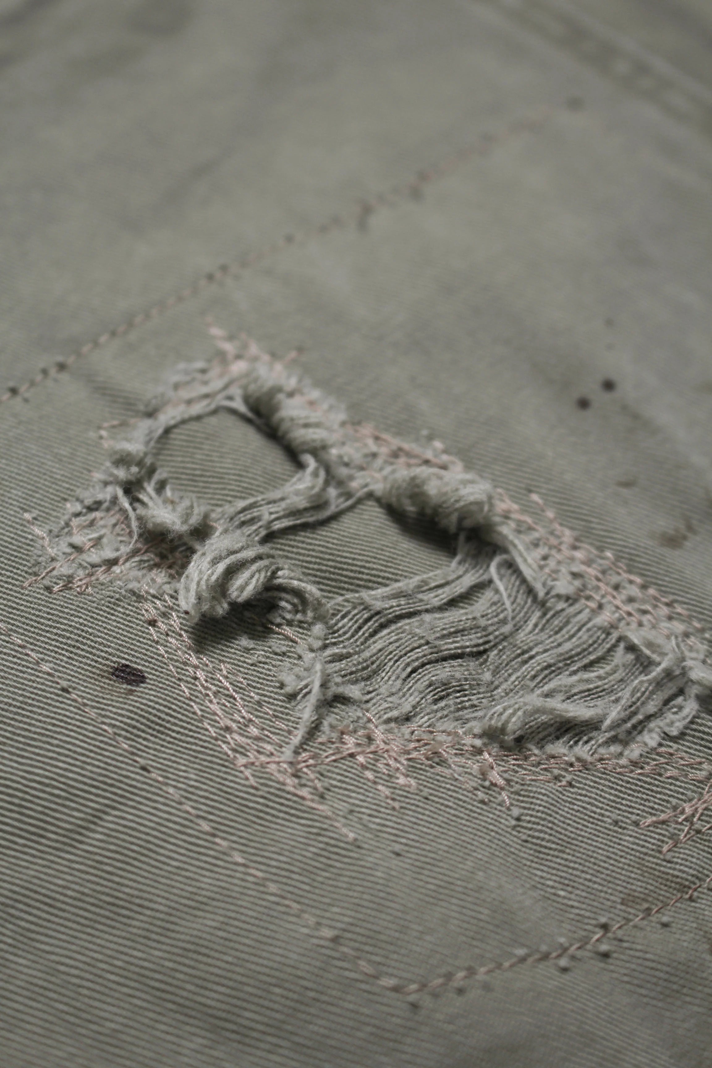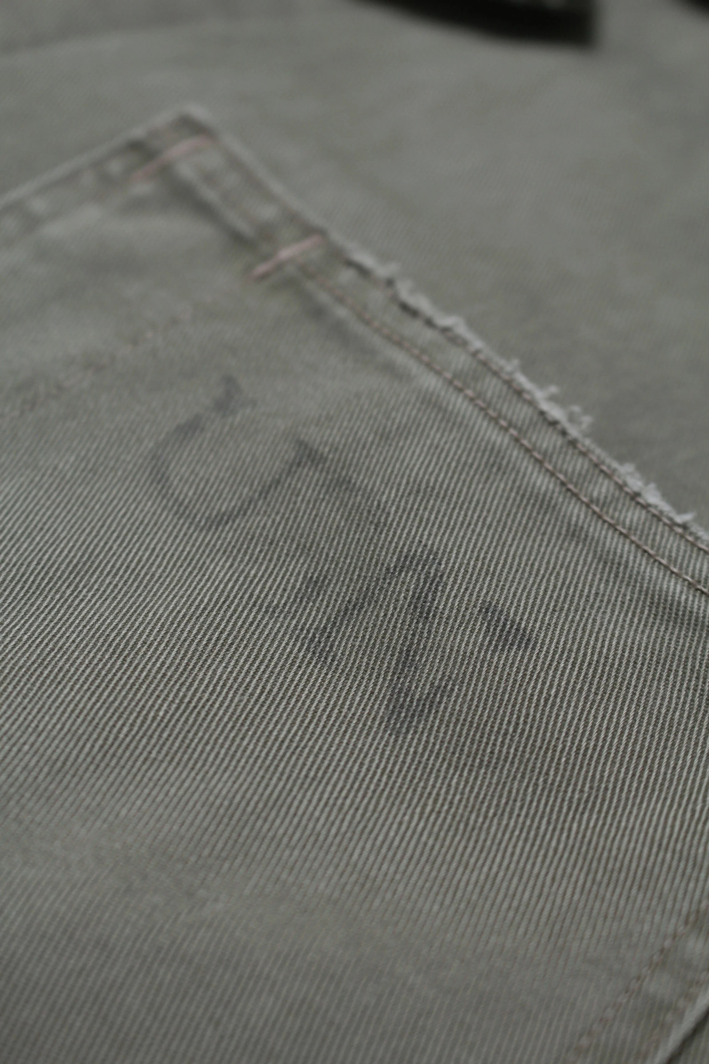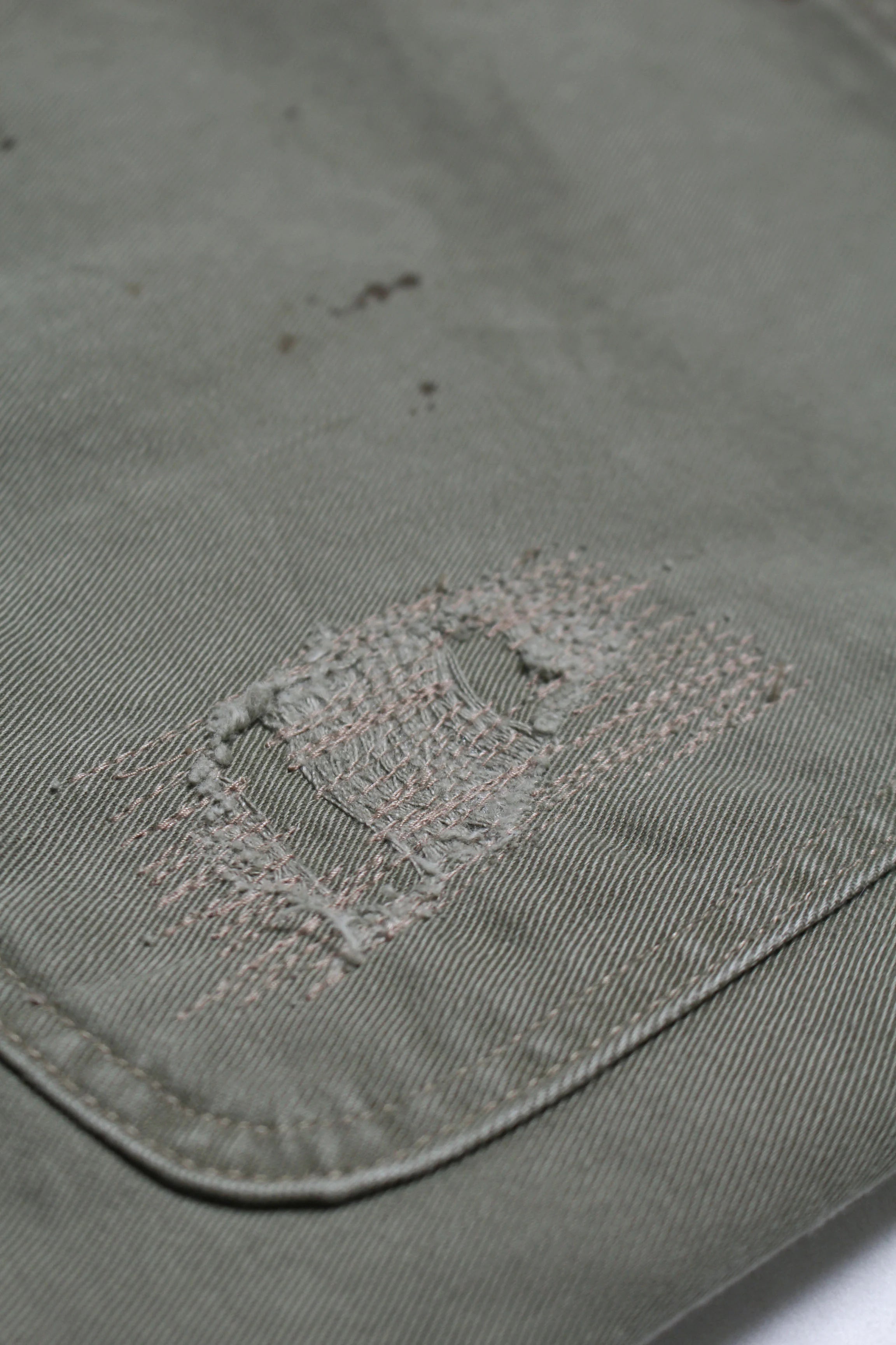 そんな名品を忠実に再現するため、素材から徹底的に向き合い、今回の再現を実現しました。生地にとどまらず、ブランドならではのディティールや、使い古されたことによる破れリペアなど、独自のこだわりが光る一着です。