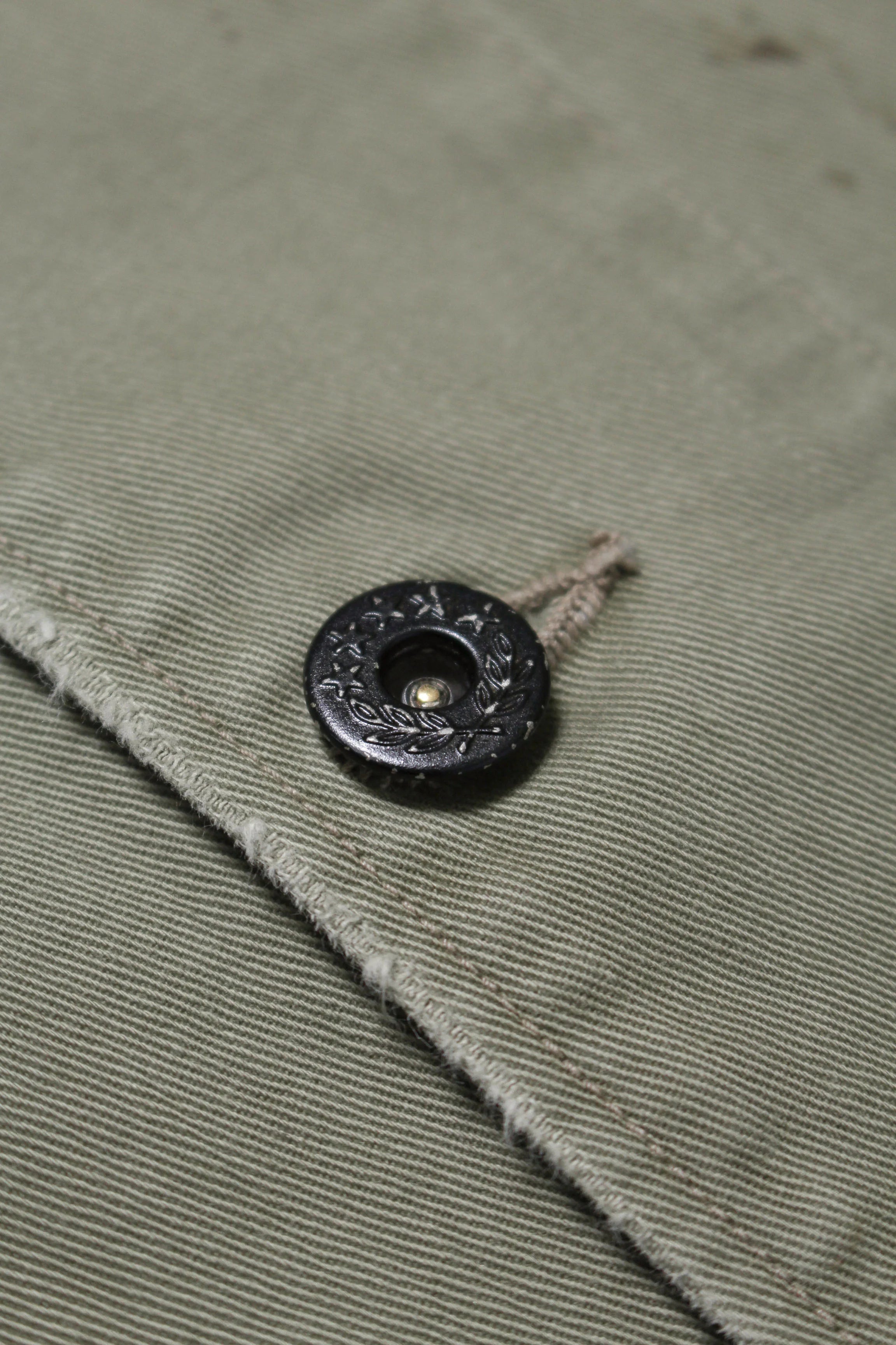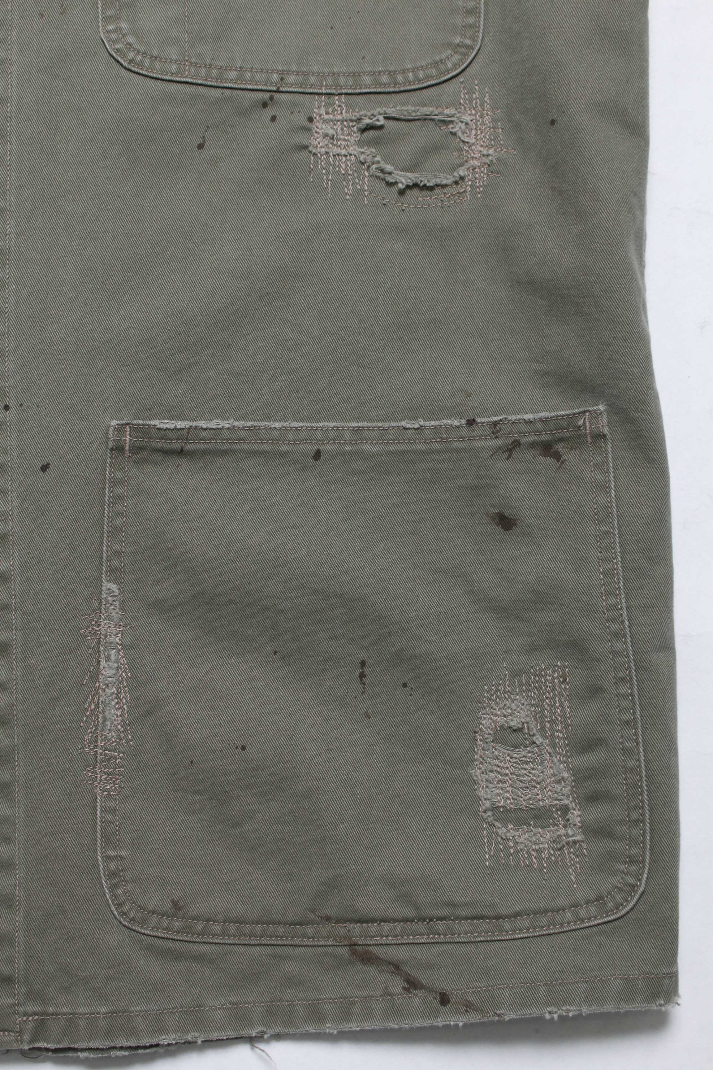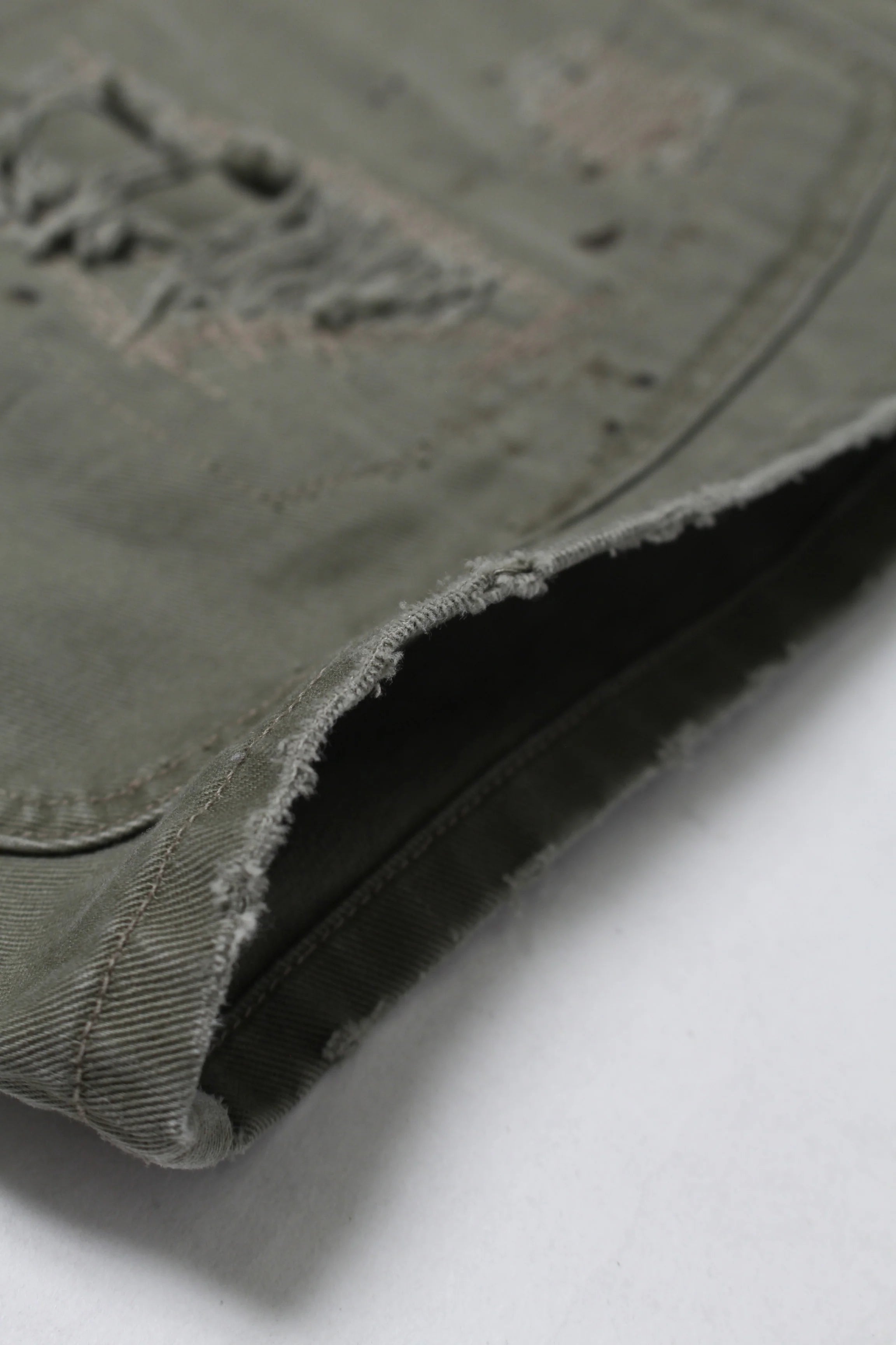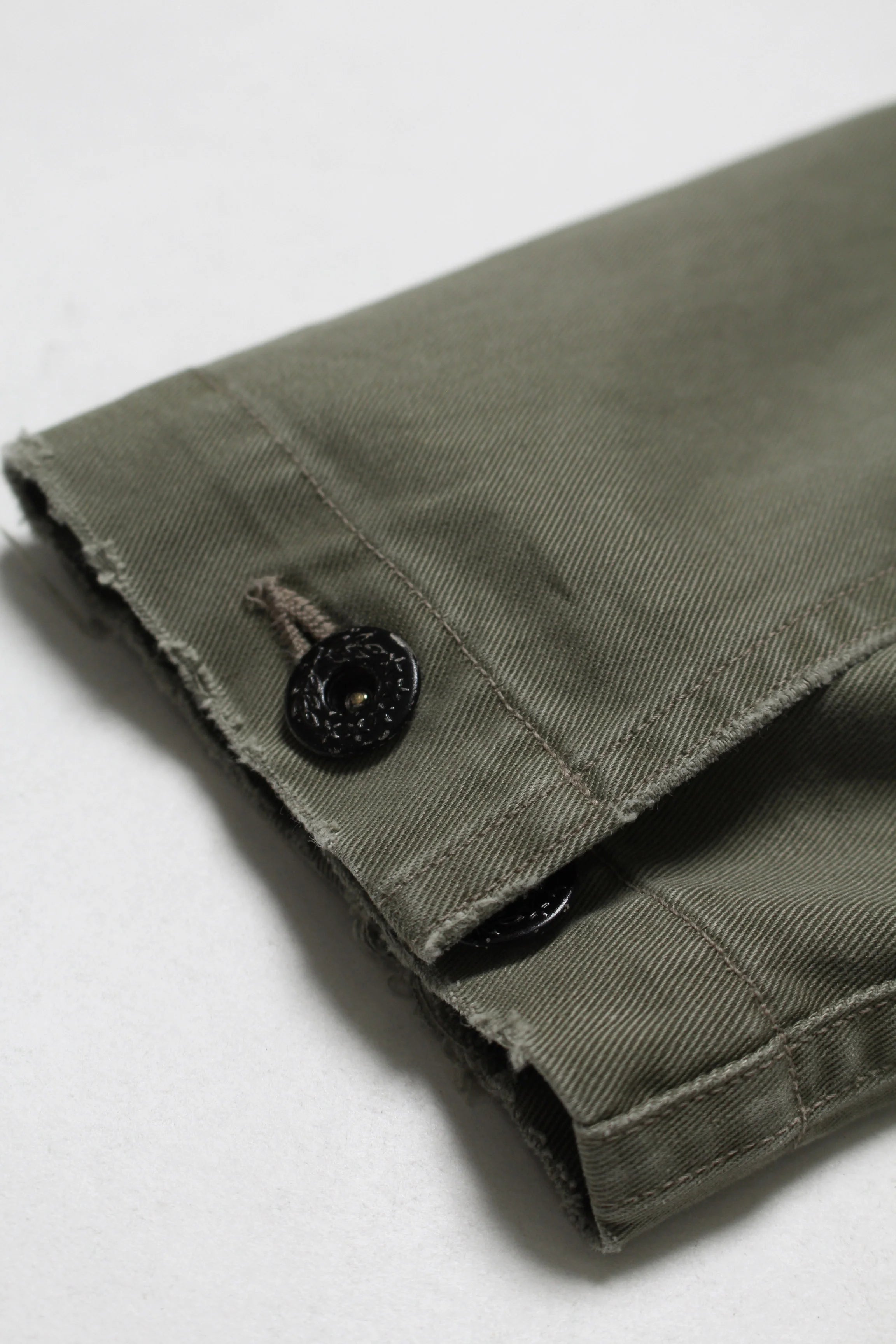そんな名品を忠実に再現するため、素材から徹底的に向き合い、今回の再現を実現しました。生地にとどまらず、ブランドならではのディティールや、使い古されたことによる破れリペアなど、独自のこだわりが光る一着です。