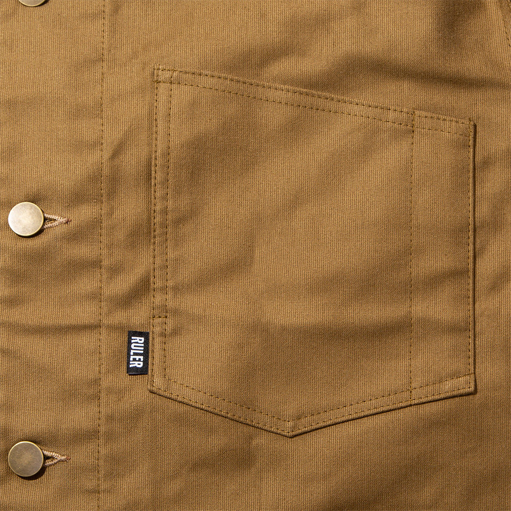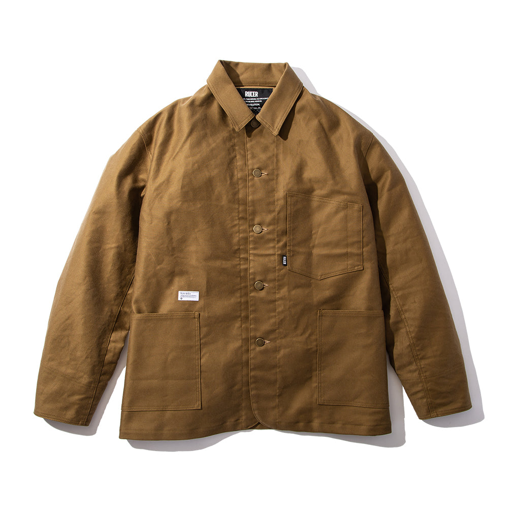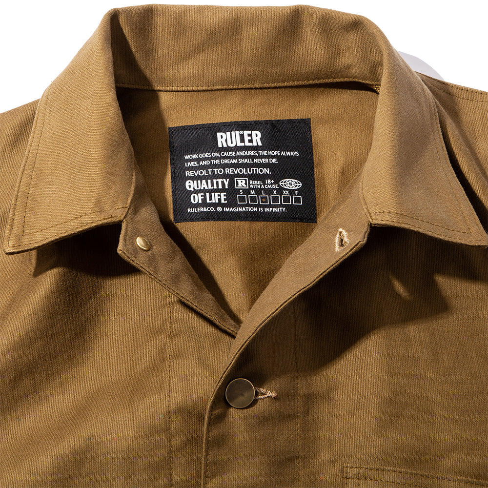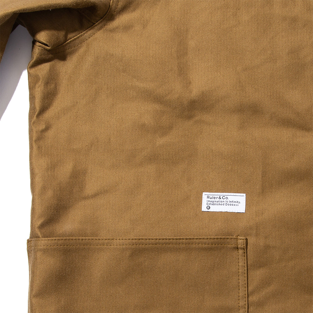 厚手のミリタリーコードレーン生地を使用し作製した〈RULER®︎〉のカバーオールです。上質な生地感とカバーオール特有のタフな雰囲気が調和した、シンプルで洗練されたデザインが魅力の一着です。