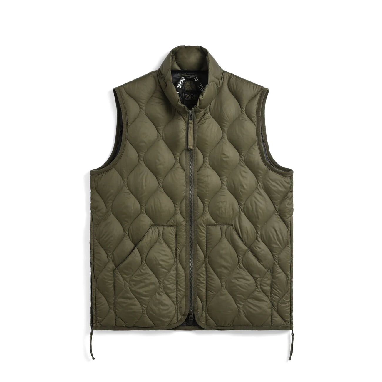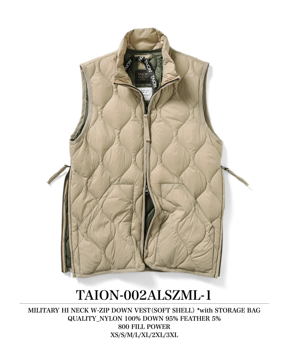 〈TAION〉[UNISEX] ミリタリー ハイネックWジップ ダウンベスト-ソフトシェル(TAION-002ALSZML-1)