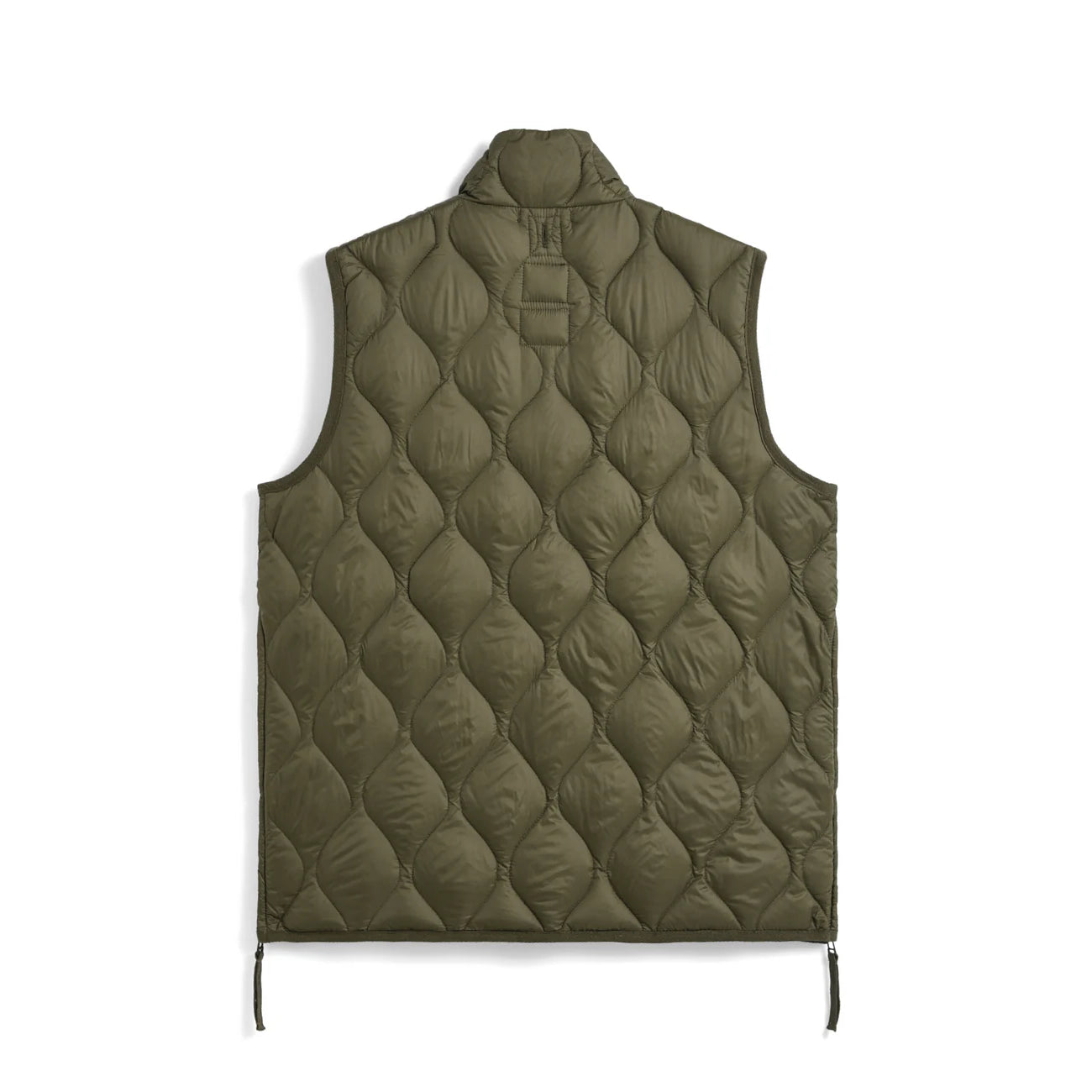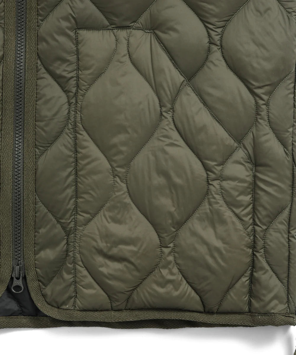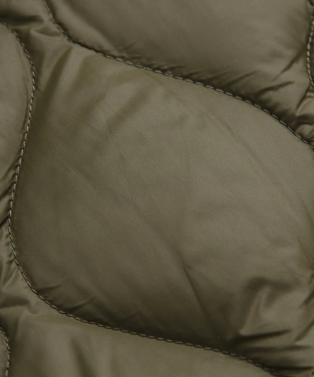 重ね着にも適したボリューム感で、軽くて柔らかい着心地とヘチマキルトのダウンステッチが印象的なミリタリーテイストのダウンウェアです。