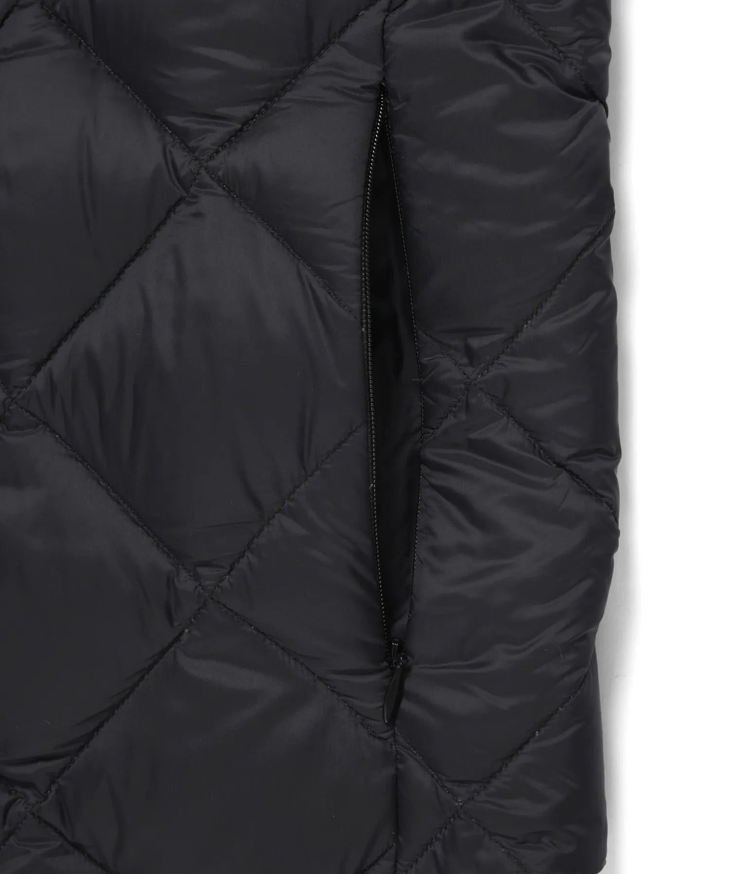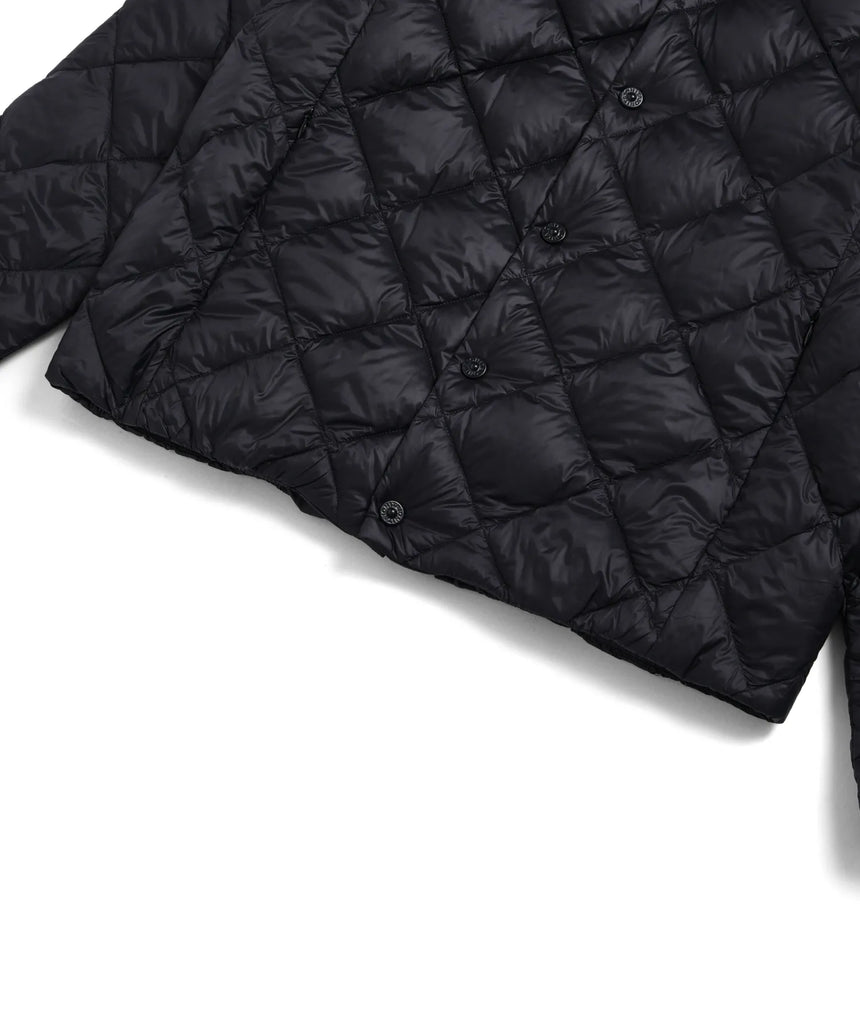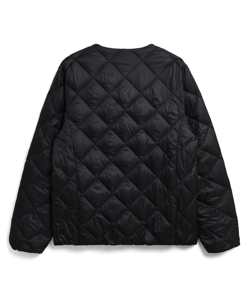 〈TAION〉"CITY LINE"のクルーネックダウンジャケット。CITY LINEの生地は軽さや吸い付くような肌触りを追及し、斜めキルトを採用することで、シックでクラシカルなイメージに仕上がっています。シンプルでミニマルな綺麗めのデザインが特徴です。同シリーズのパンツやマフラーなどと合わせていただくのもおすすめです。