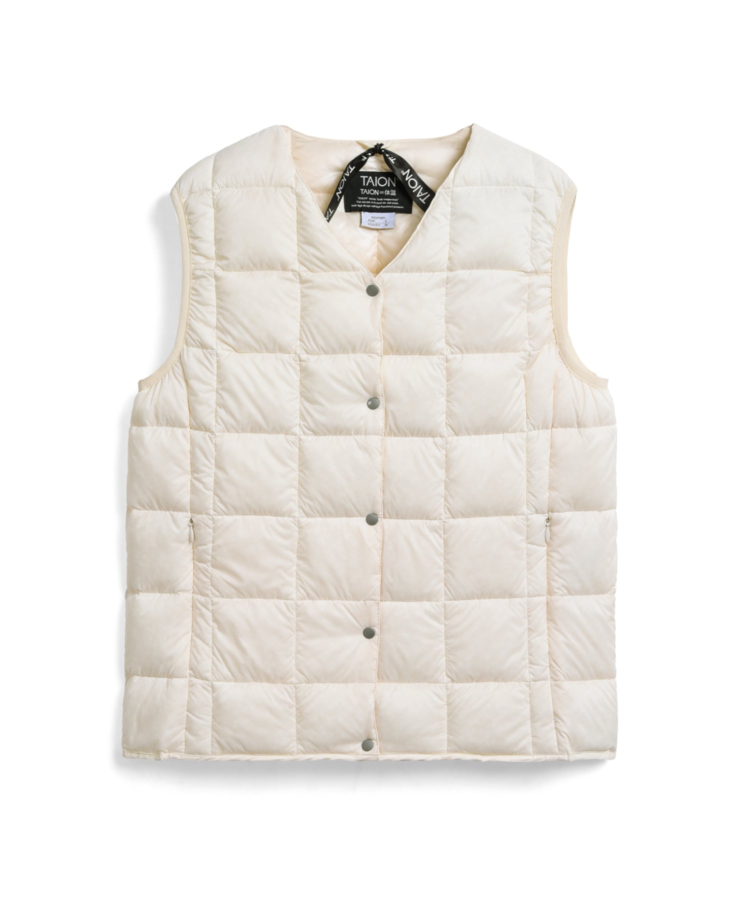 〈TAION〉[WOMEN] ベーシック Vネックボタン インナーダウンベスト(TAION-W001)