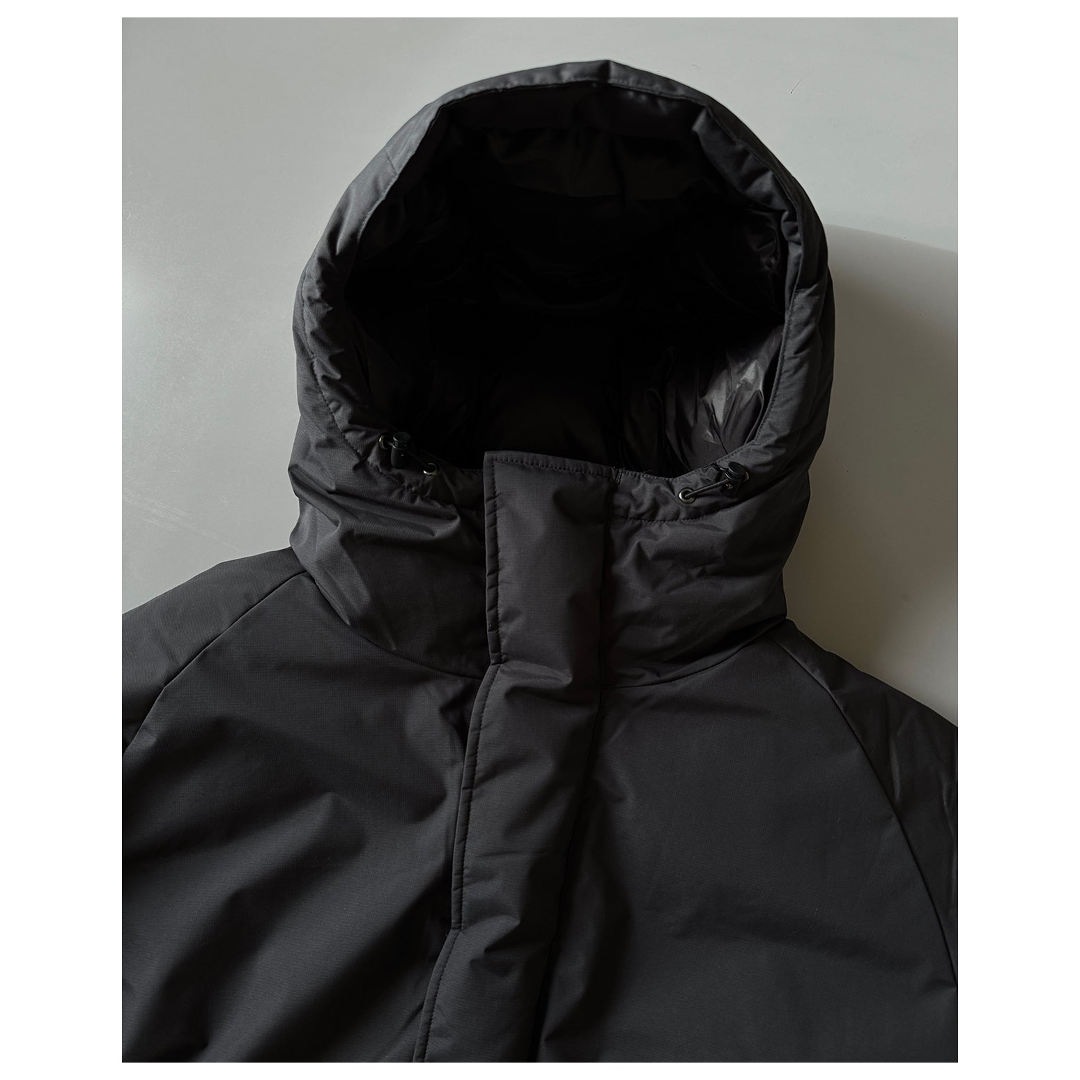 ボリュームのあるゆったりとしたシルエットとフカフカのダウン。日常着として着やすくアレンジされたフード一体型のバランスの良いデザインと軽い着心地。機能的な内ポケットや風の侵入を防ぐインナーカフも備えた本格仕様で、極寒な冬でも一度着れば手放せない一着になるはずです。