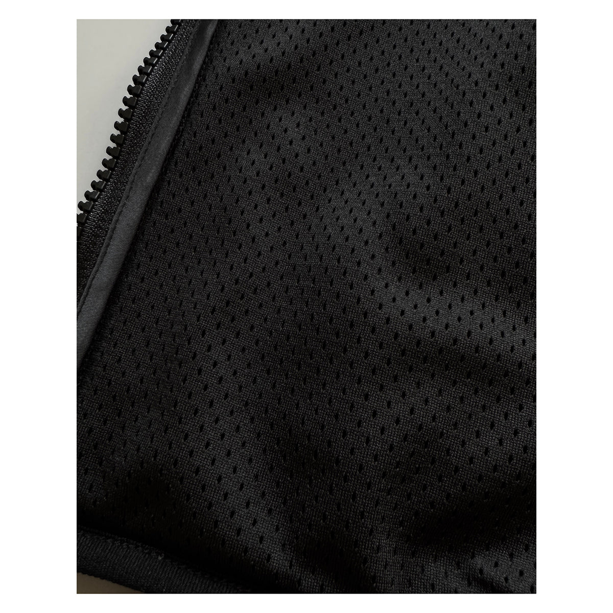 前見頃裏地はメッシュ仕様。左胸、左袖口、背面右肩に刺繍を配置。