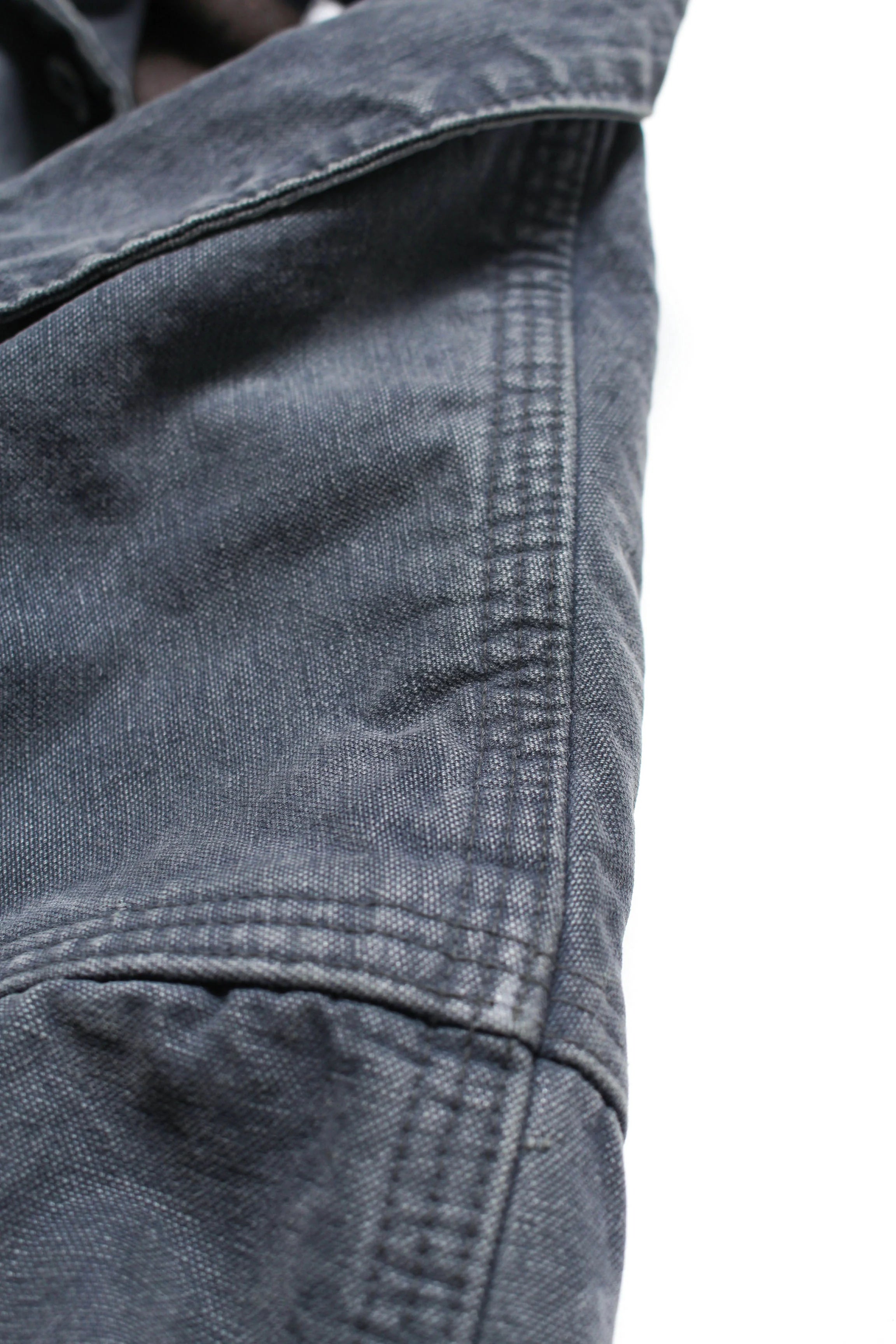 新品でありながら長年使い込んだようなダック生地の風合いと、ヴィンテージのカバーオールのような重厚感のある雰囲気が特徴的な一着です。