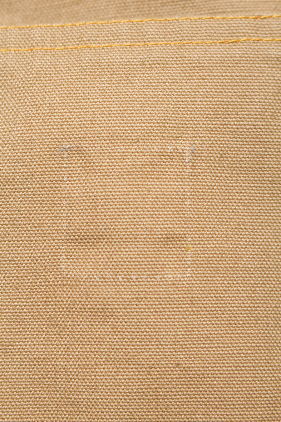 程よいハリのある生地と配色にしたオレンジ系の色味の糸を使ったダイヤモンドステッチや、トリプルステッチでの縫製、ウォッシュ加工によるアタリやシワ感が特徴的です。