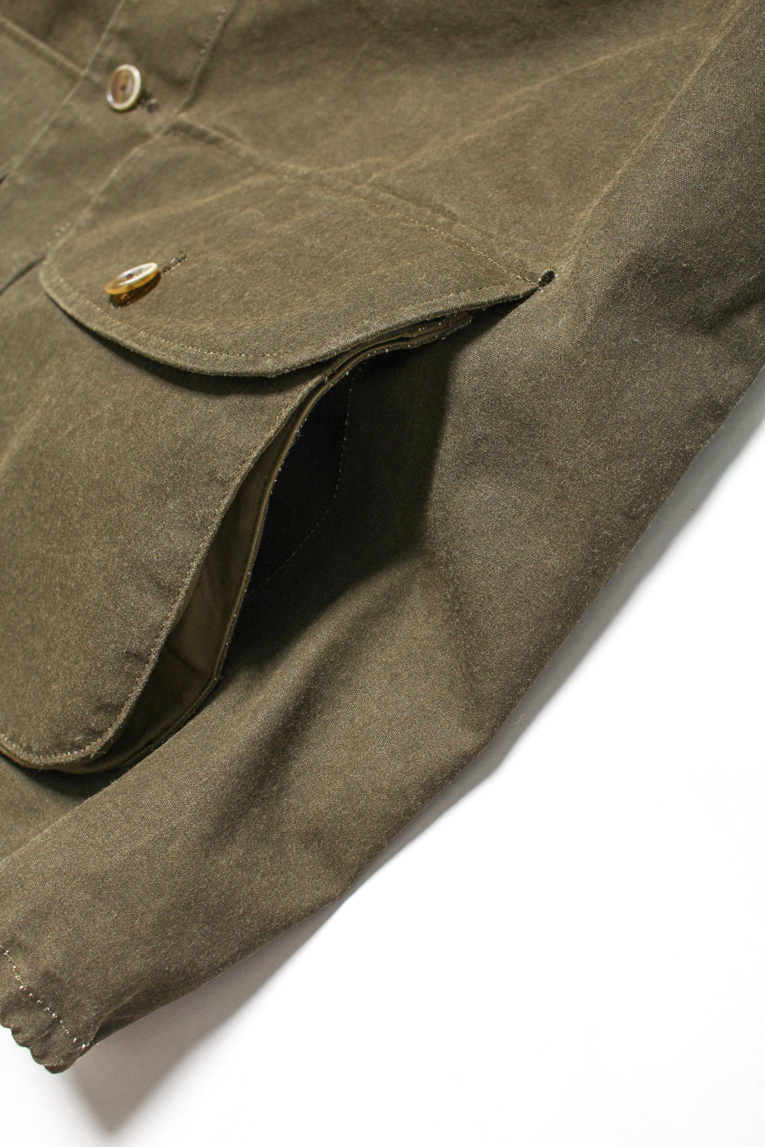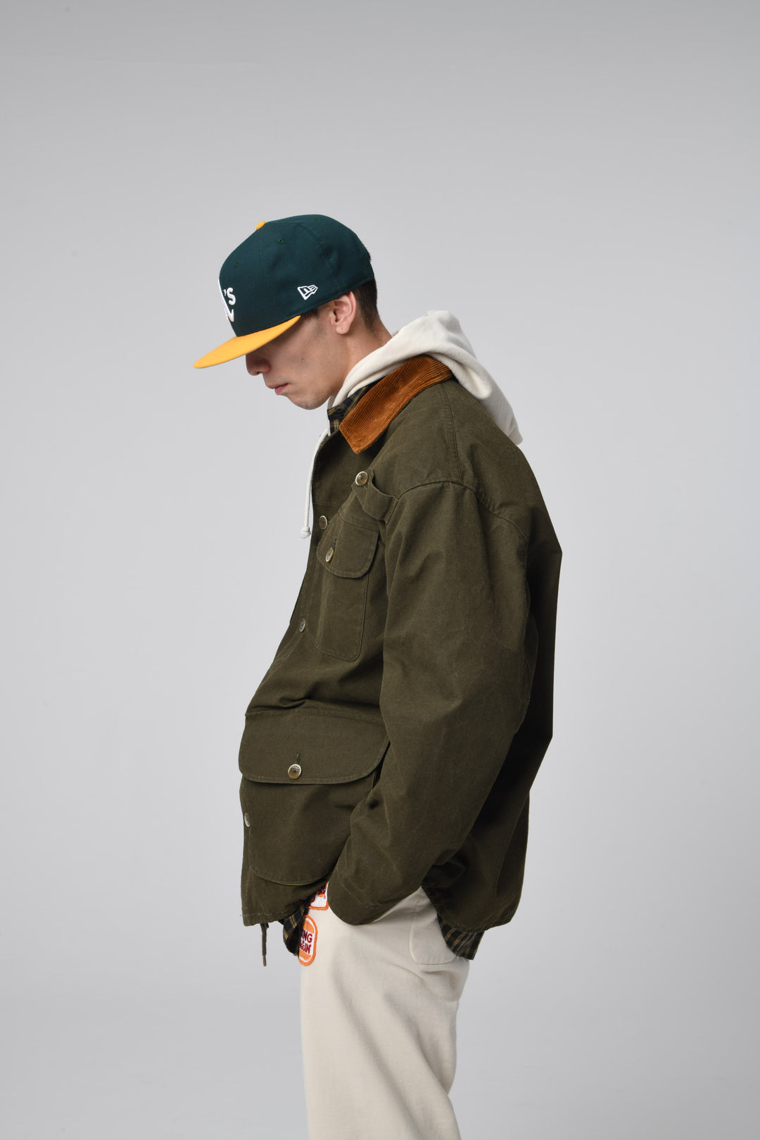 生地はワックスのようなコーティングを施したハリのある風合いで、時代に合わせてアップデートされたゆったりとしたサイズ感が特徴です。