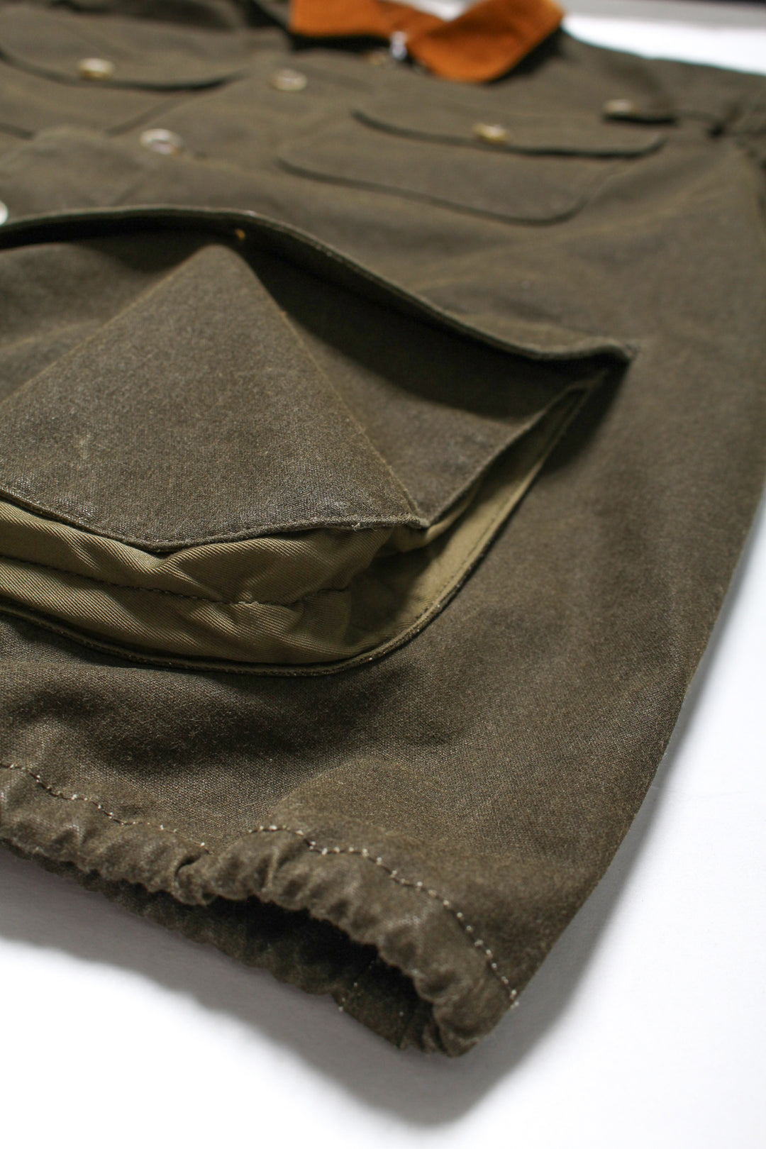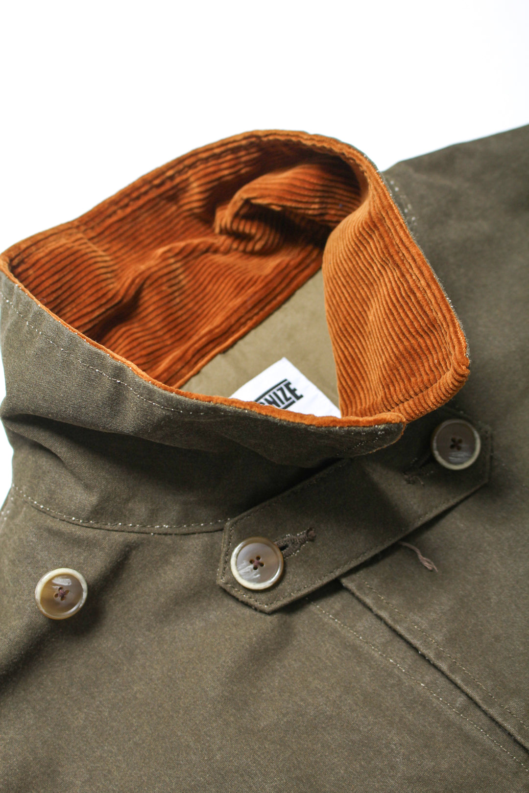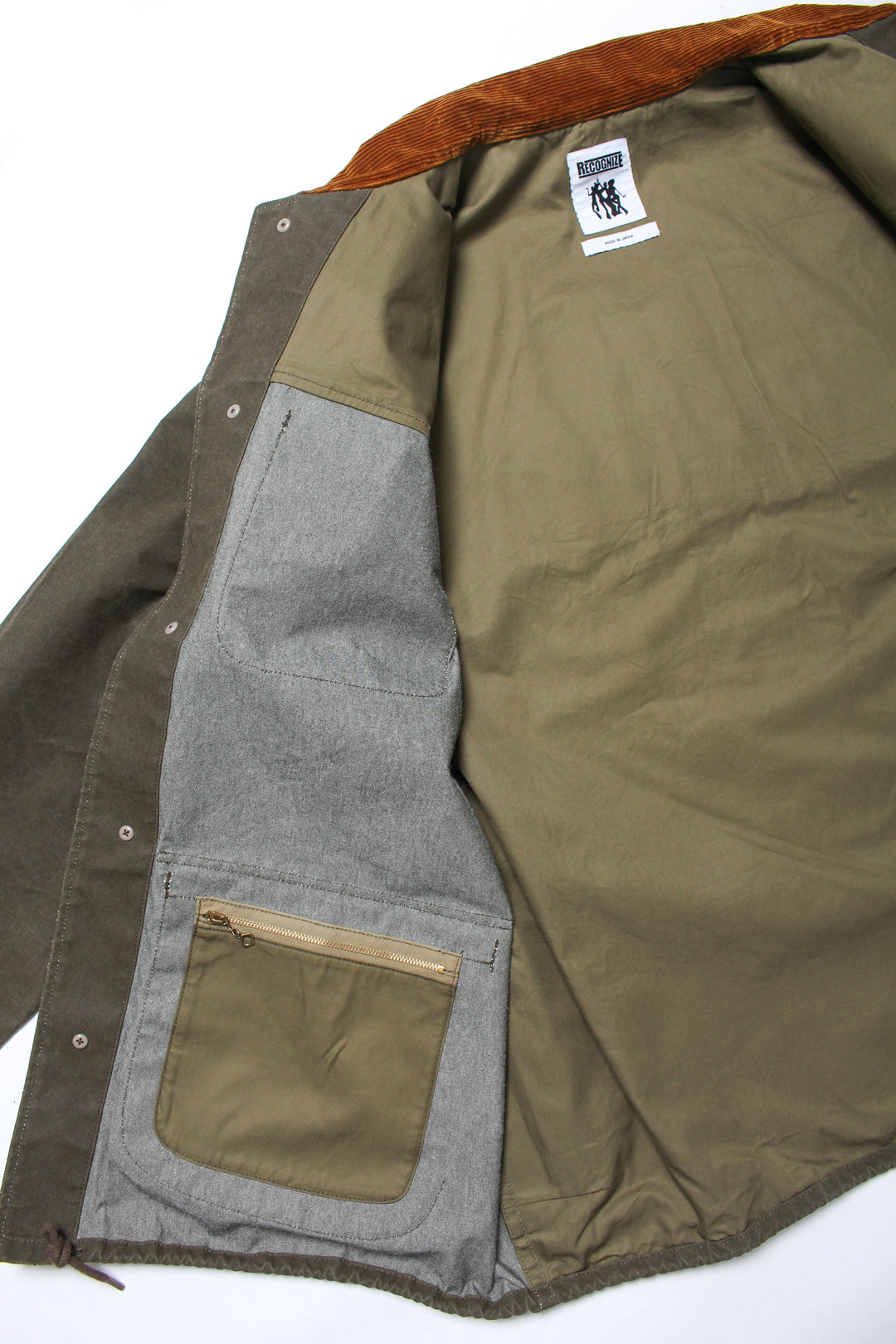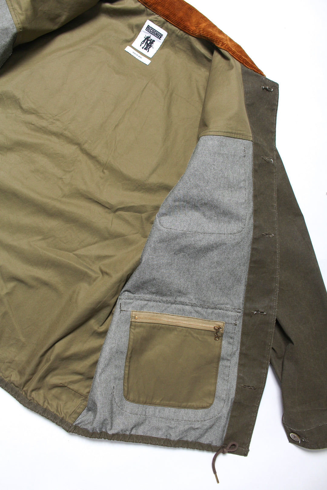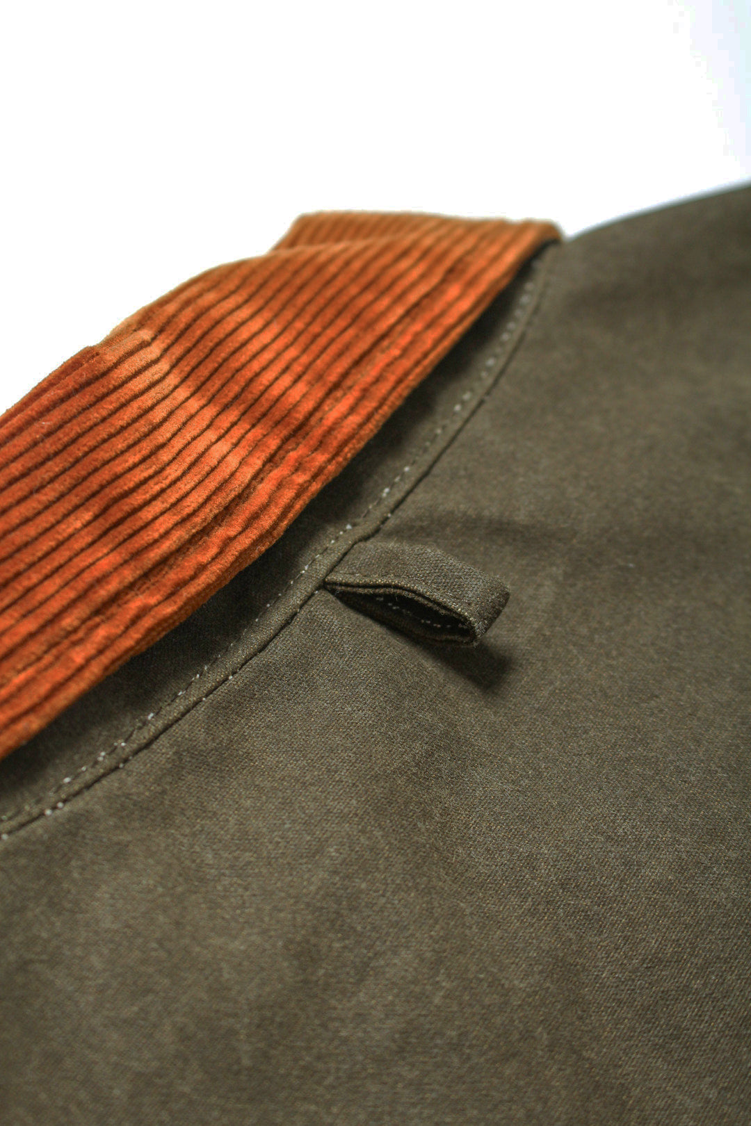 襟はコーデュロイを採用し、肩と背中部分のみ裏地がつきます。
