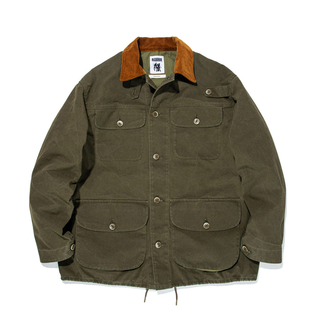 1960年から80年代のアウトドアウェアブランドカタログで多く見られるフォレストキーパー(森林警備隊)が愛用した『ワーデンジャケット』をモチーフに、難燃素材の燃えにくい機能を持つコットン生地を使用し作製した一着。