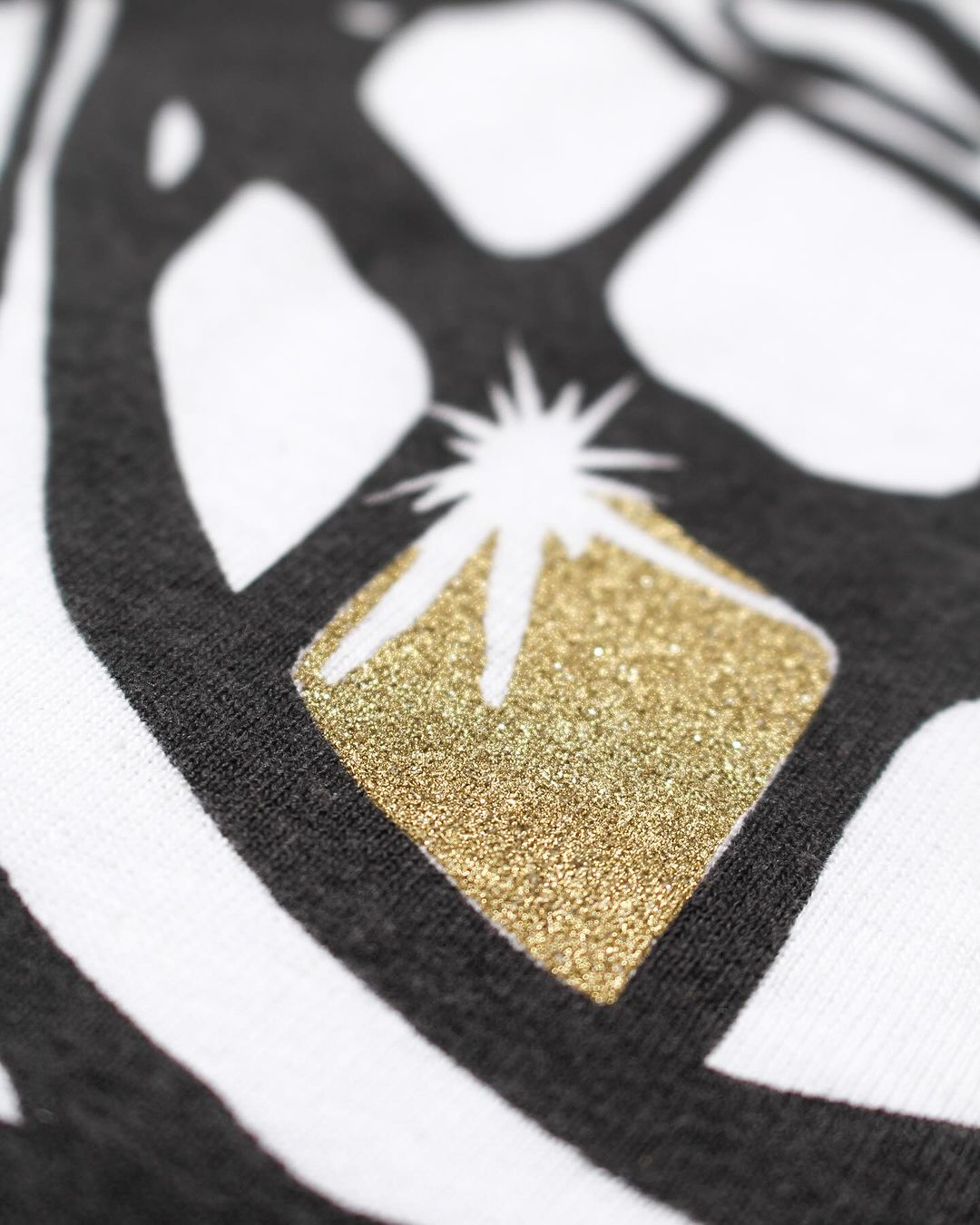 フロントのグラフィックのGold Tooth(金歯)のラメプリントがアクセントになっています。