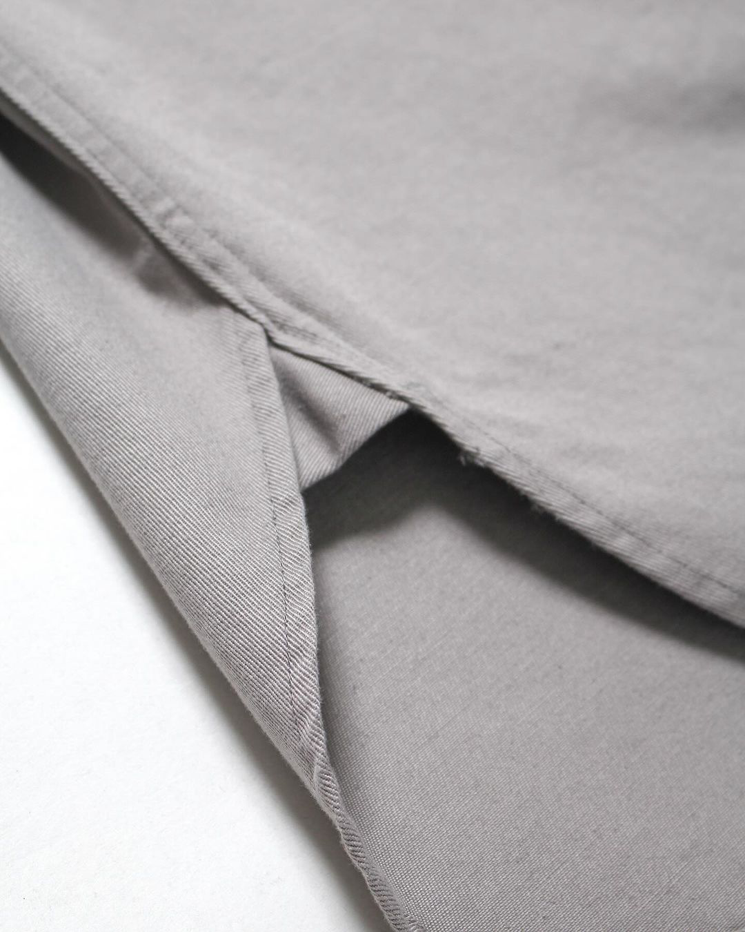 厚すぎないハリ感のあるコットンツイル生地を使用。どんなスタイリングにも合わせやすい落ち着いたトーンのグレーの色味が特徴的です。