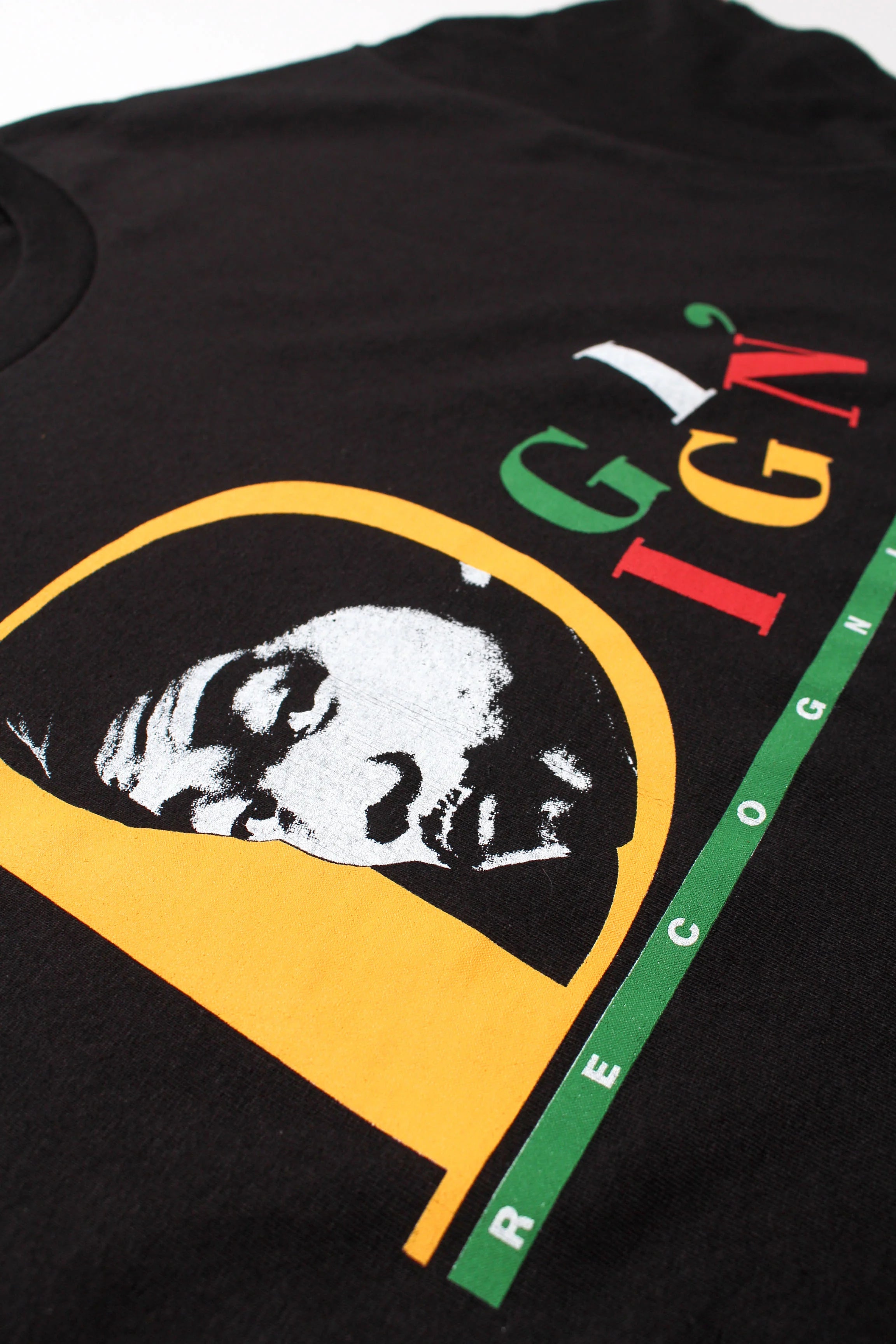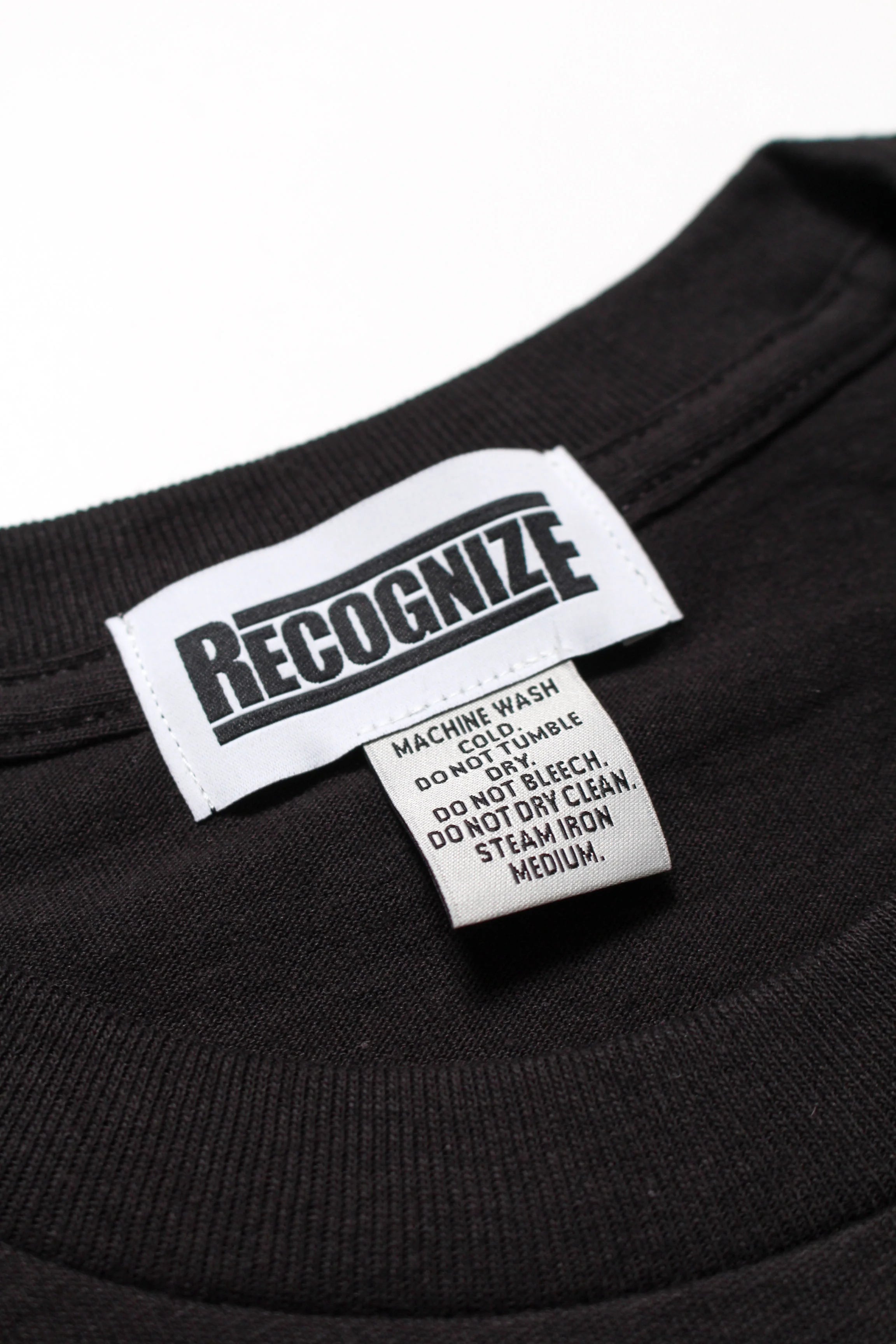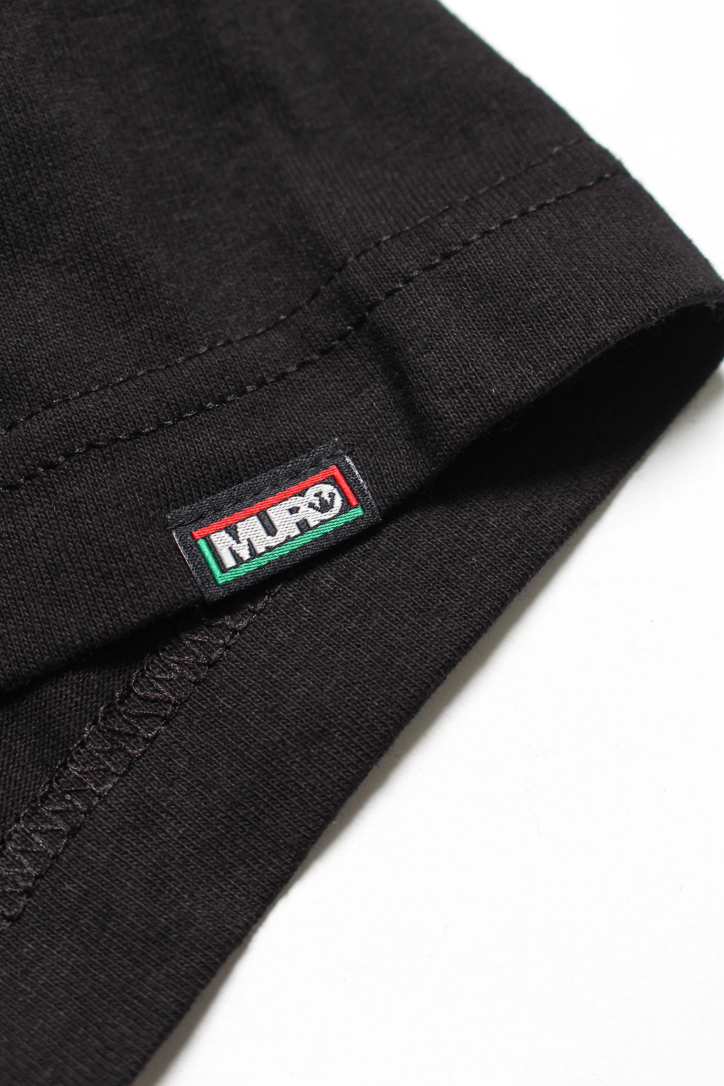 〈RECOGNIZE〉2025年春夏コレクションより、KING OF DIGGIN’ことMUROの90年代のアーティスト写真をモチーフにしたグラフィックが印象的な1枚です。RAP TEEのような雰囲気がスタイルを彩ります。