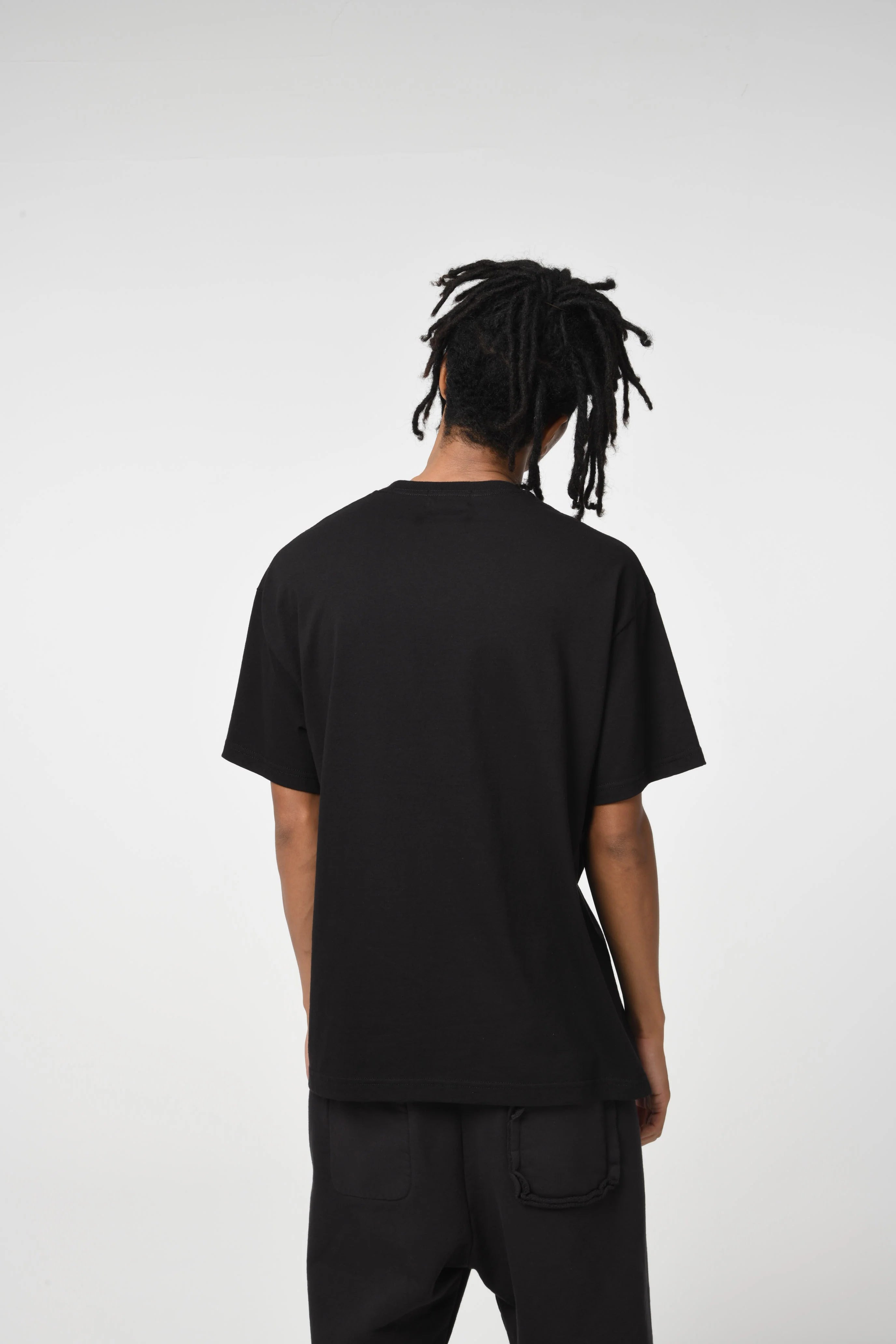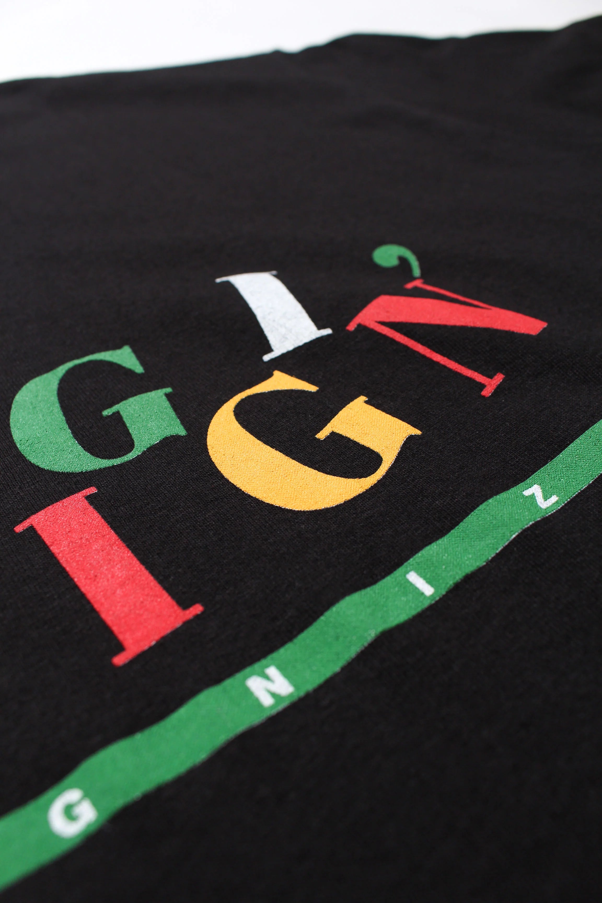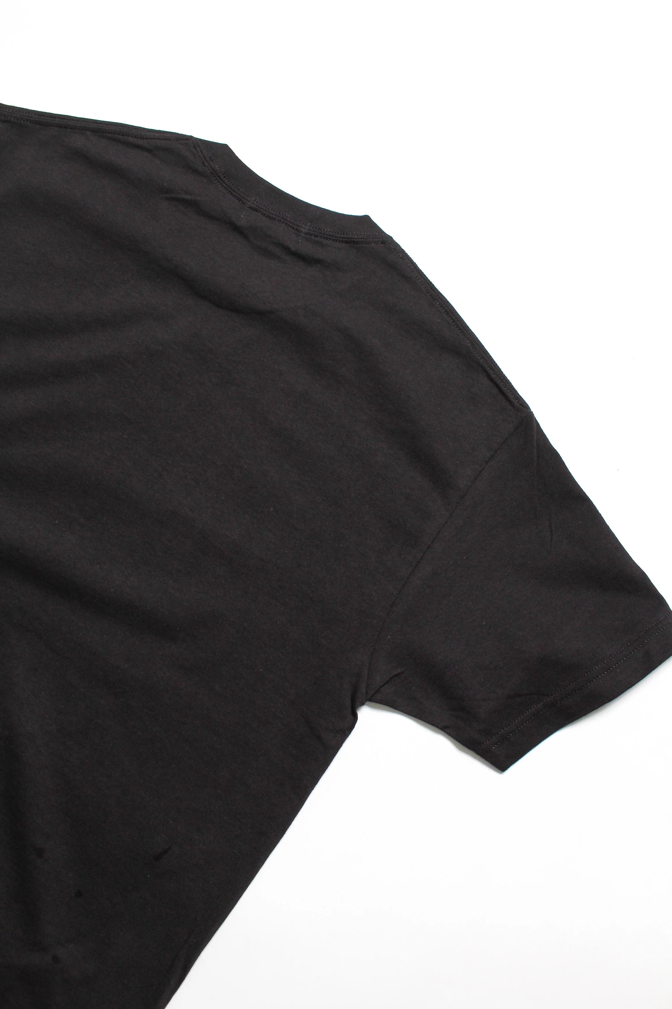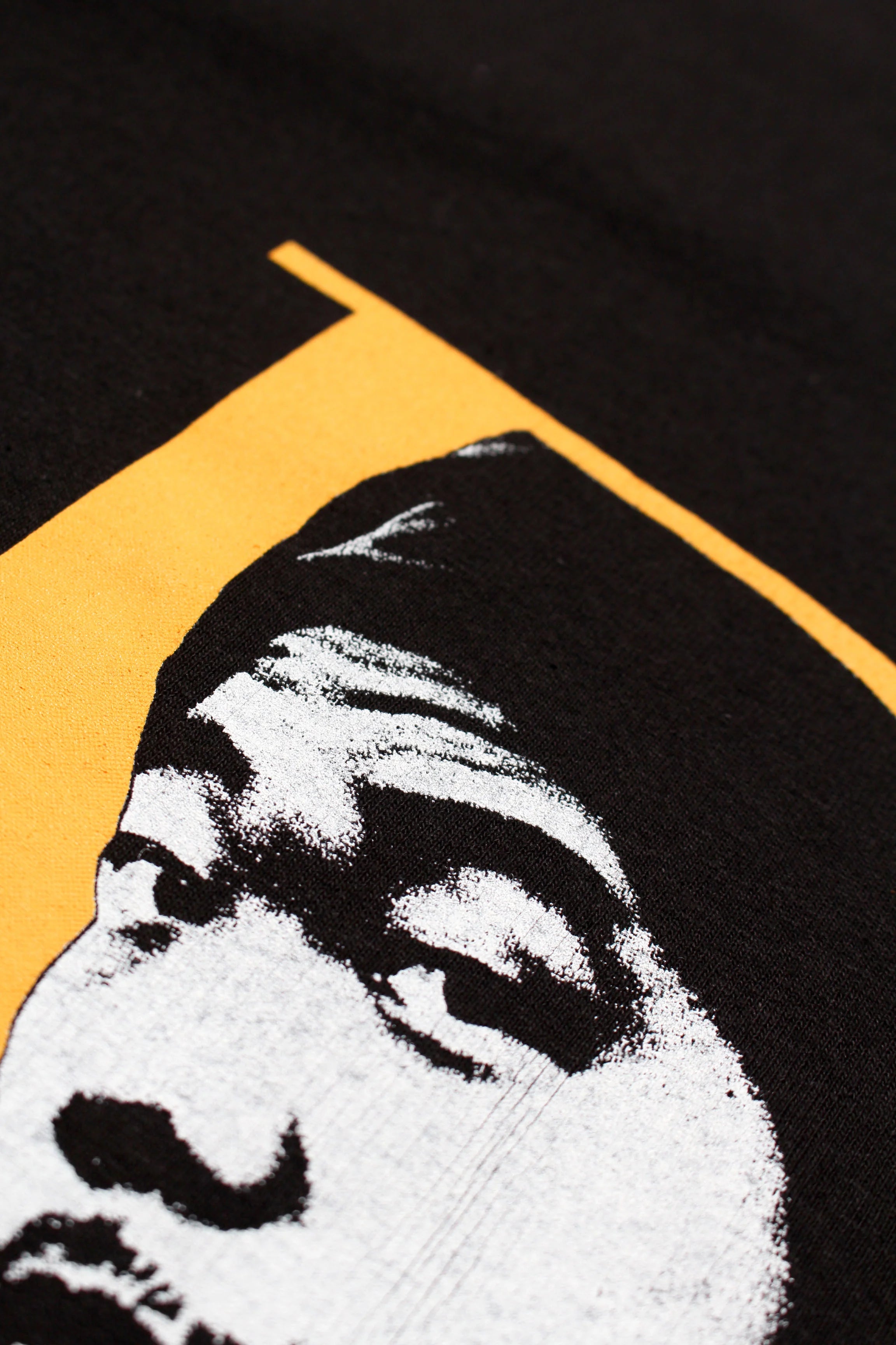 〈RECOGNIZE〉2025年春夏コレクションより、KING OF DIGGIN’ことMUROの90年代のアーティスト写真をモチーフにしたグラフィックが印象的な1枚です。RAP TEEのような雰囲気がスタイルを彩ります。