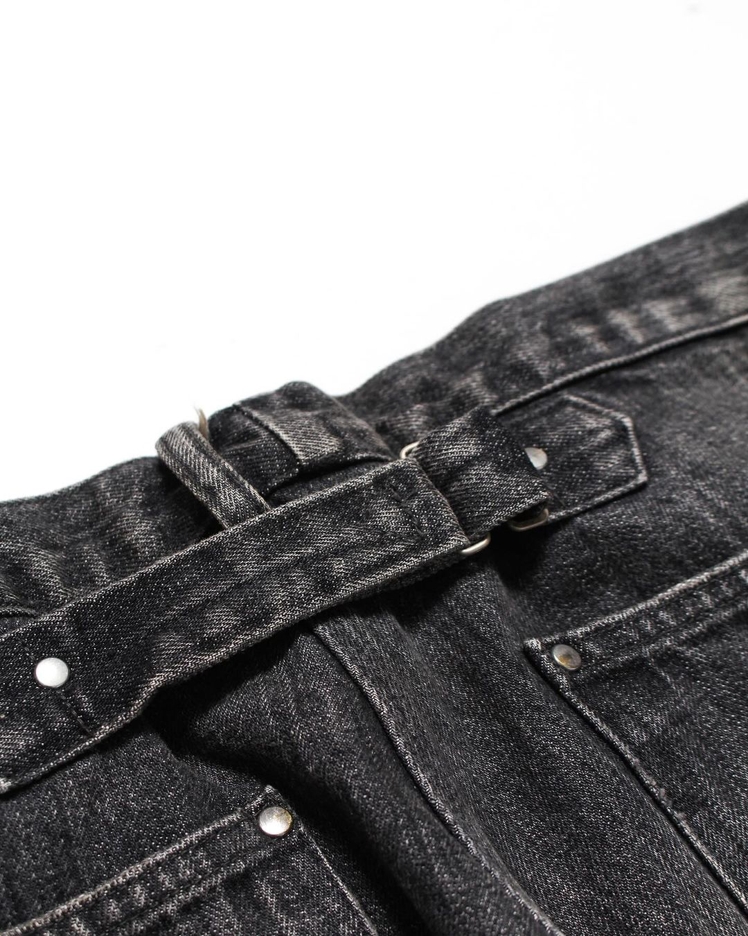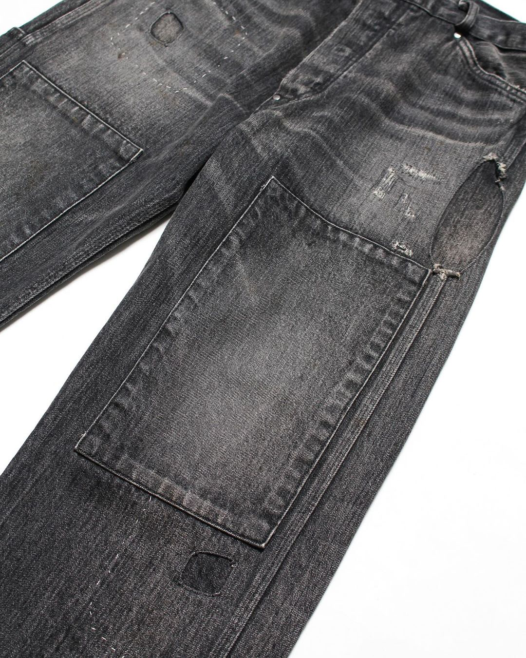 ワークウェアが完成を迎える前の1930年代以前に存在感を放っていた、甘く取り付けられたベルトループやシンチバックや炭鉱作業者が使用していた蝋燭を差し込むポケットなどの独特のディテールを持つインディゴのワークパンツから着想を得て、素材をブラックデニムに置き換え、リアルヴィンテージの存在感を再現した一本。