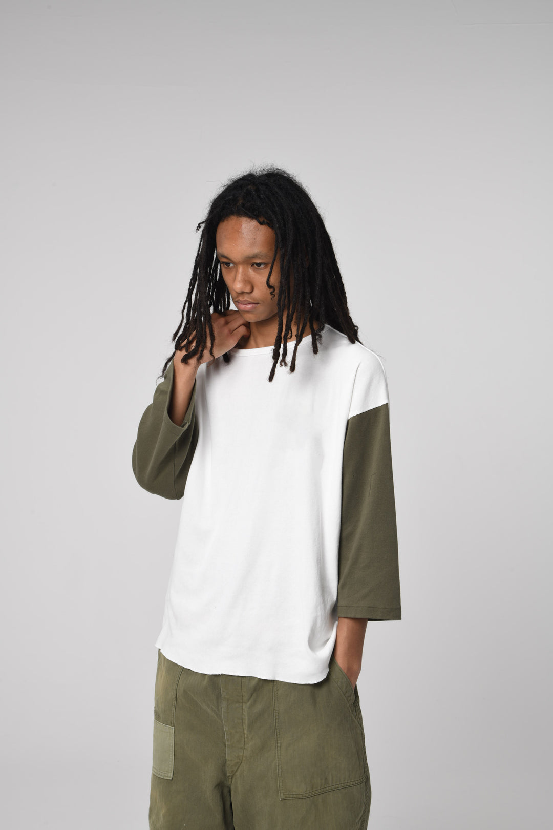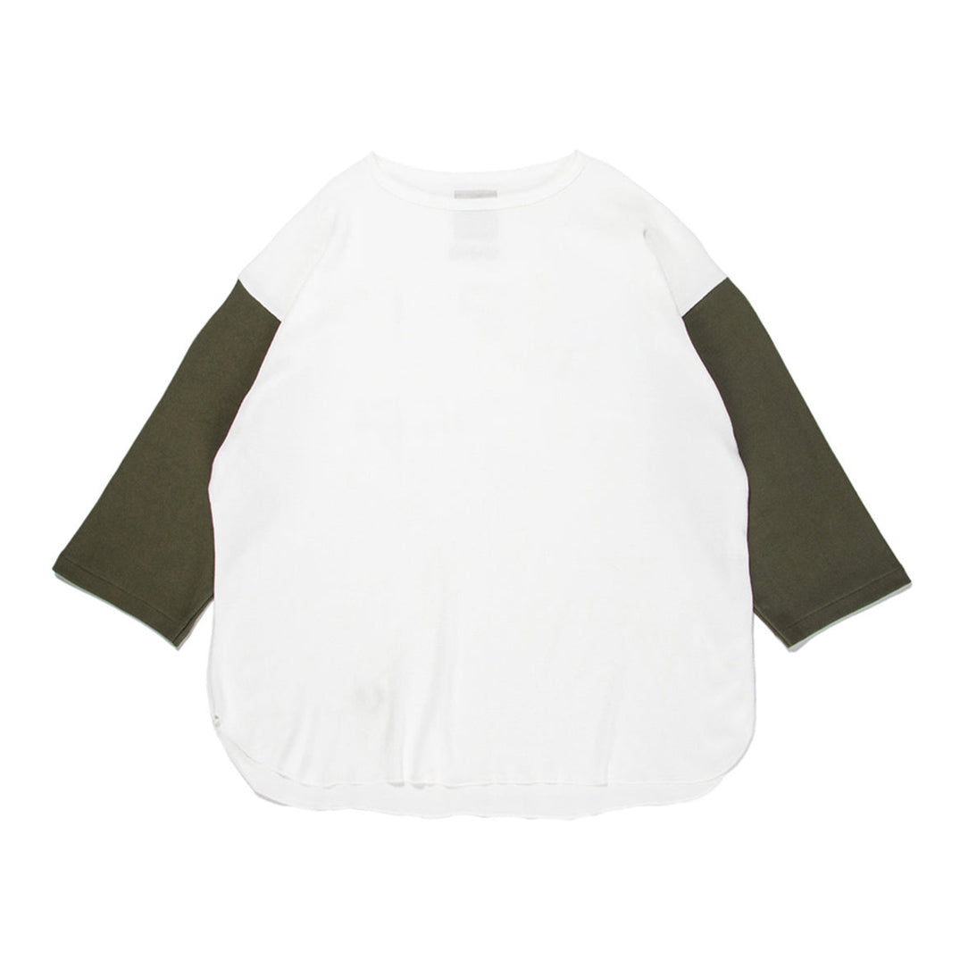 オリジナルで編み立てた上質な度詰めフライス生地を使用し作製した〈バウワウ〉のベースボールカットソー。