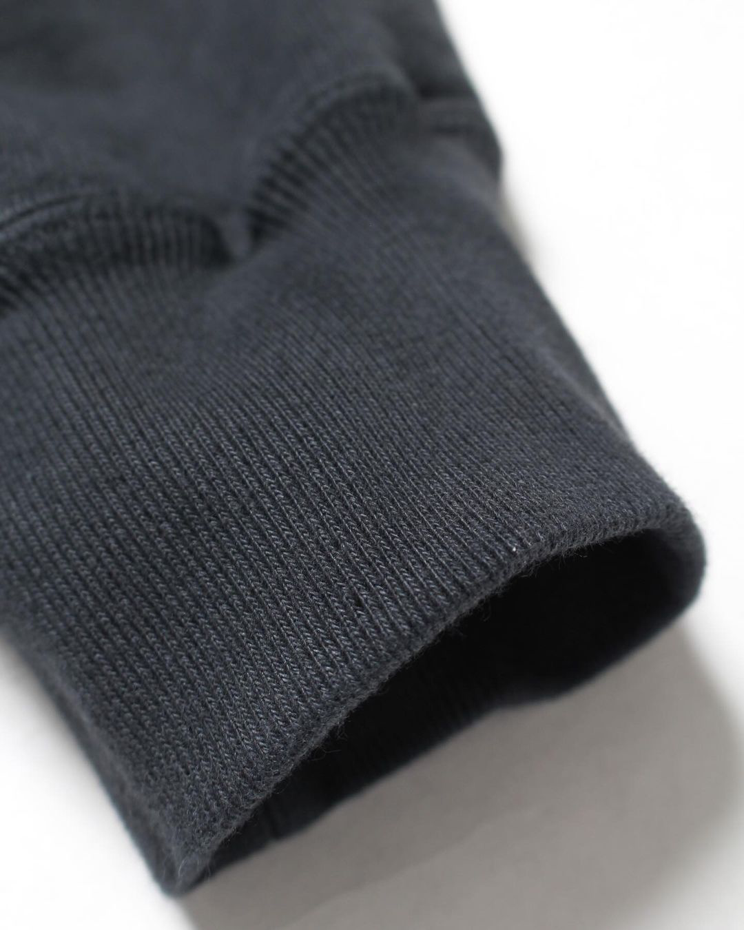 素材はオリジナルの肉厚の裏パイルスウェットを使用。身頃や袖のゆったりとしたフォルムをベースに、サイドパネルリブやポケットにヴィンテージのディテールを取り入れ、90年代のアメリカ製のスウェットのような雰囲気を再現した本格仕様の一着です。