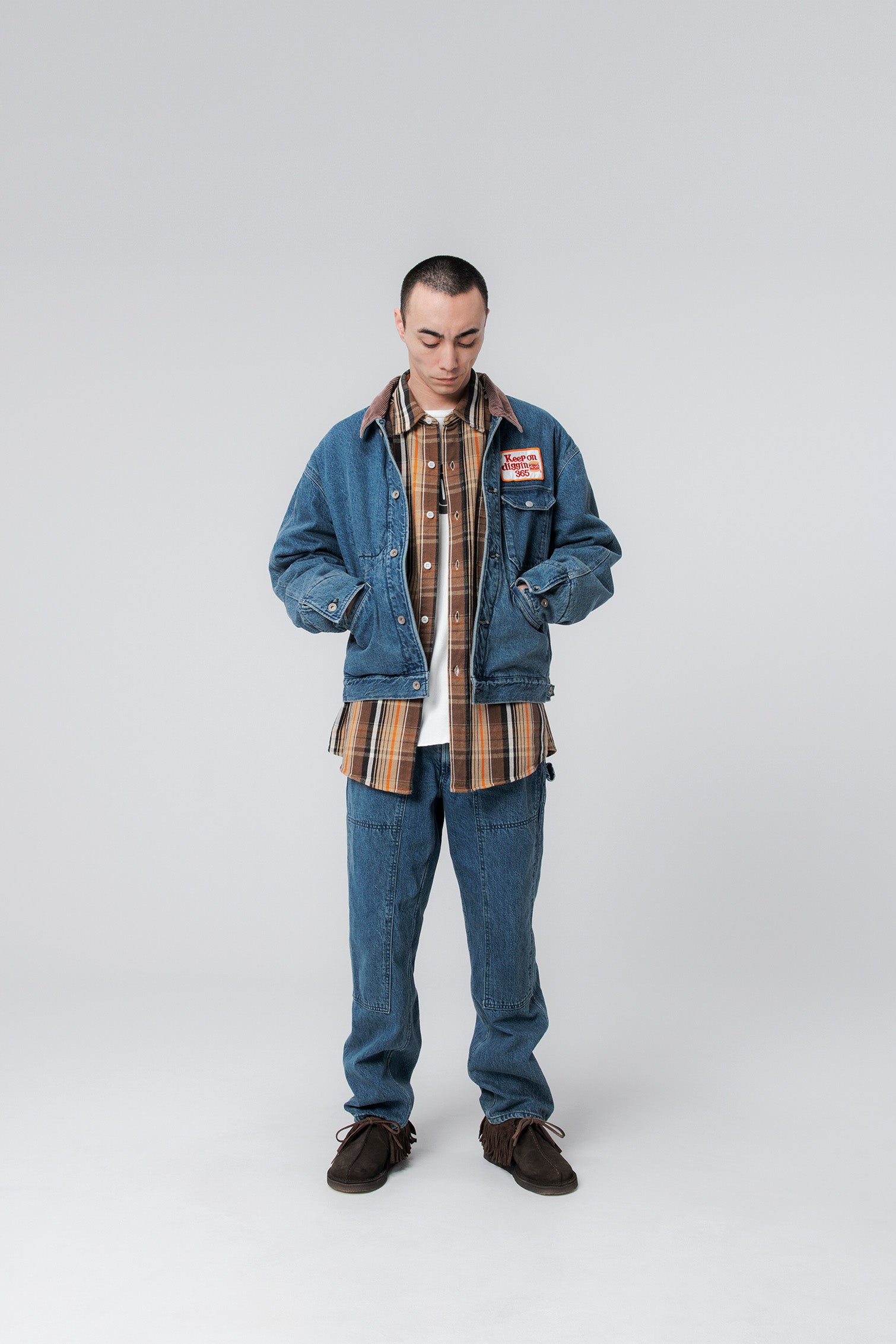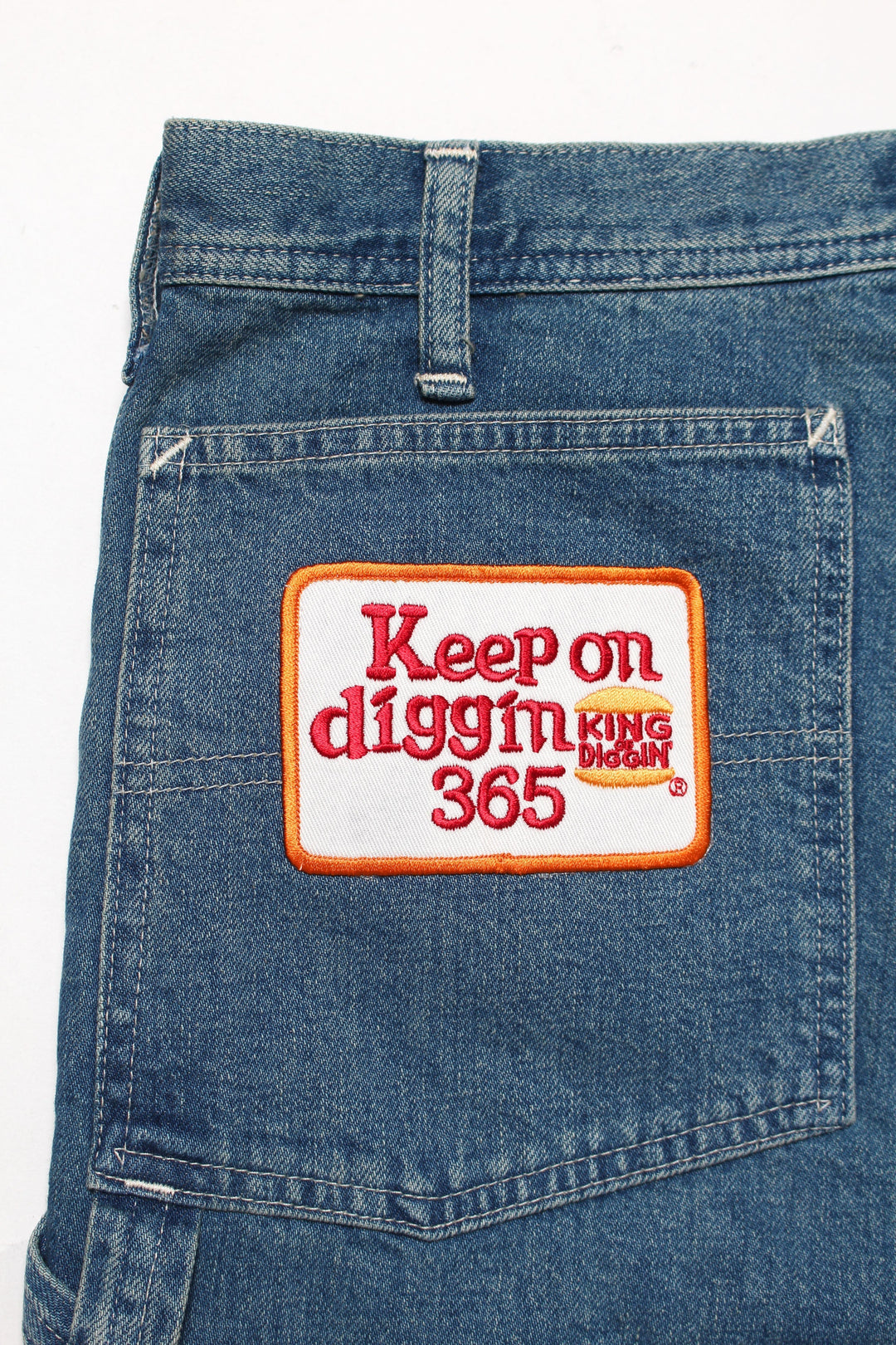 バックポケットのKING OF DIGGIN’モチーフのワッペンも遊び心のあるポイントになっています。