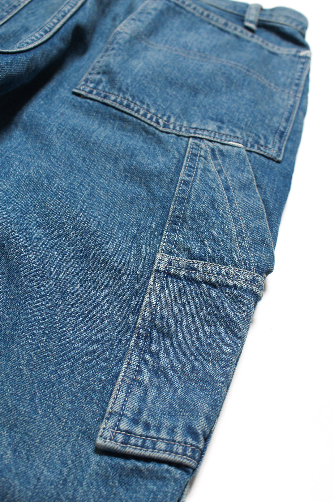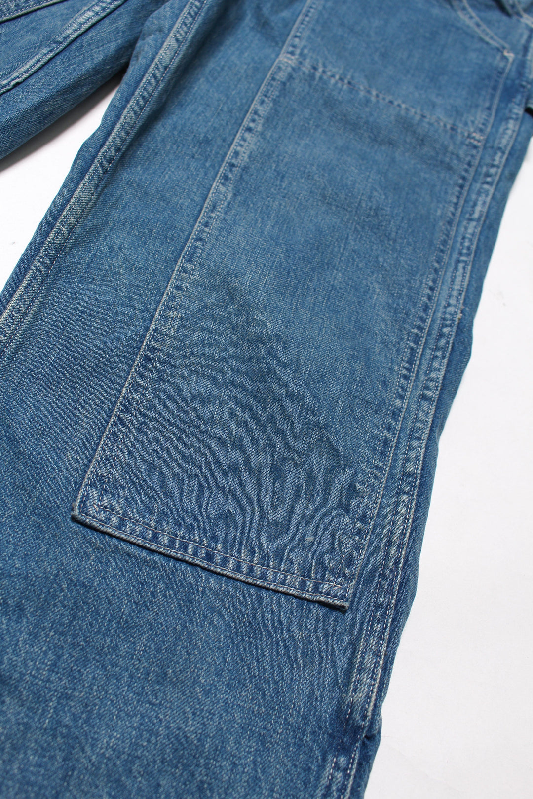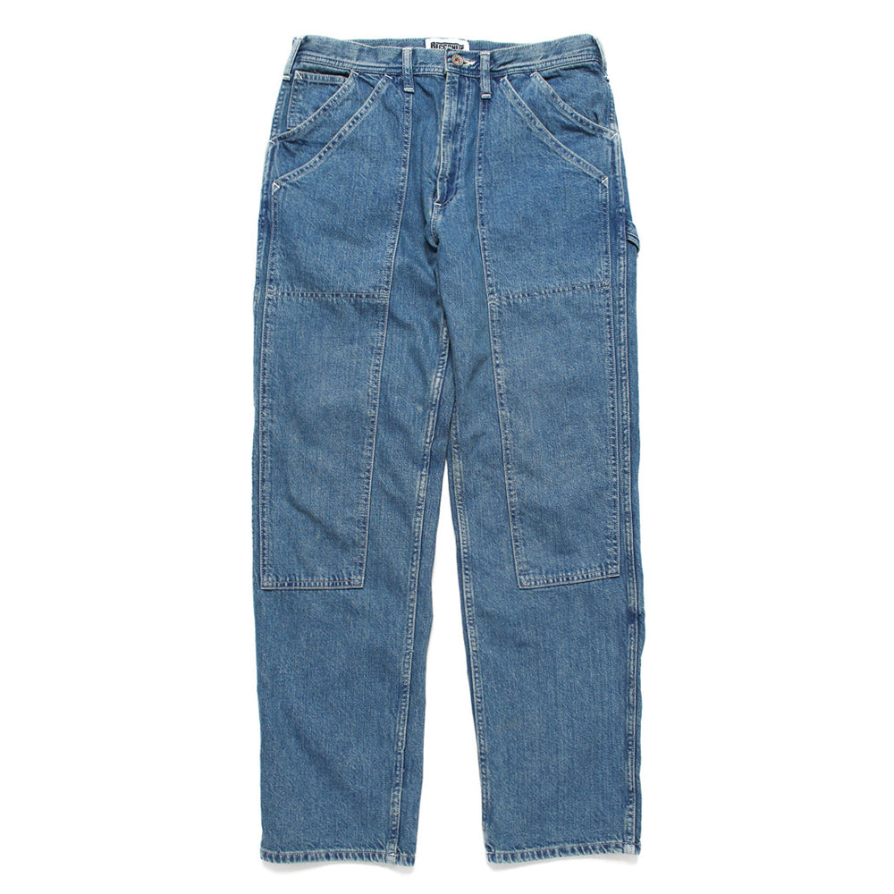 ペインターパンツの代表的なディテールのひとつであるダブルニー仕様のデニムペインターパンツ。すっきりとした細すぎないストレートシルエットをベースに、ウォッシュ加工によって絶妙に色落ちしたヴィンテージライクなデニムの色味と、柔らかい風合いの素材感が特徴です。