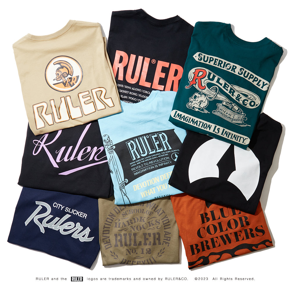 2023 SPRINGから、RULERのスタンダードなTシャツとロンTのサイズの見直しが行われ、これまでと比べてサイズ感がひとまわり大きくなりました(今季のMサイズがこれまでのLサイズ)。詳しくは下記の採寸情報をご確認ください。