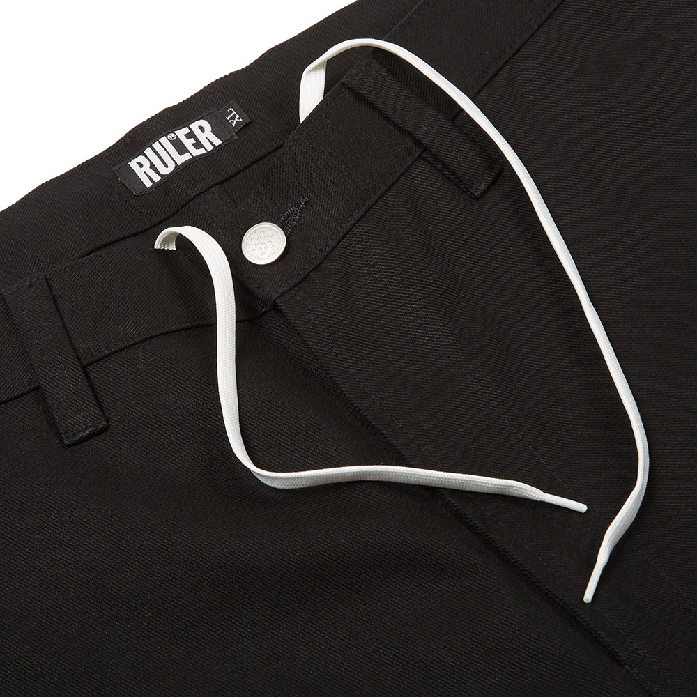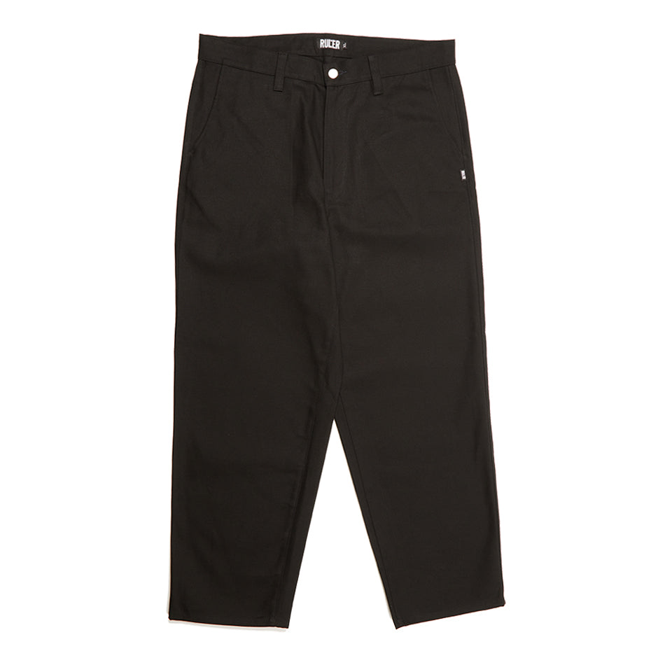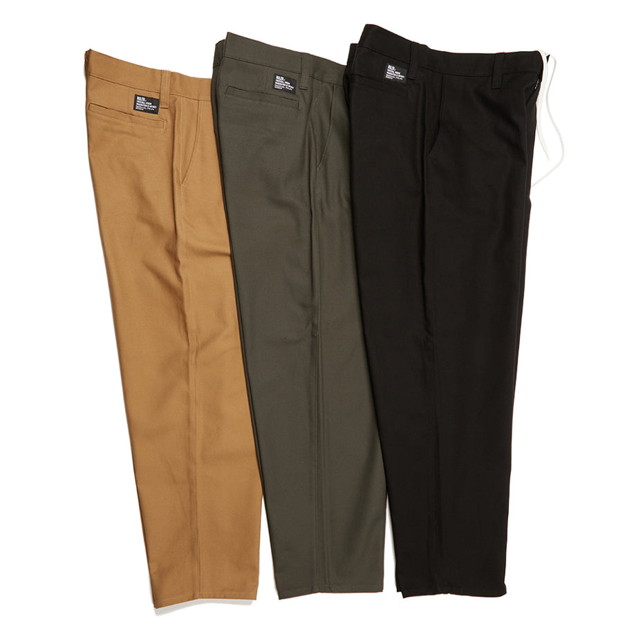 肉厚なコットンサージ生地を使用し作製した〈RULER®︎〉のワークトラウザー。毎回好評を博しているワイドシルエットのデザインと、それをキープするしっかりとしたハリのある生地感が特徴です。