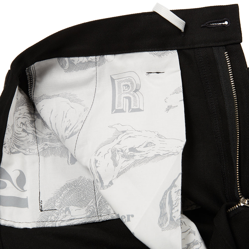 ウエストはドローコードとベルトループのついたイージー仕様。ポケットスレキにはオリジナルのアートワークが印象的な"C.P."テキスタイルを使用し、遊び心をプラスしています。