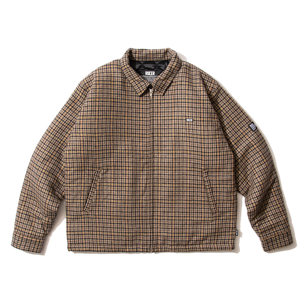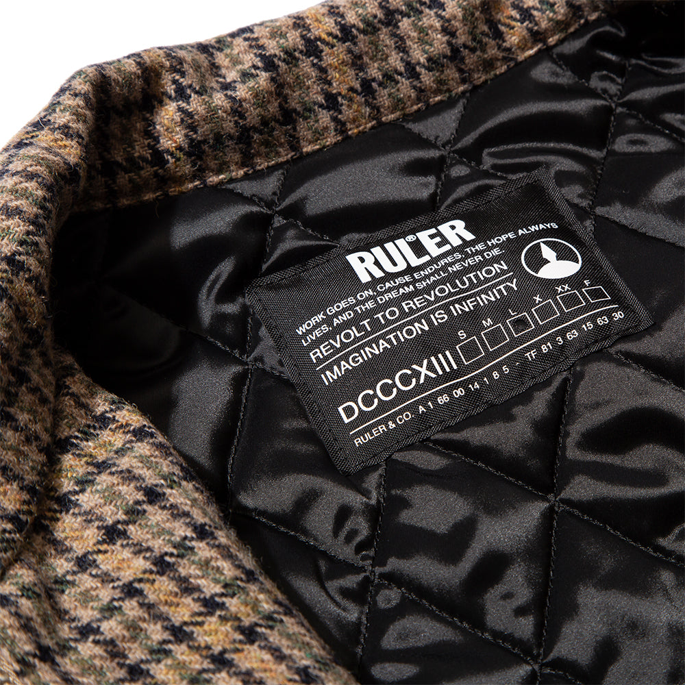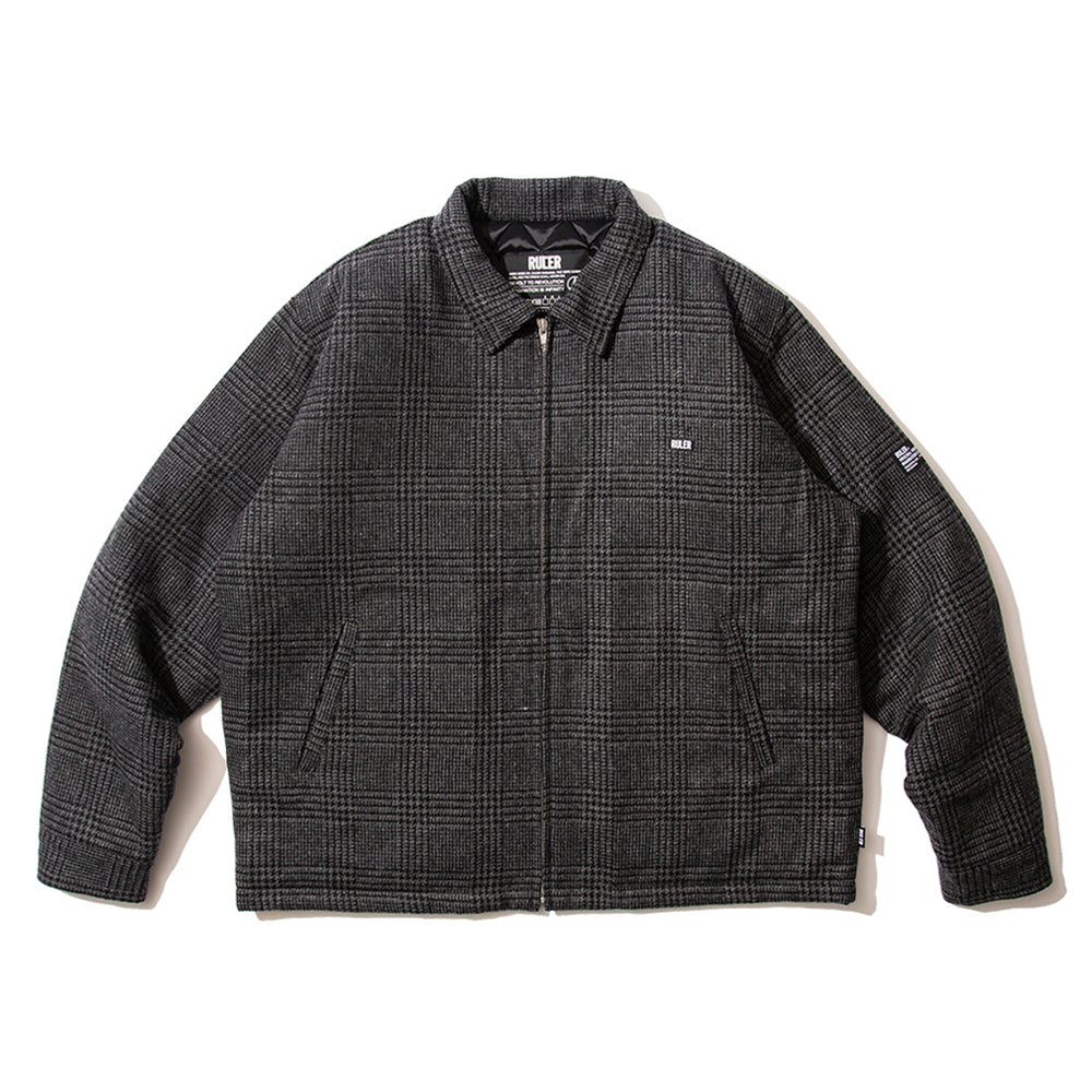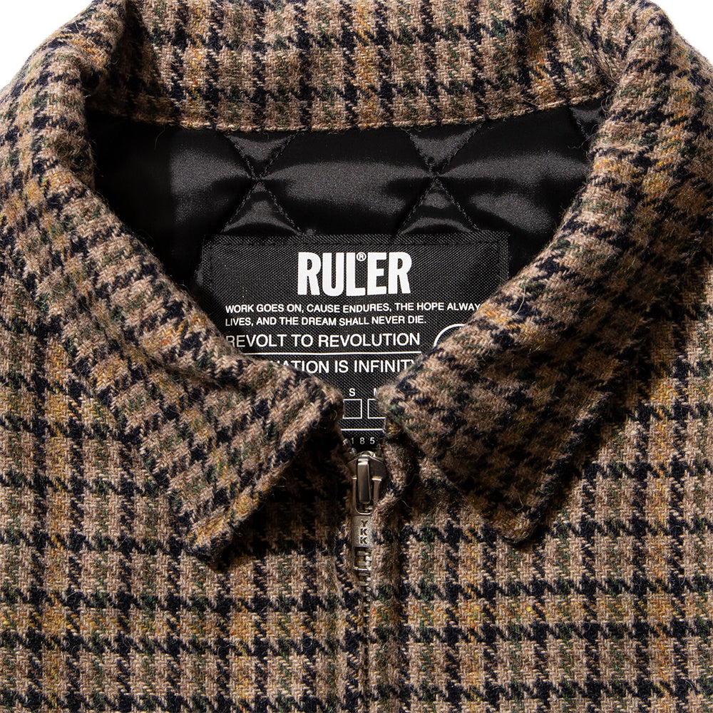 格子柄のウールツイードチェック生地を使用し作製した〈RULER®︎〉のドリズラージャケット。内側はキルティング仕様で、柔らかく少しふっくらした素材感の軽い着心地が特徴です。