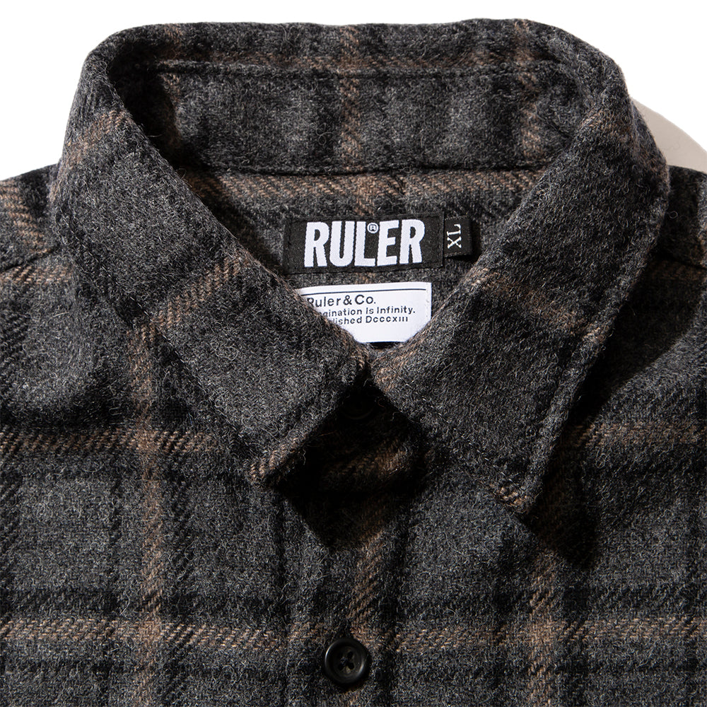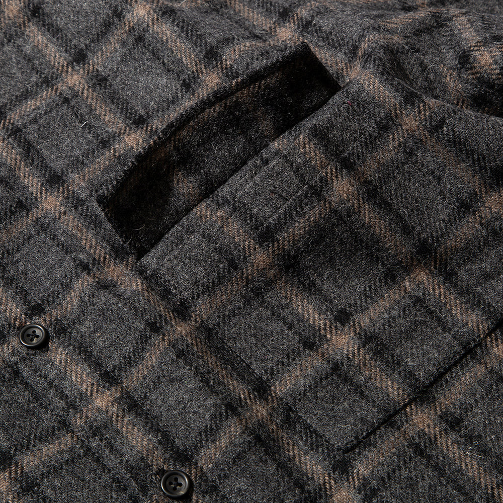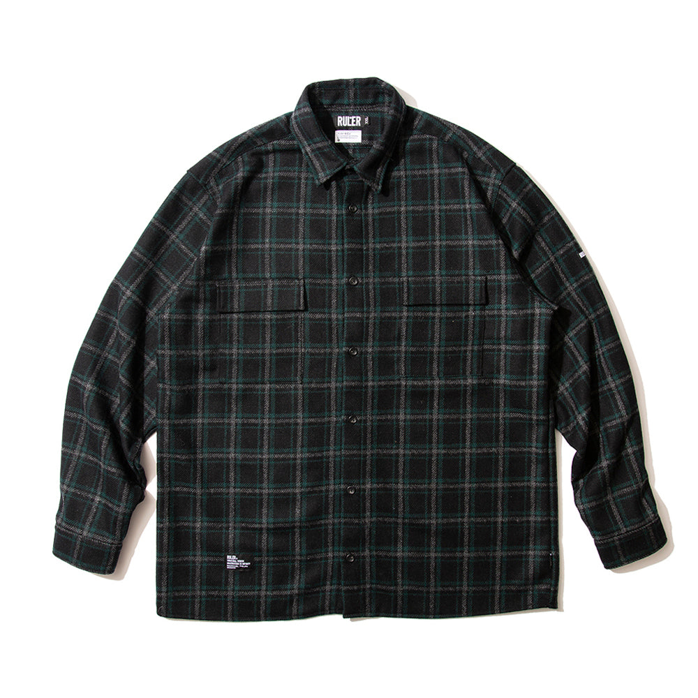 ウールツイードチェック生地を使用し作製した〈RULER®︎〉の2フラップポケットシャツ。程よくゆったりしたサイズ感と落ち着いたクラシックな雰囲気が特徴です。シンプルなデザインながらも、フラップポケットがちょうどいいアクセントになっています。