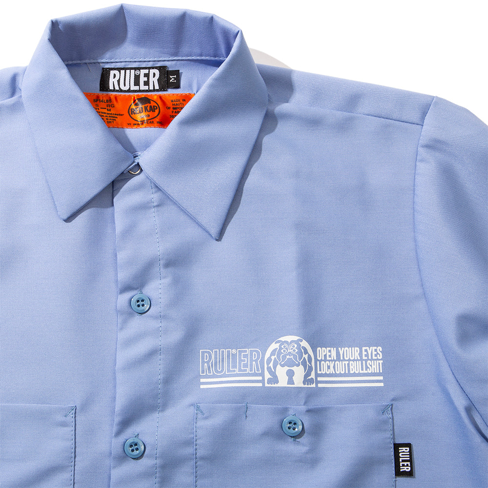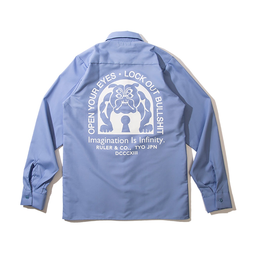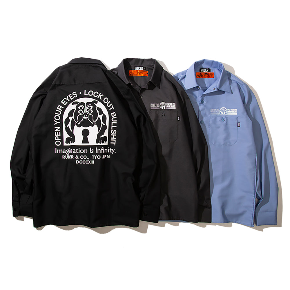 U.S. REDKAP社製のワークシャツをベースに、フロントとバックにシルクスクリーンプリントでアートワークを配した〈RULER®︎〉のワークシャツです。