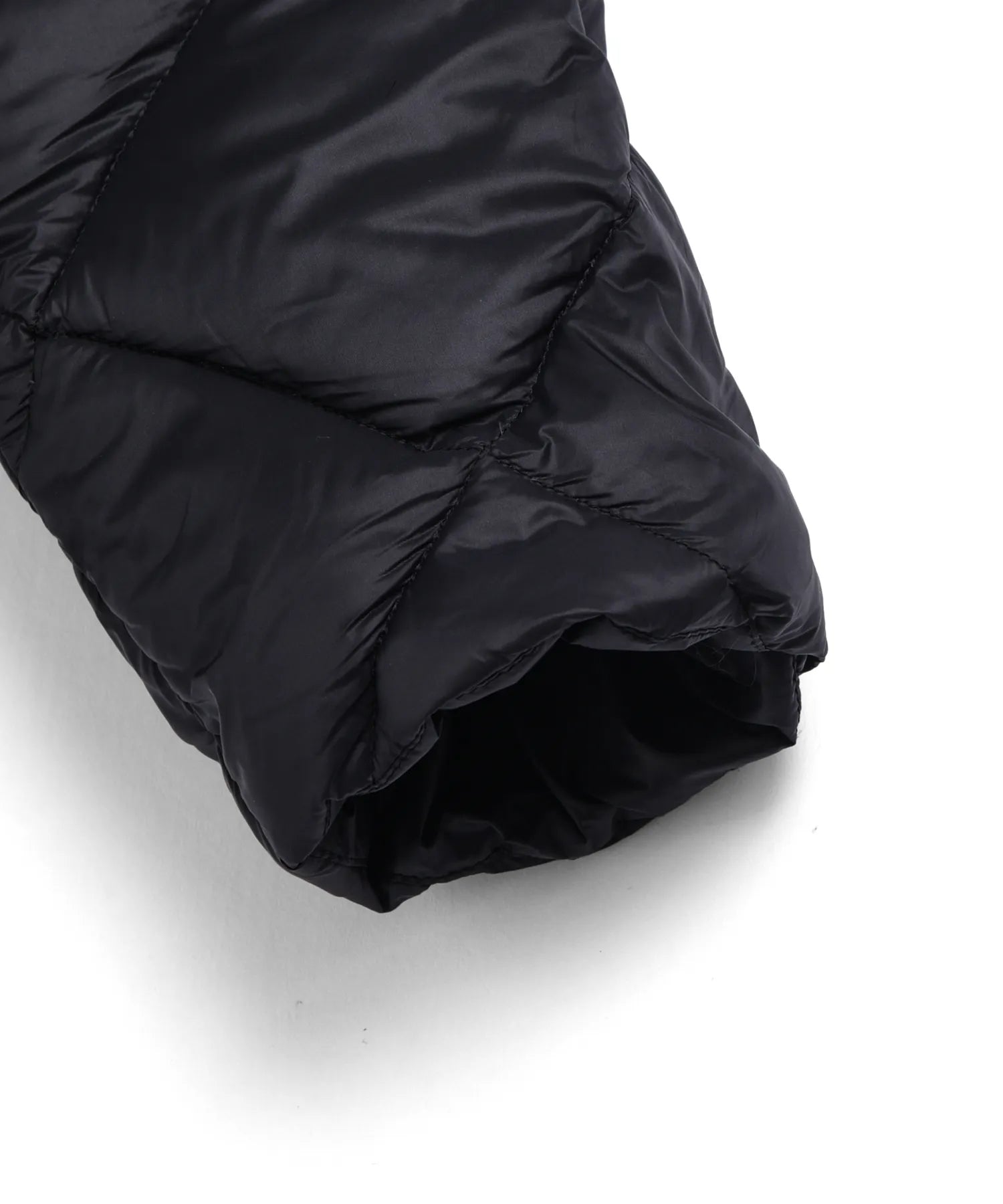 『アウターをコンパクトに持ち運ぶ』をコンセプトにした〈TAION〉CITY LINEのフード付ダウンコート。軽量で暖かく、収納袋に入れてコンパクトに持ち運びできるのが特徴です。スーツケースやカバン、車の中に1枚入れておく事で大変重宝するアイテムです。