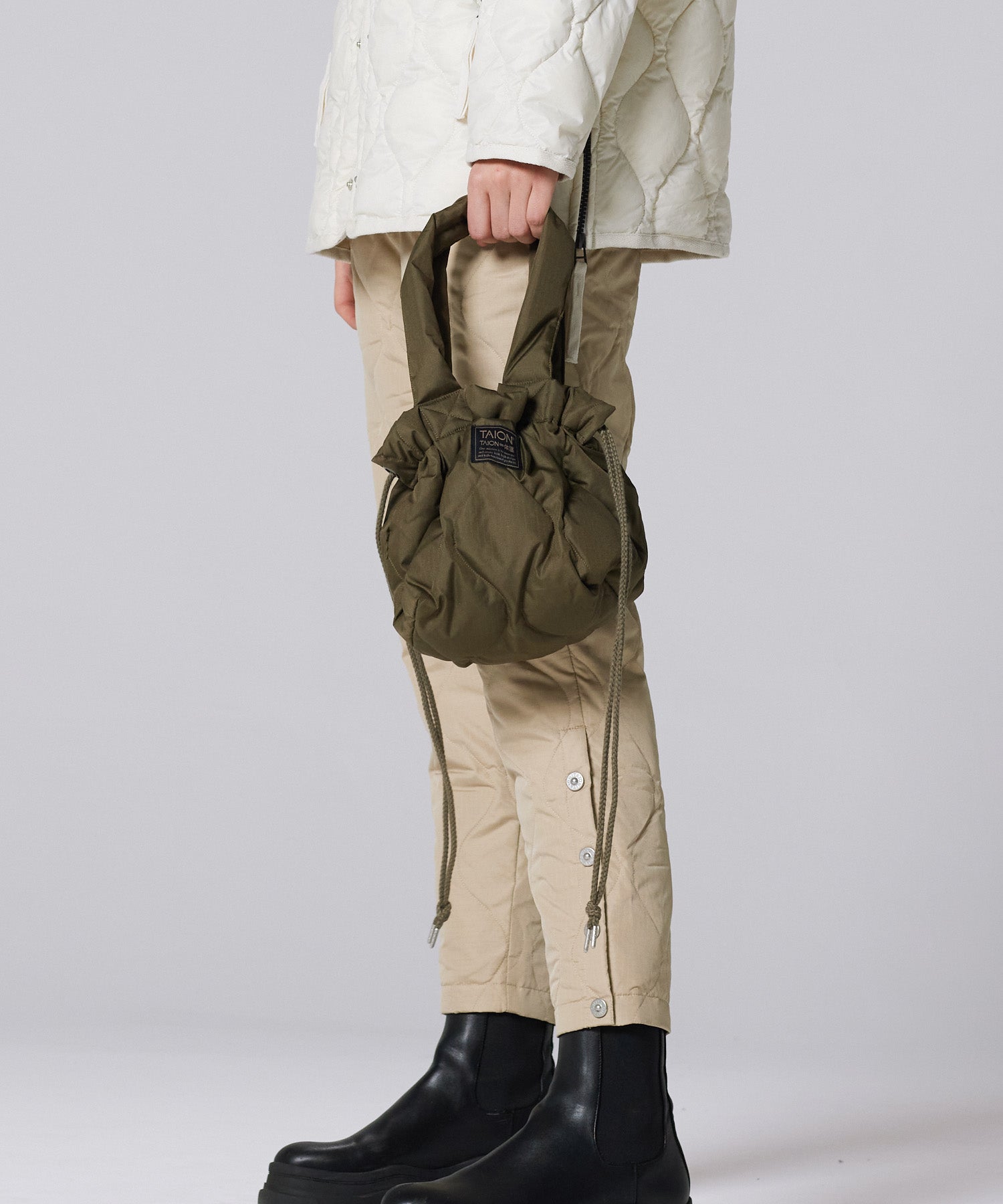 〈TAION〉MILITARY LINEより、見た目の良さと実用性を兼ね備えた、2WAYで使えるミリタリーストリングショルダーバッグです。バッグ口を絞ることでストリングバッグに変わり、バッグの中身が落ちない仕様になっています。プレゼントにもお勧めです。