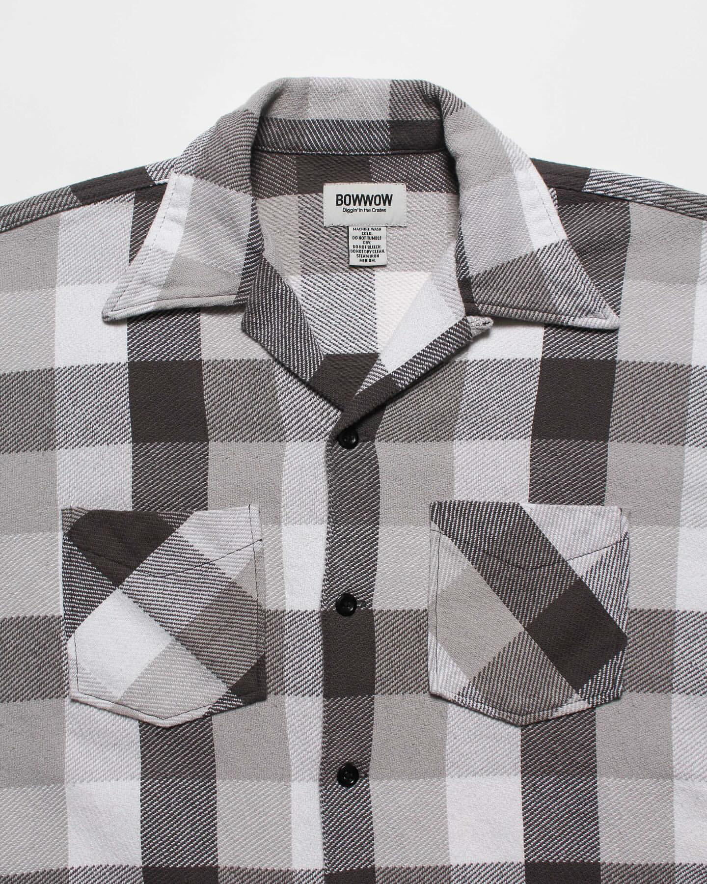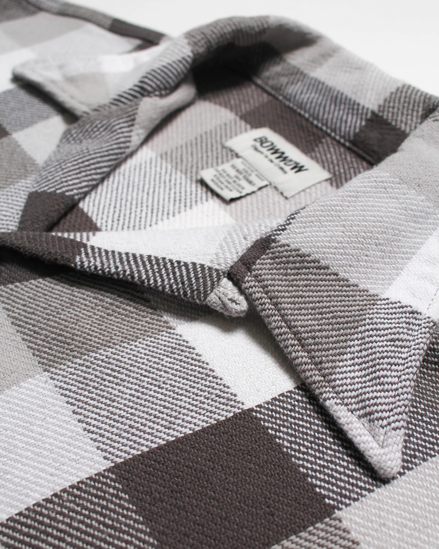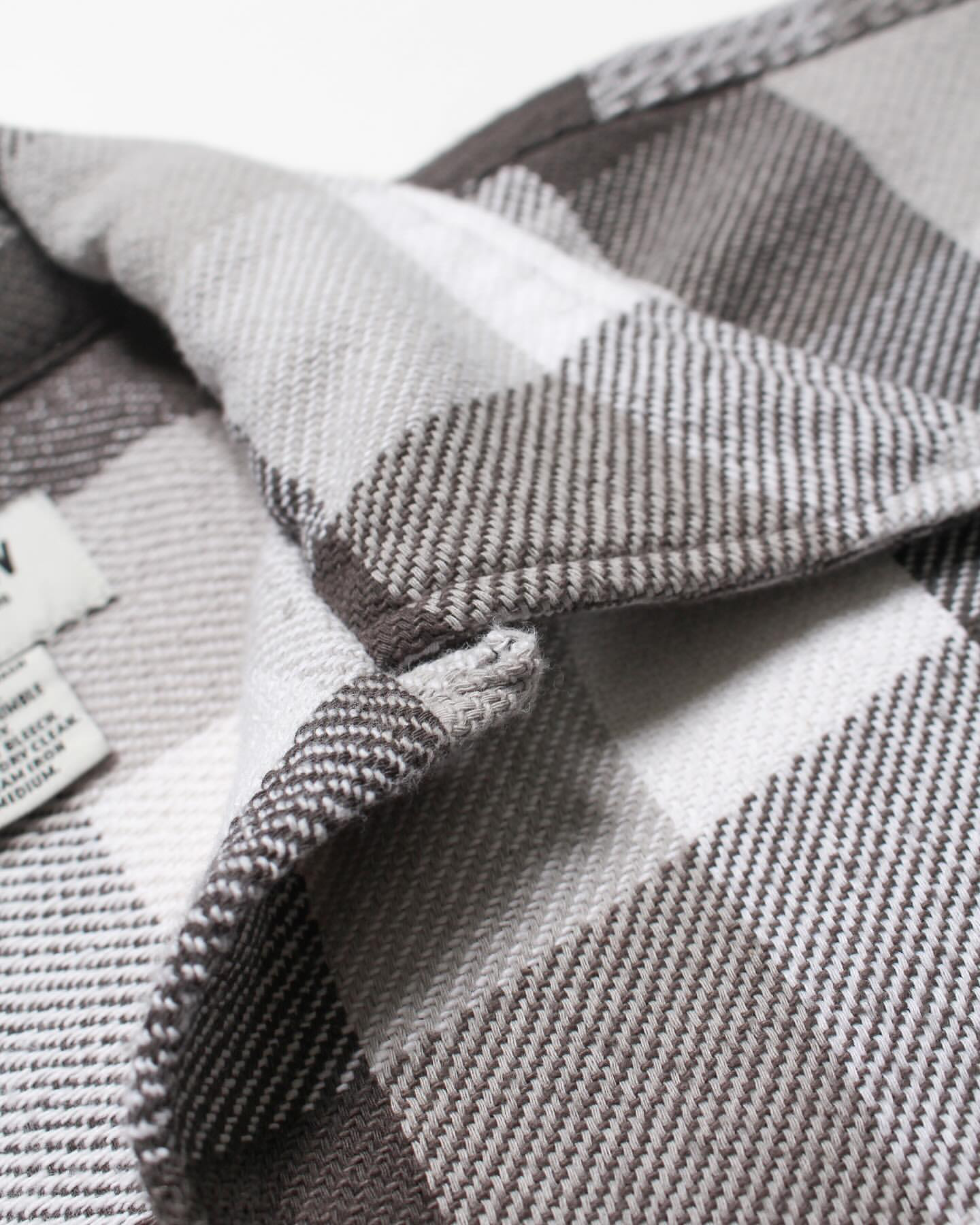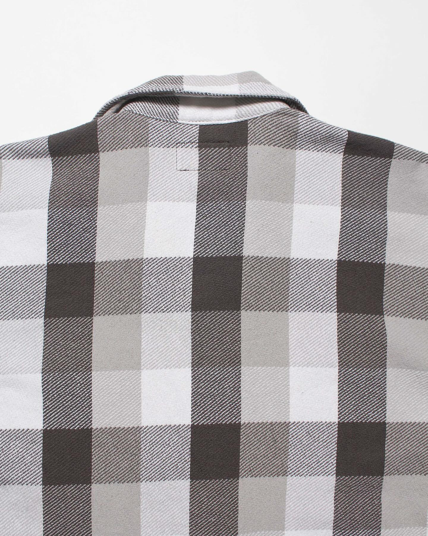 1940〜50年代、限られた有名ワークブランドだけが製作した厚地チェックネルの開襟シャツ。寒冷地の伐採現場や鉄道作業、アウトドアユースなど、厳しい環境での防寒着として重宝された一着は、耐久性と保温性、そしてブランド独自のディティールが誇りを語っていた。本作は、その時代特有の重厚なチェックネルをグレー×ホワイトの配色で再現。肩や袖付けのステッチワーク、ポケット形状などの細部まで当時の意匠を踏襲しつつ、現代的なフィッティングへとアップデート。