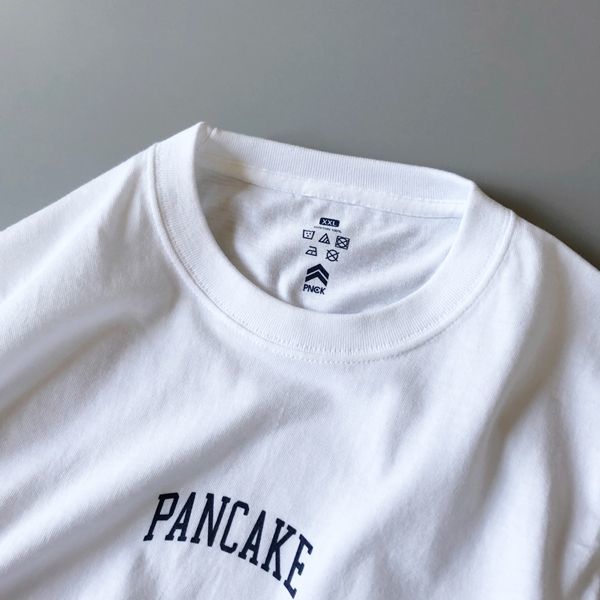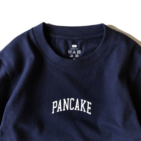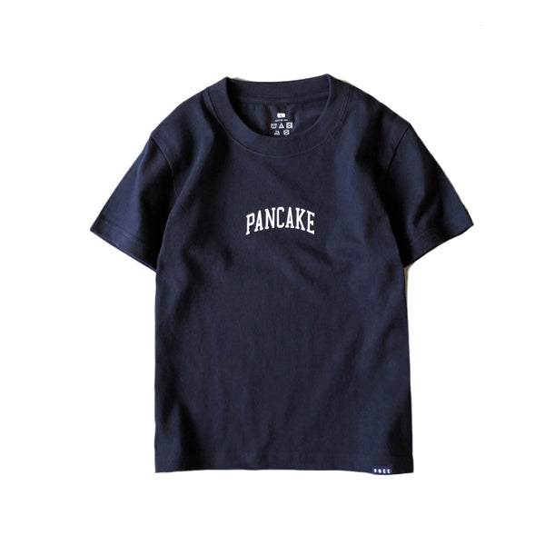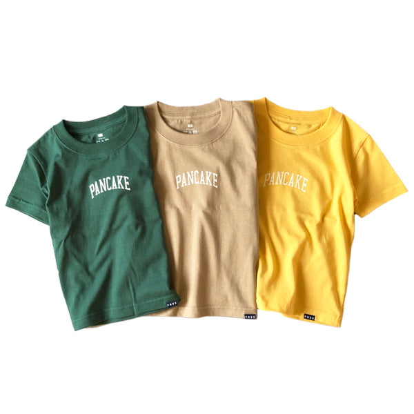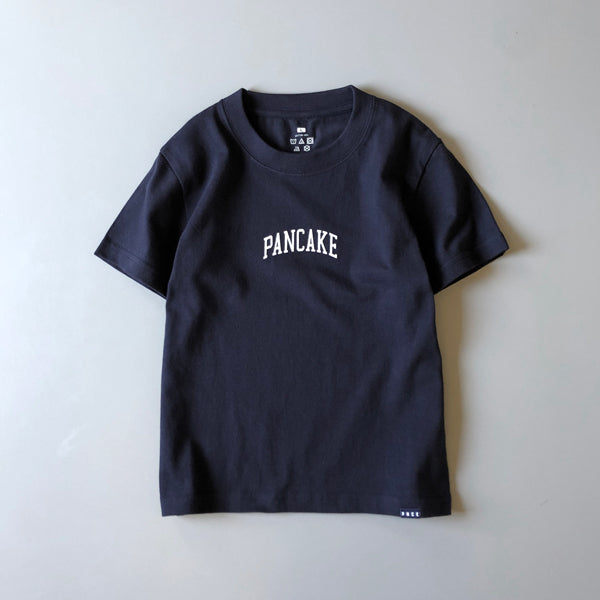 フロントに〈PANCAKE〉のアーチロゴをプリントしたキッズサイズのTシャツ。丈夫でしっかりした程よい厚みの生地感が特徴の5.6ozのボディーを使用しています。