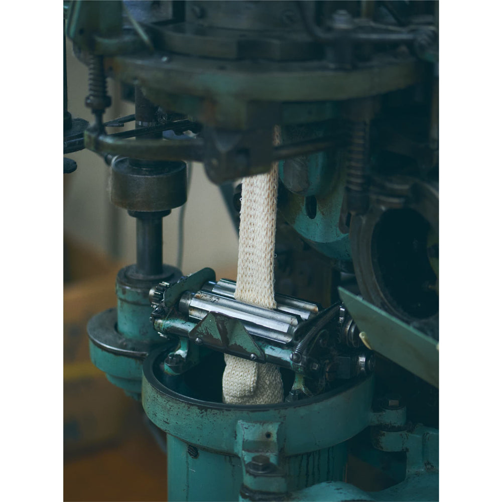 yahaeの靴下は、多様な編み機を駆使して、まるで素材を生かした料理のように、熟練の技術者が編み立てています。