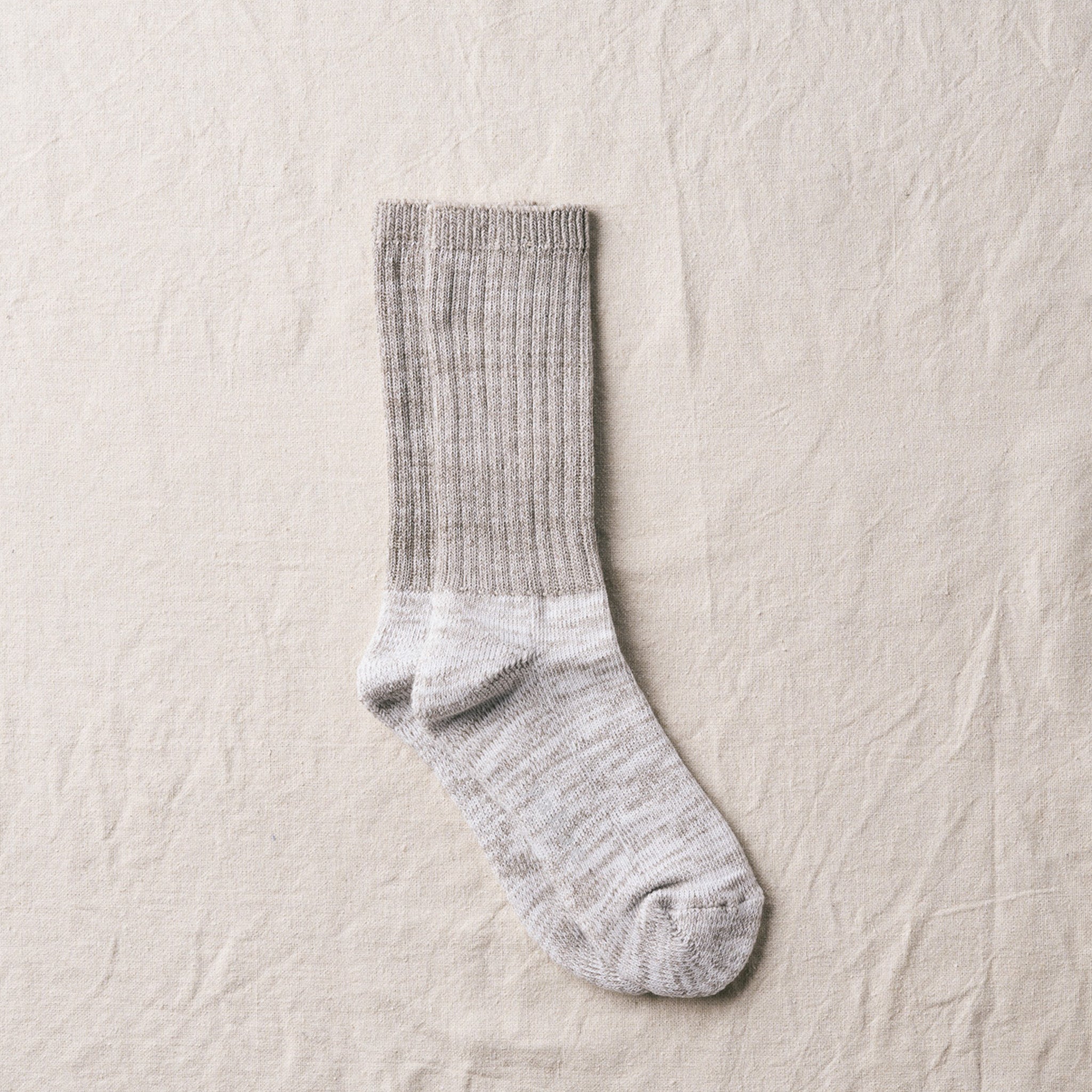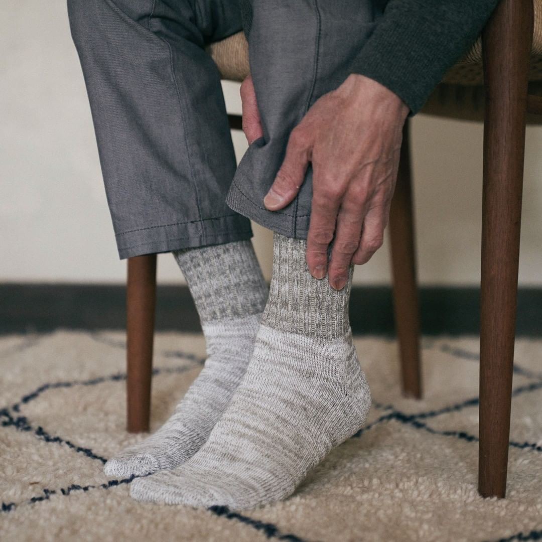 奈良で100年以上続く靴下工場が手がけるファクトリーブランド〈yahae(ヤハエ)〉から、軍の靴下から着想を得た、日常使いの道具として最適な足底パイルのリブ編みソックスです。