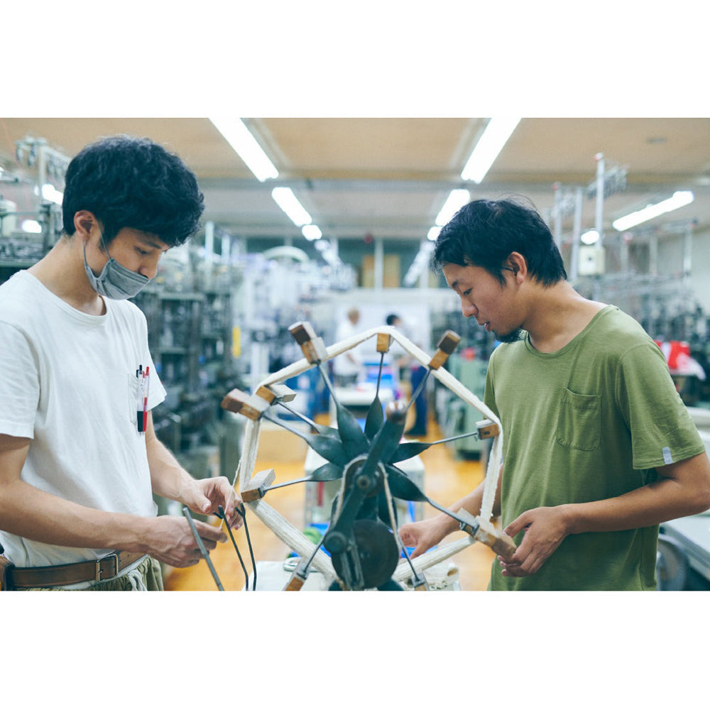 yahaeの靴下は、多様な編み機を駆使して、まるで素材を生かした料理のように、熟練の技術者が編み立てています。