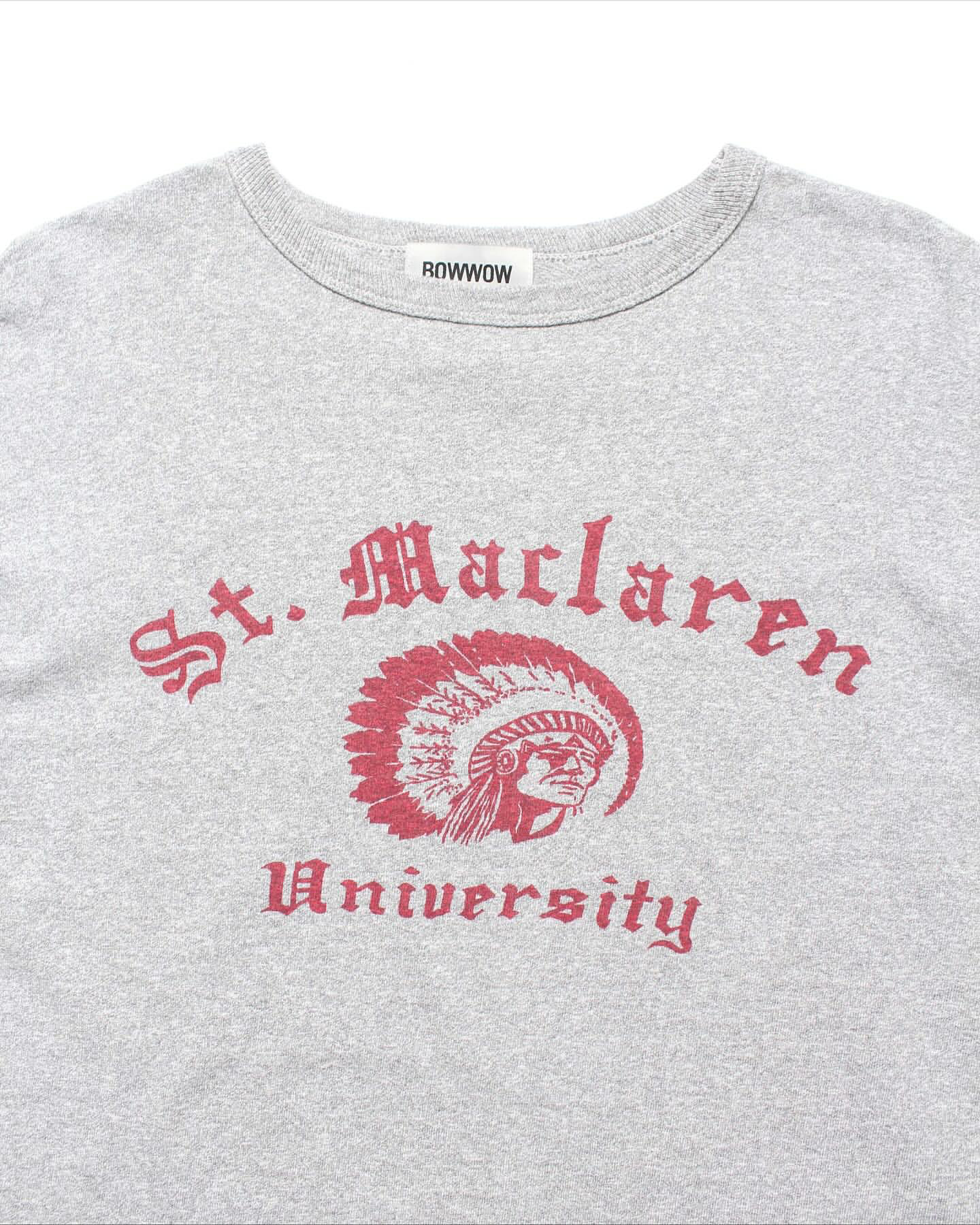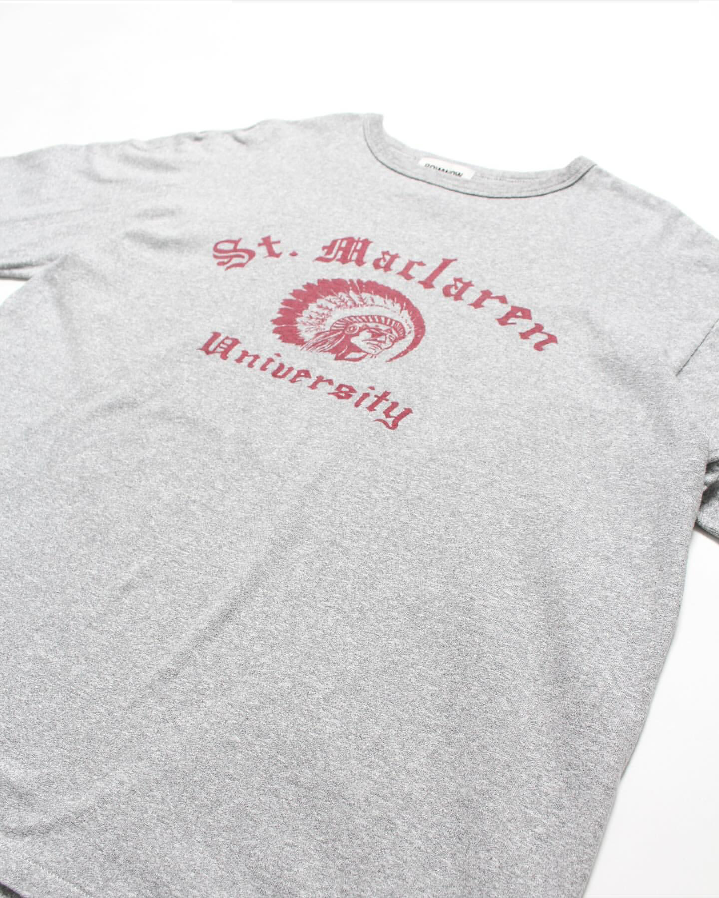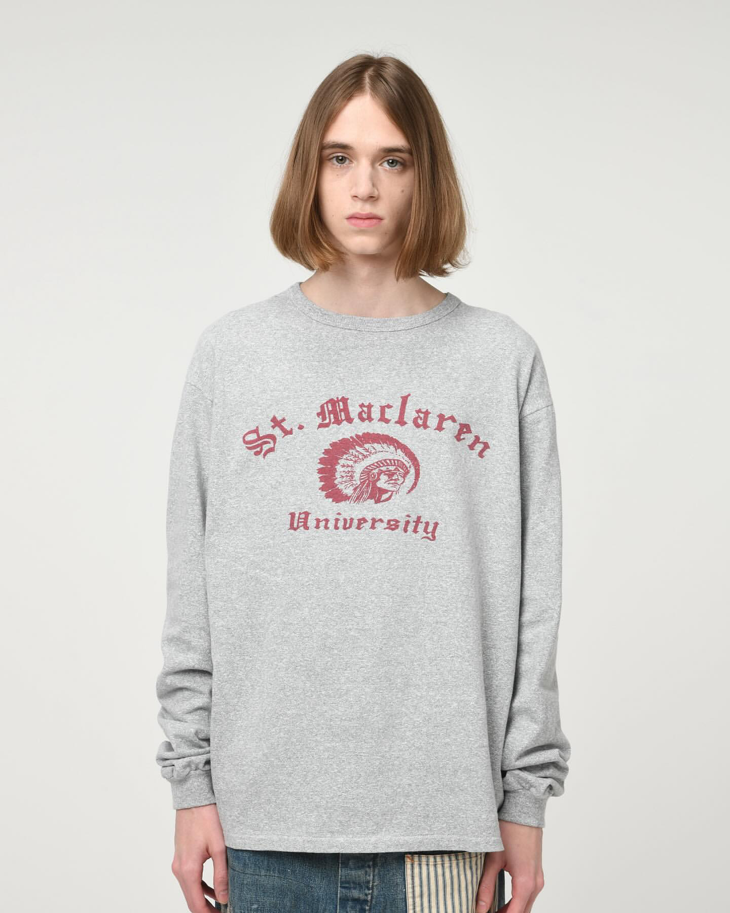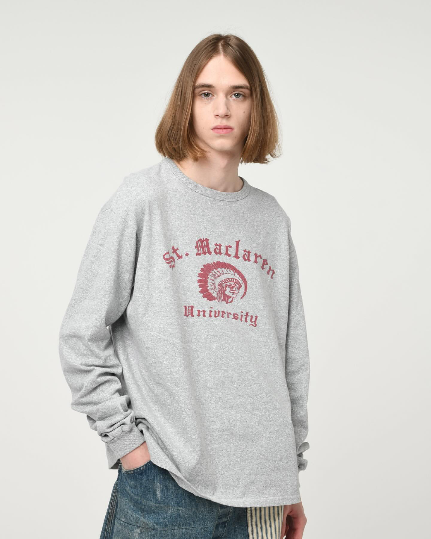 架空の大学 ST.MACLAREN UNIV. のスクールスピリットを受け継ぐ、同コレクションのために製作したロングスリーブTシャツ。