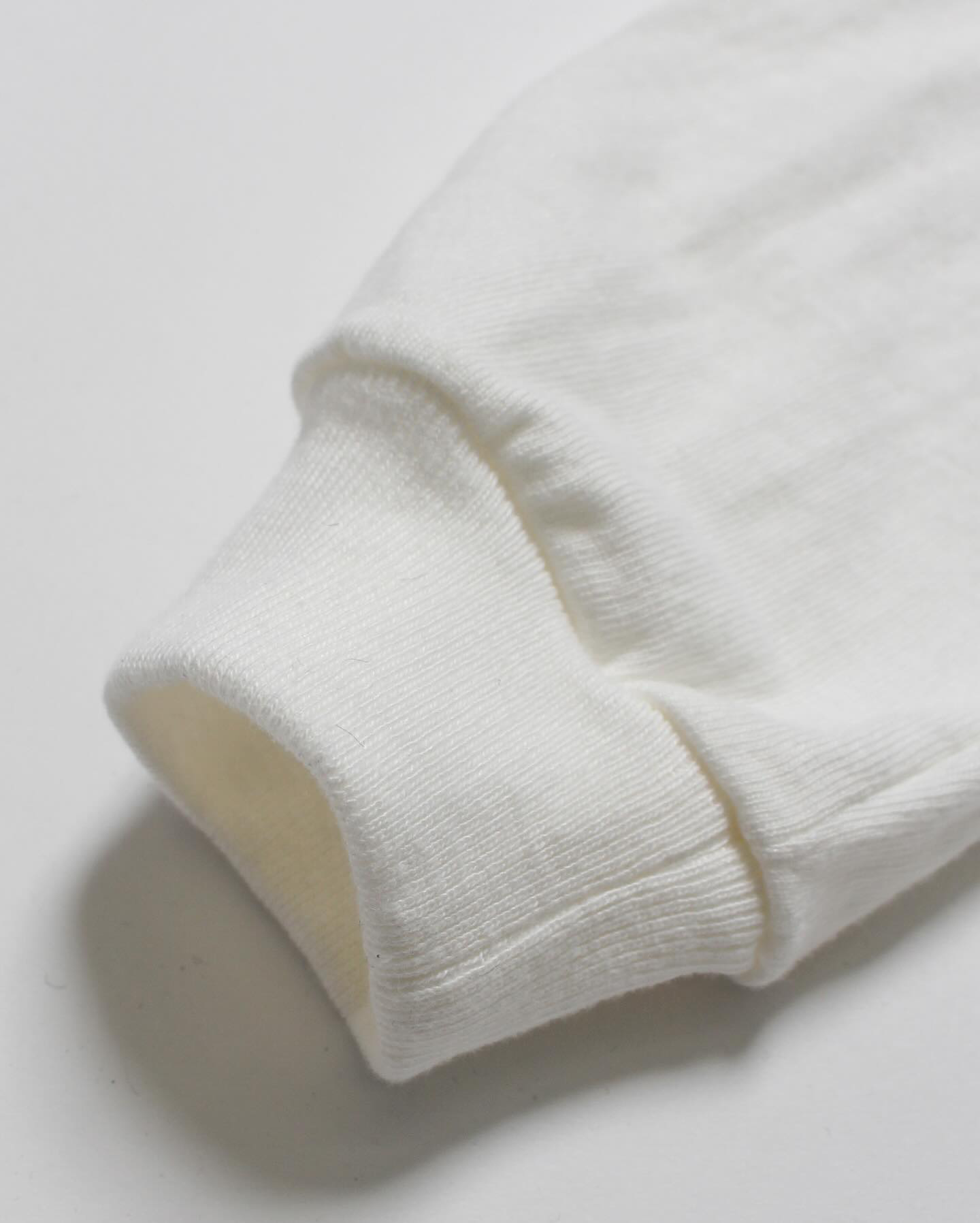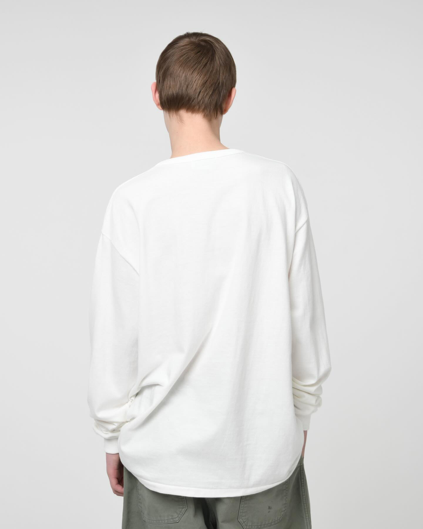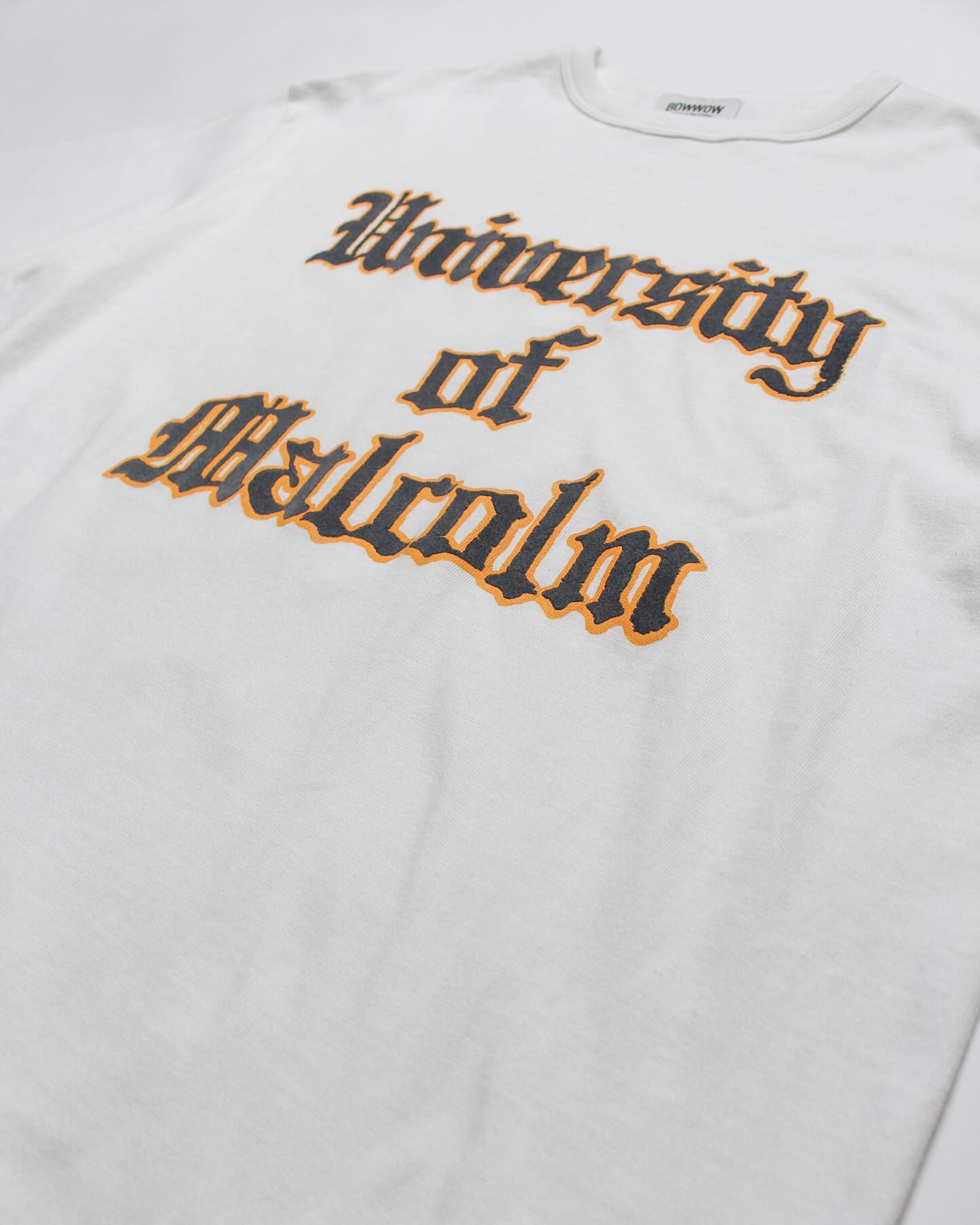 架空のマクラーレン大学を舞台に、60年代の購買部で販売され、生徒が毎日着続けた様を表現。植毛フロッキープリントを採用し、毛足の表現までプリント職人の拘りを凝縮し、新たなプリント表現が完成した。ボディは、ブランドを代表する丸胴天竺であり、コットン88%/レーヨン12%の組成で仕立てたロンティー。糸選びだけでなく裁断・縫製まで作り込み、ビッグサイズまで丸胴仕様を貫徹。着込みと洗いで退色と表情が深まり、ヴィンテージと見分けがつかない域に至るブランドが目指す完成形。
