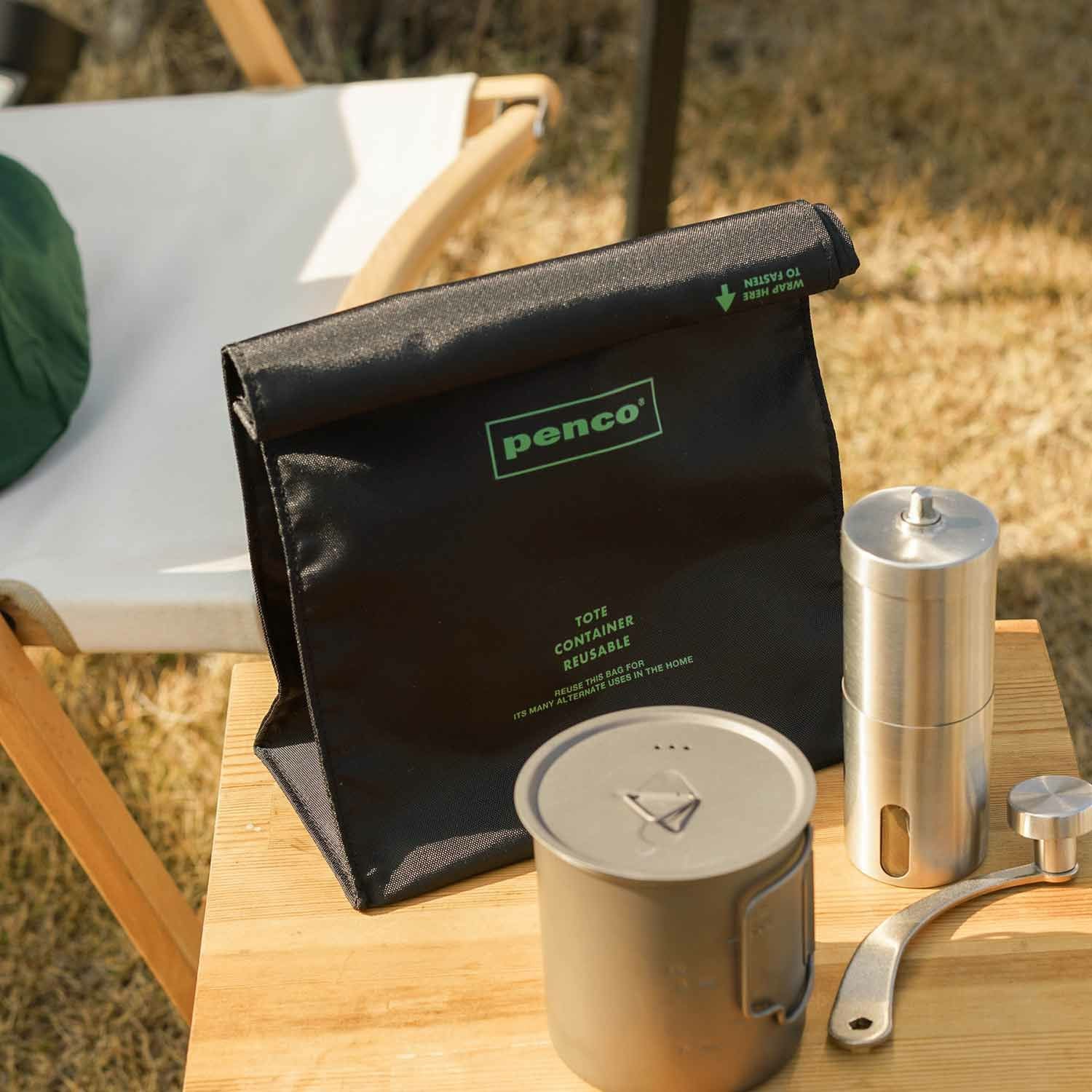 紙袋のように上部をくるくると巻いて封をする 〈penco®︎〉の「ToGoサック」です。
