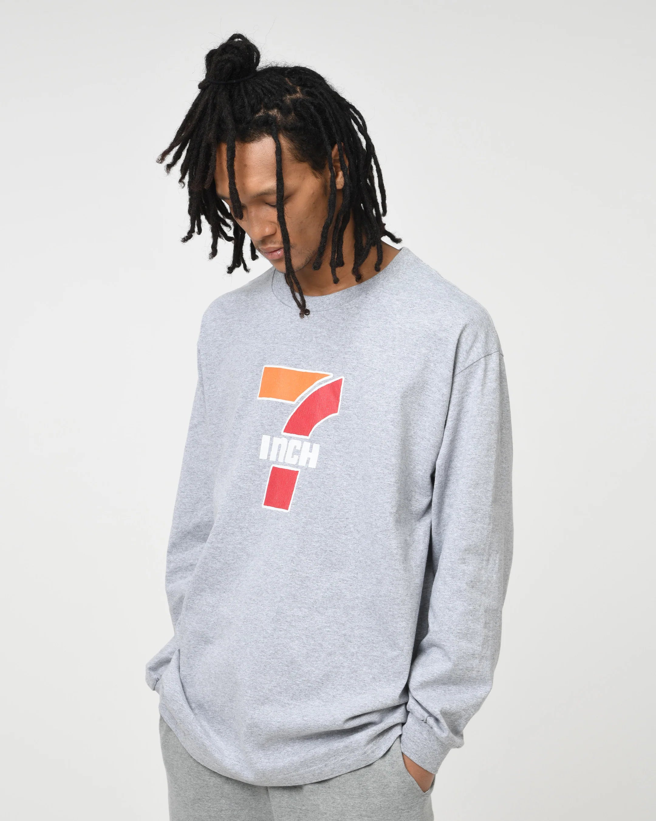 〈レコグナイズ〉2025年秋冬コレクションより、7インチレコードをイメージしたグラフィックが印象的なロングスリーブTシャツです。