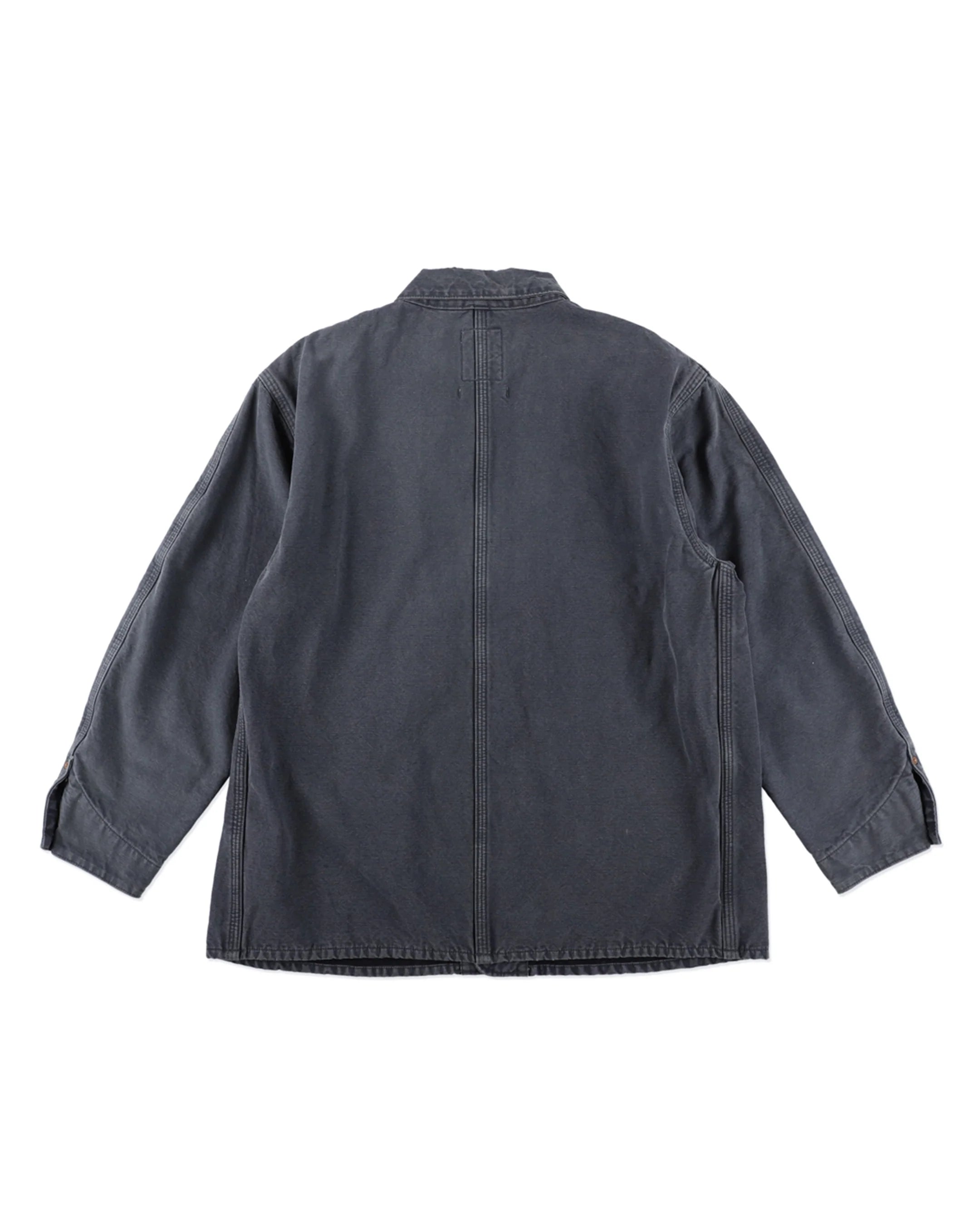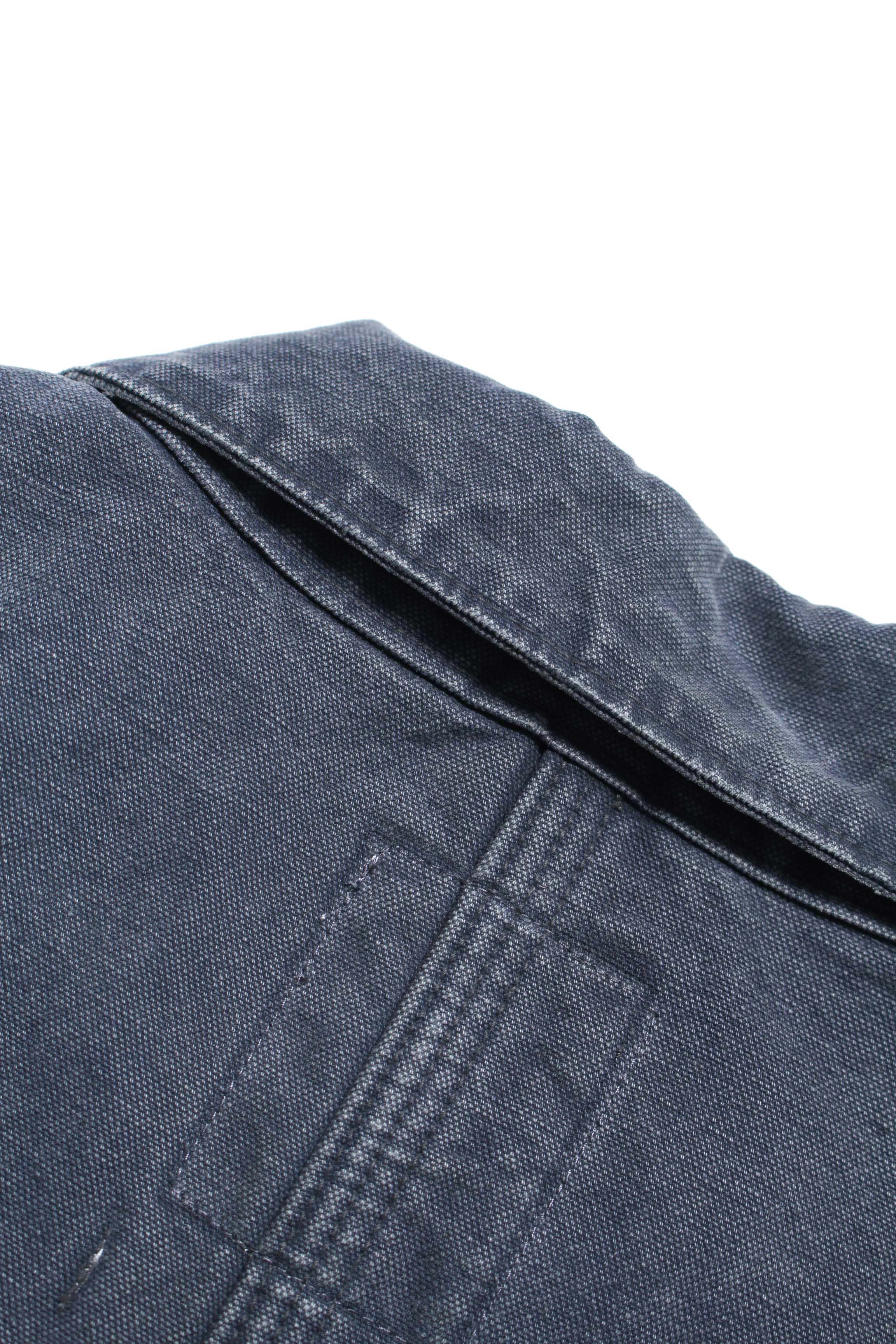 新品でありながら長年使い込んだようなダック生地の風合いと、ヴィンテージのカバーオールのような重厚感のある雰囲気が特徴的な一着です。