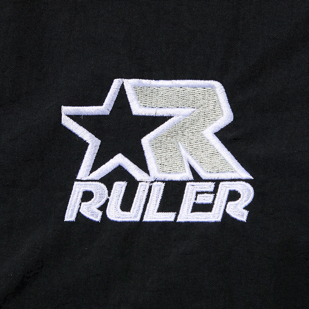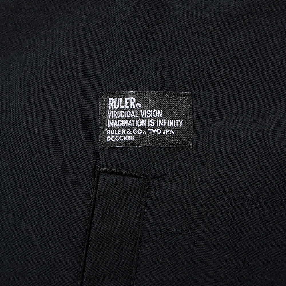 〈RULER®︎〉2025年秋冬コレクションより、フロントにI.D.タグと刺繍でアートワークを配したナイロントラックジャケットです。