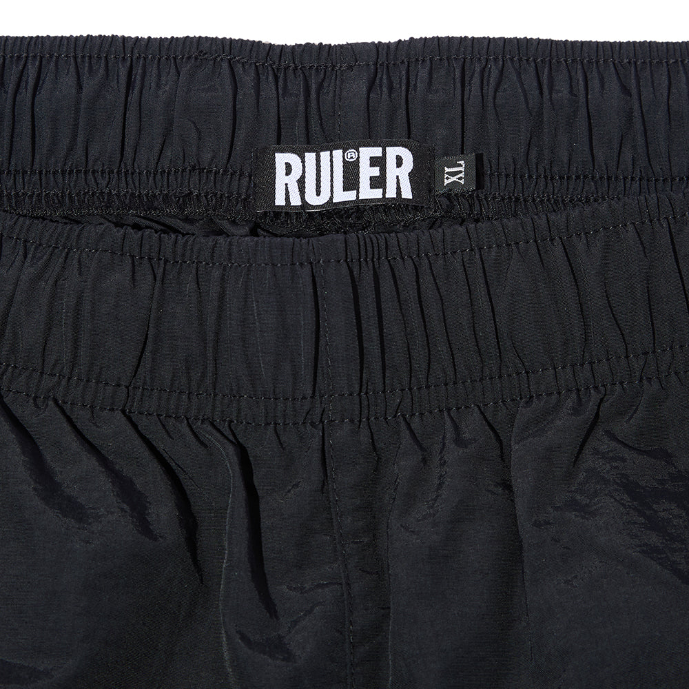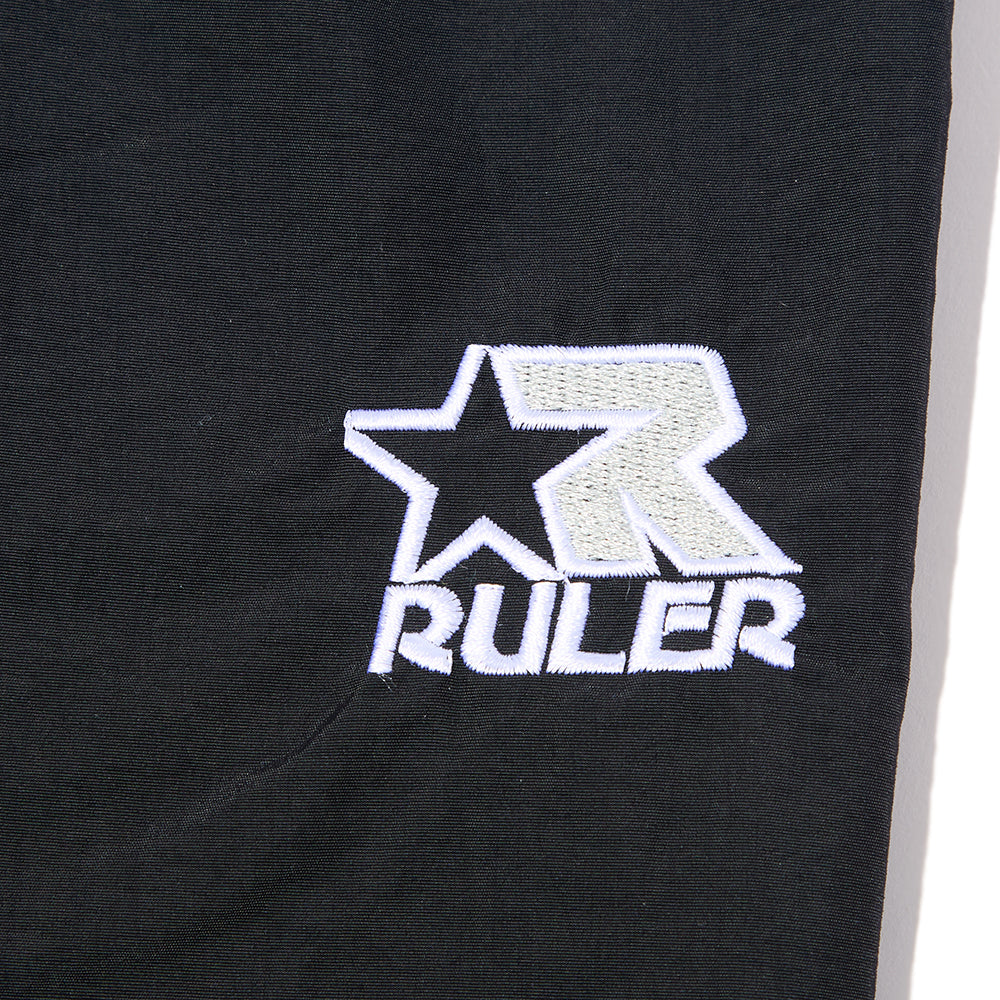 〈RULER®︎〉2025年秋冬コレクションより、フロントに刺繍でアートワークを配したナイロントラックパンツです。