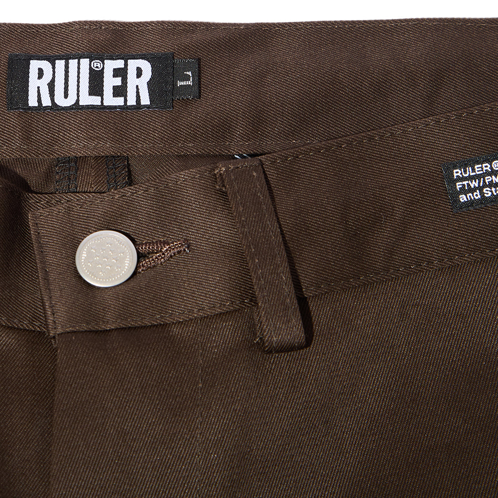 〈RULER®︎〉2025年秋冬コレクションより、厚手でコシのある高密度ウェポン・ツイル生地を使用し作製したワークトラウザーです。